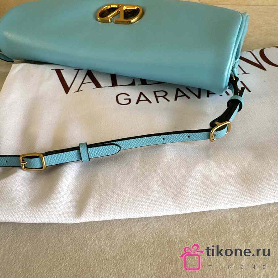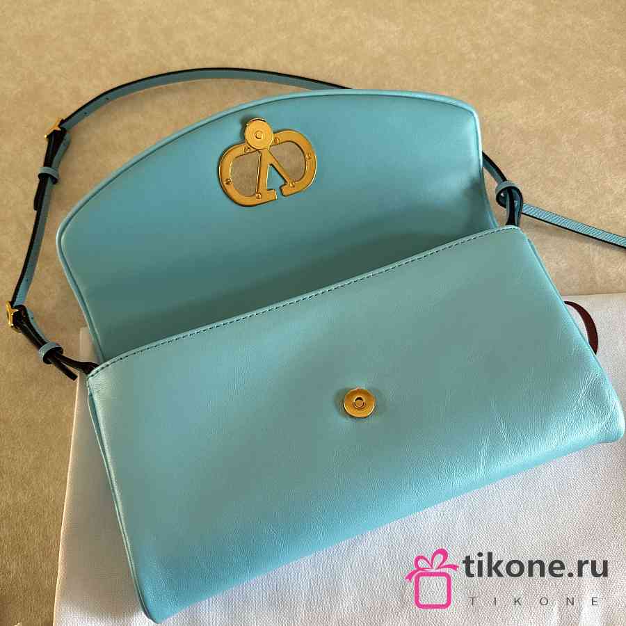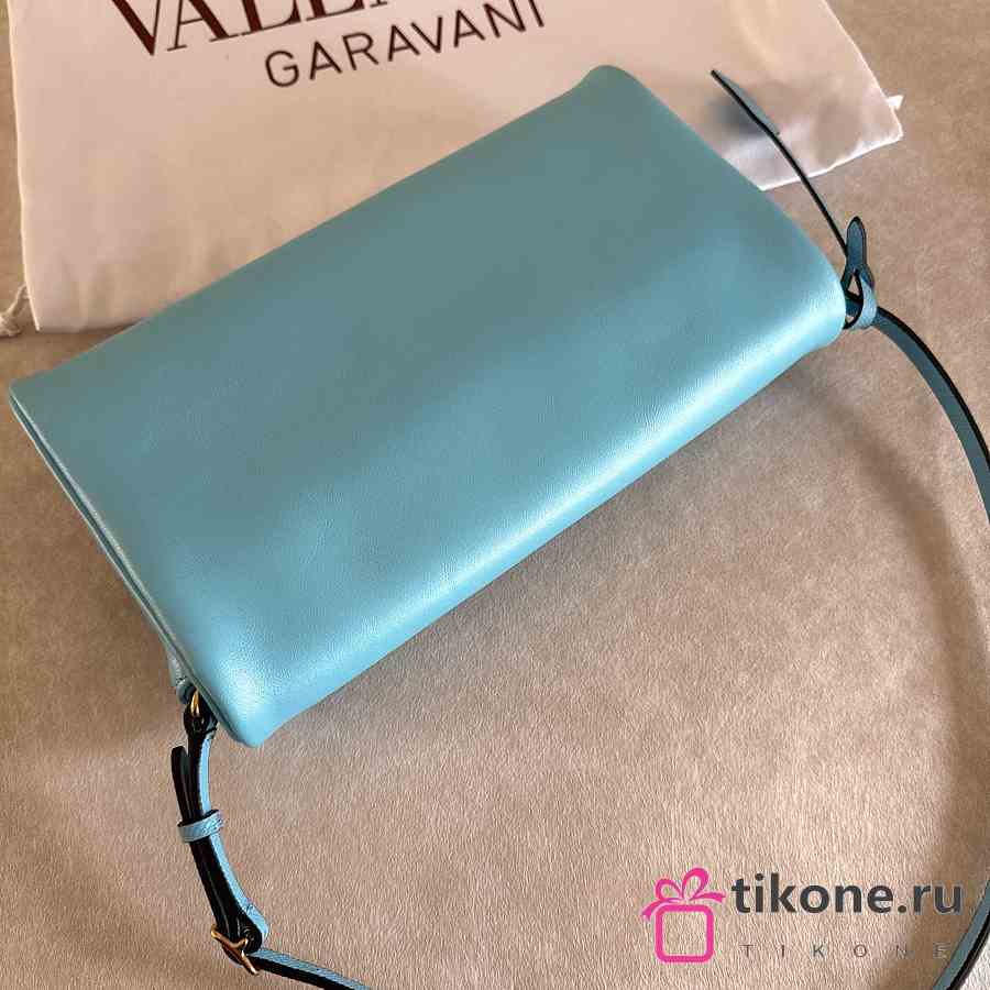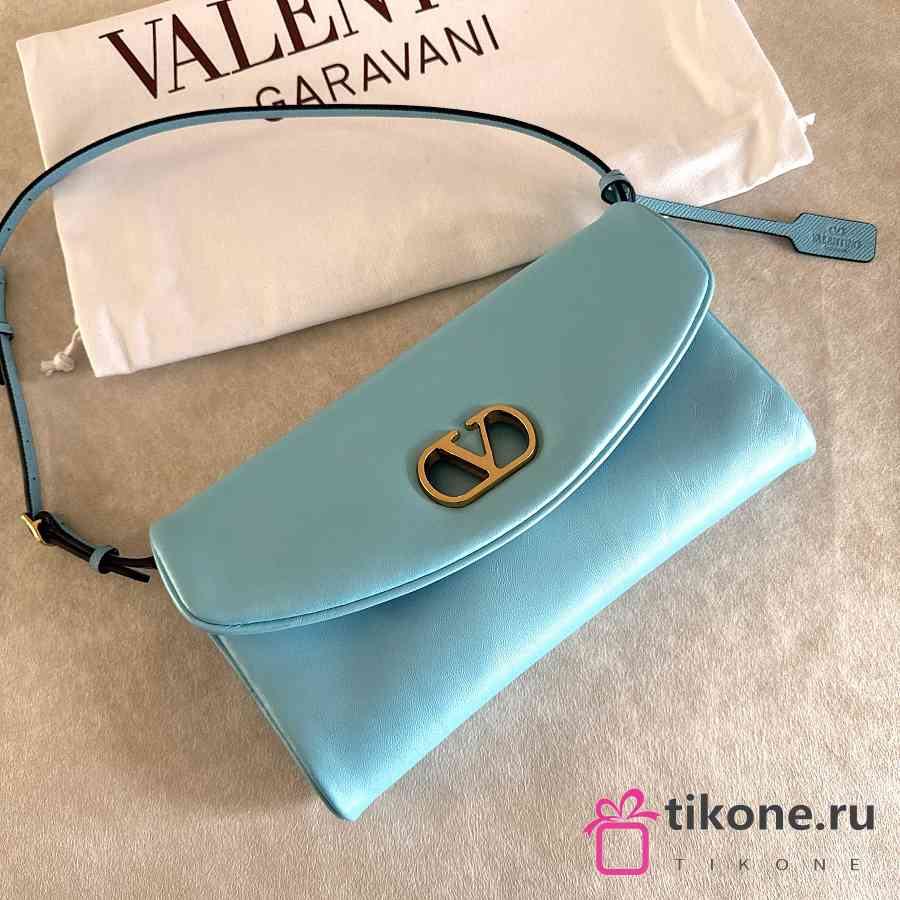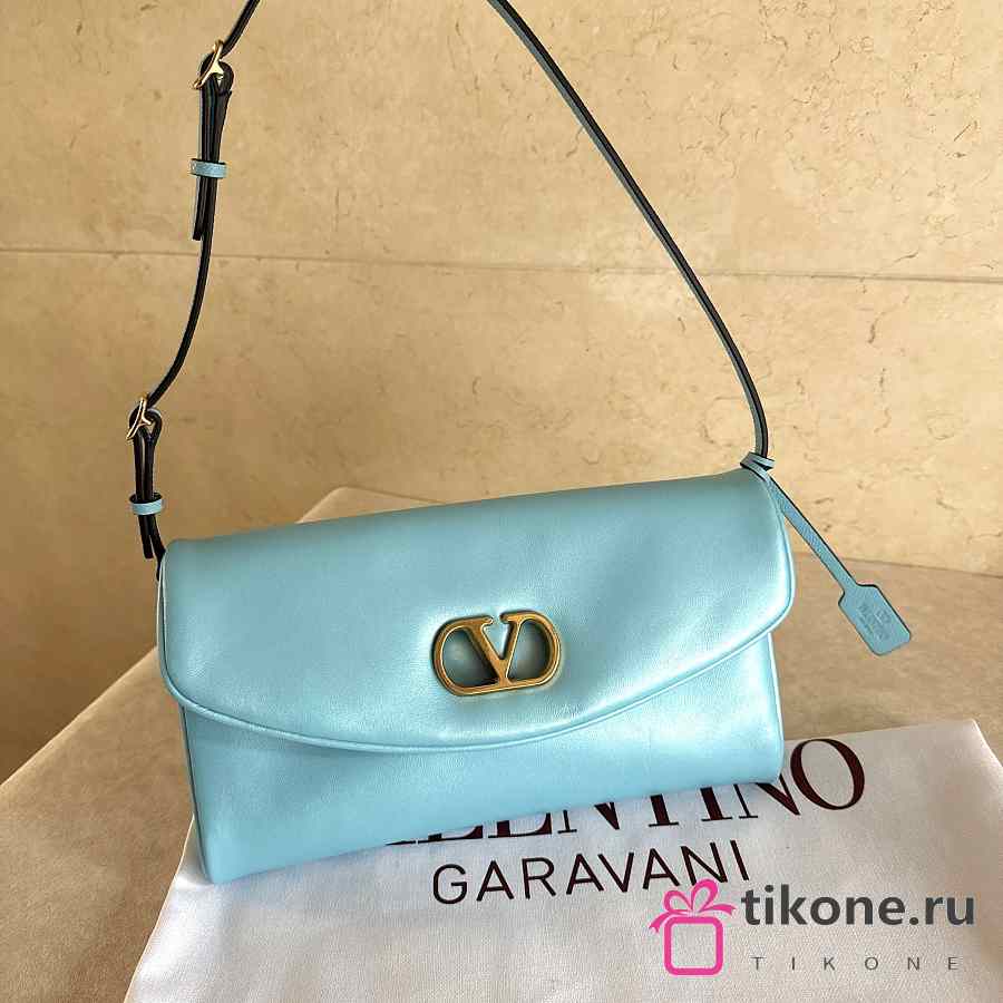 Valentino Garavani DeVain Small Shoulder Bag in Laminated Nappa Leather Azure - 23.5x12x3cm