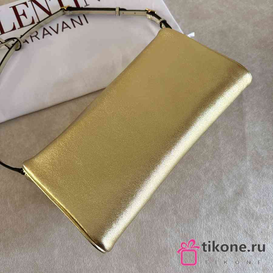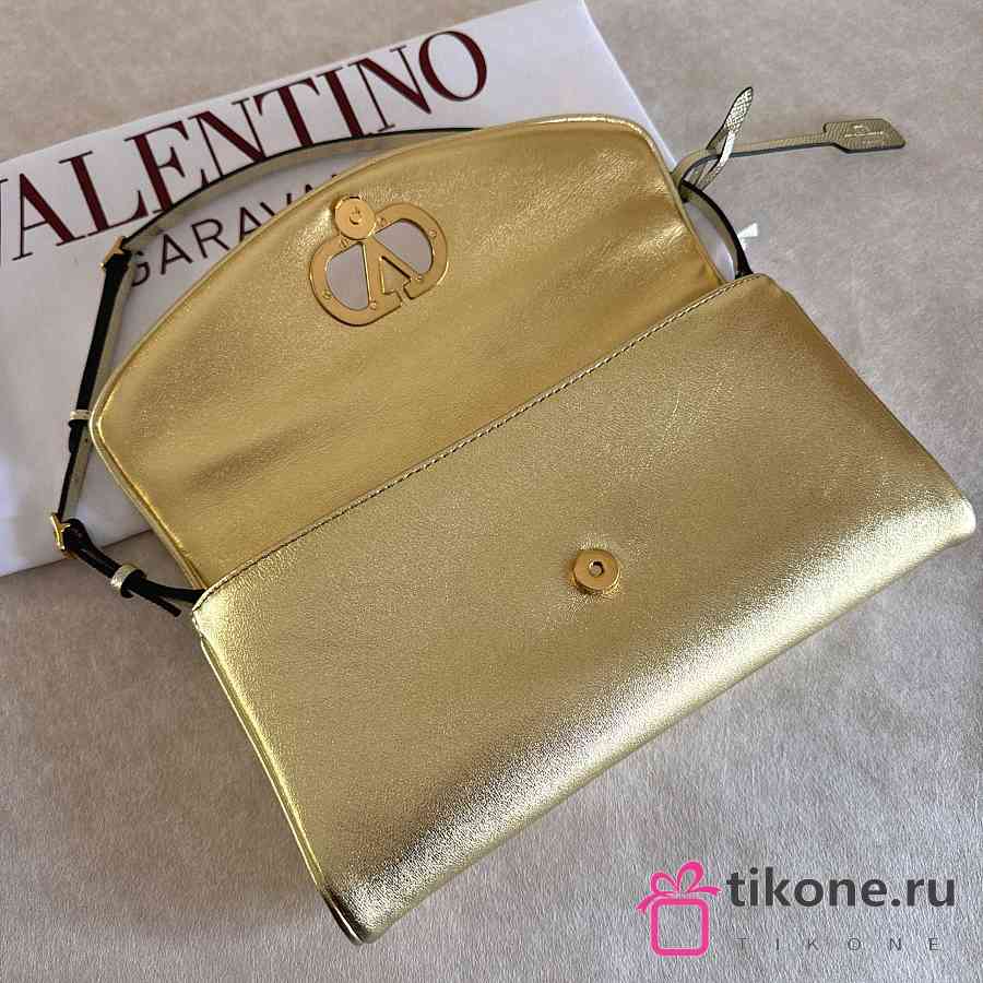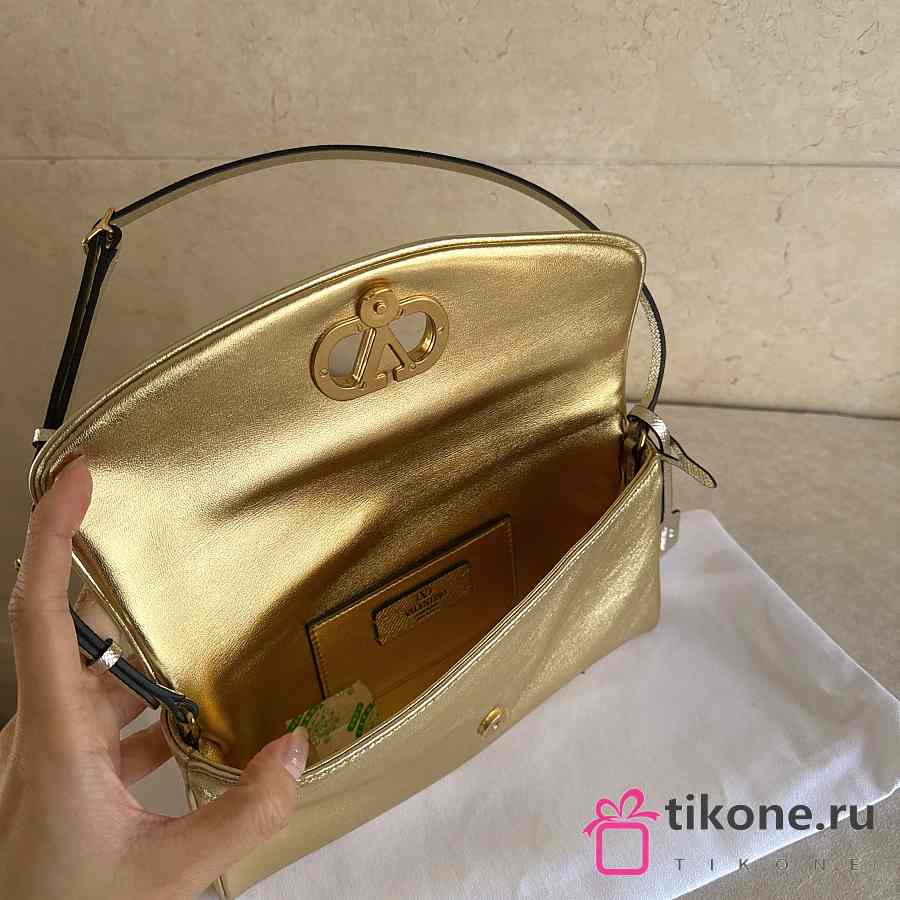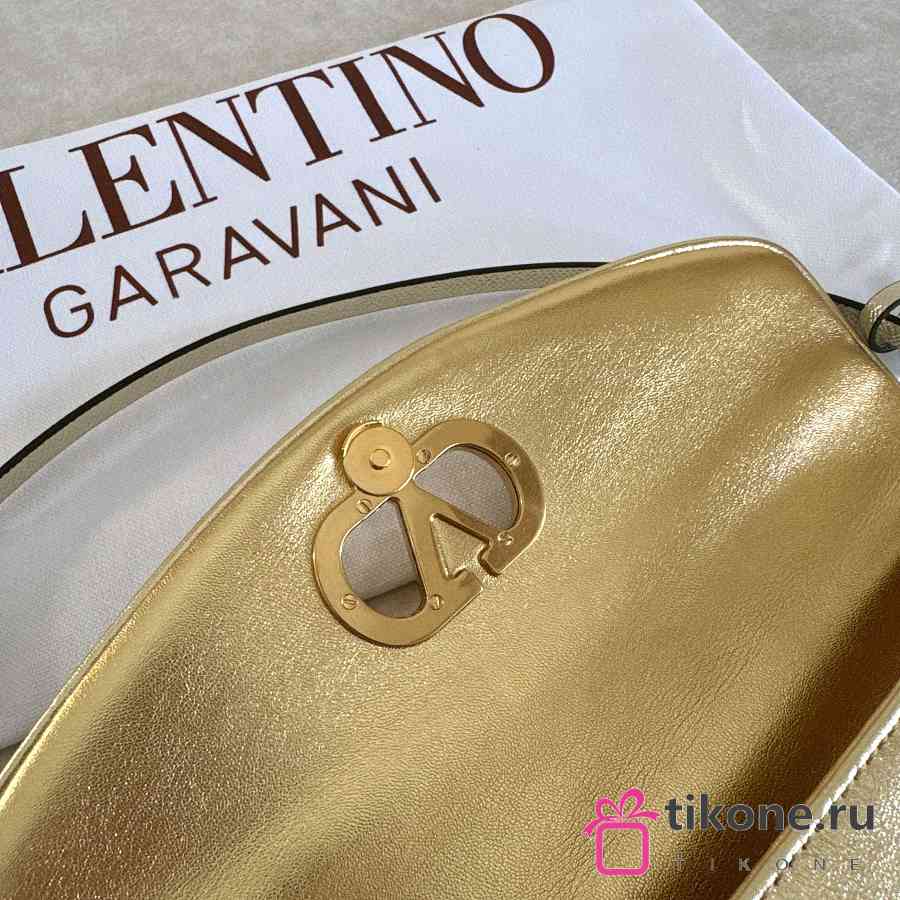 Valentino Garavani DeVain Small Shoulder Bag in Laminated Nappa Leather Gold - 23.5x12x3cm