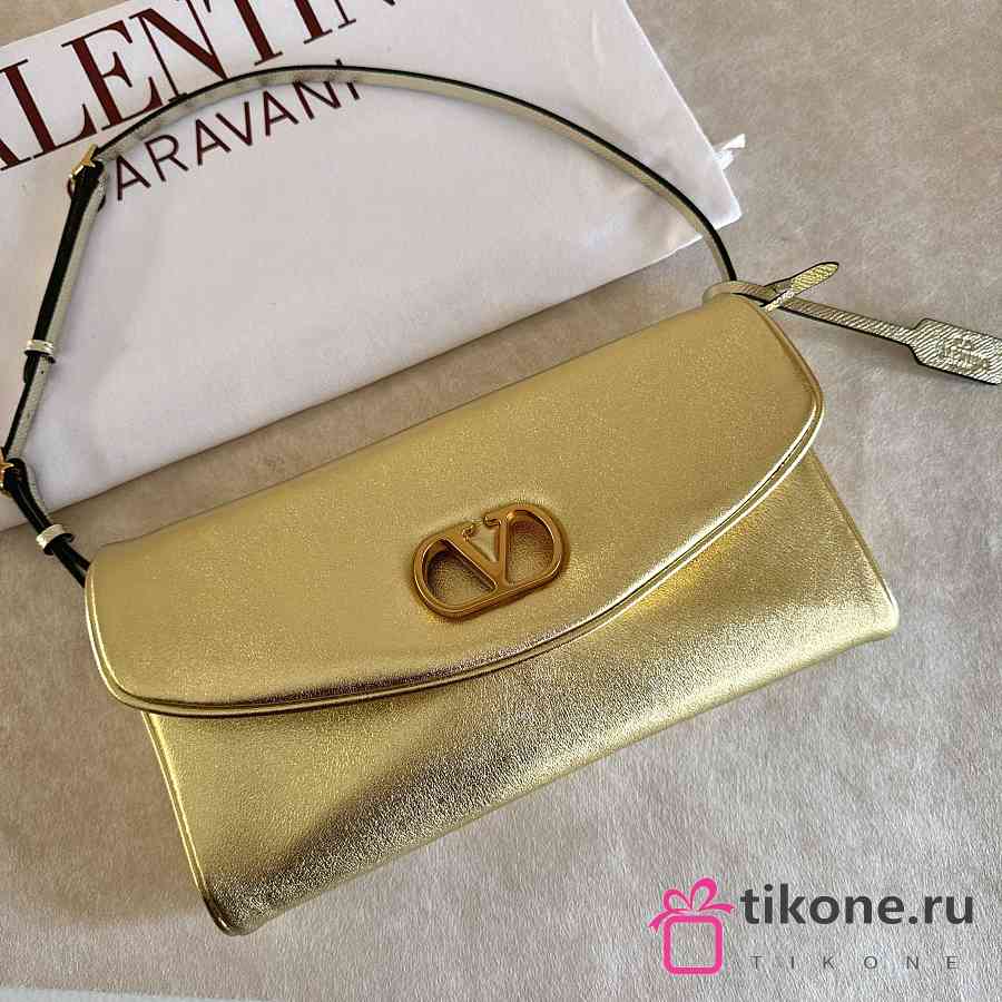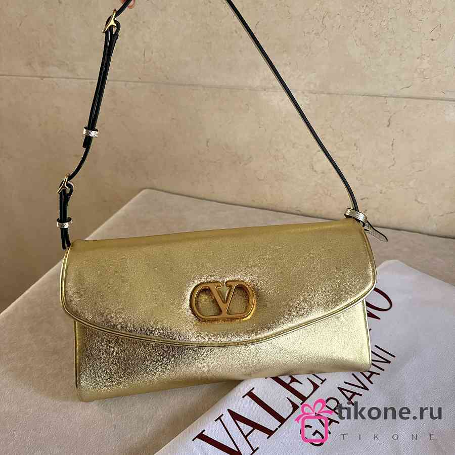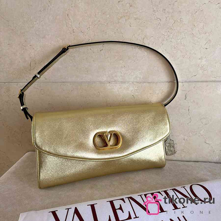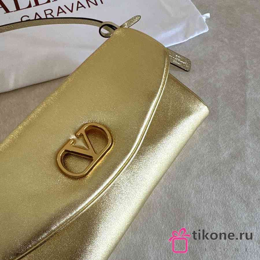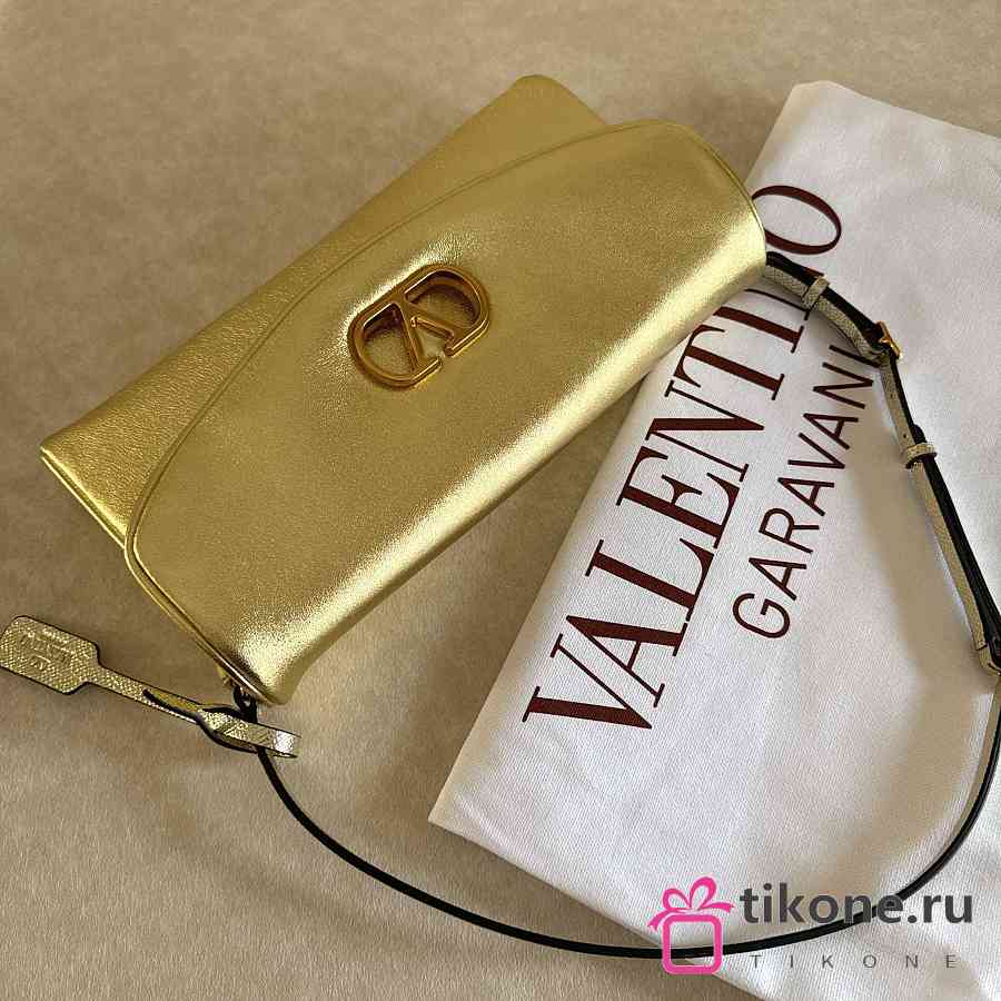 Valentino Garavani DeVain Small Shoulder Bag in Laminated Nappa Leather Gold - 23.5x12x3cm