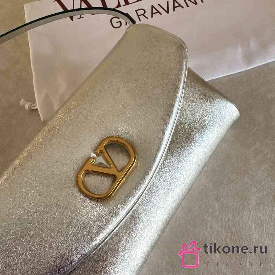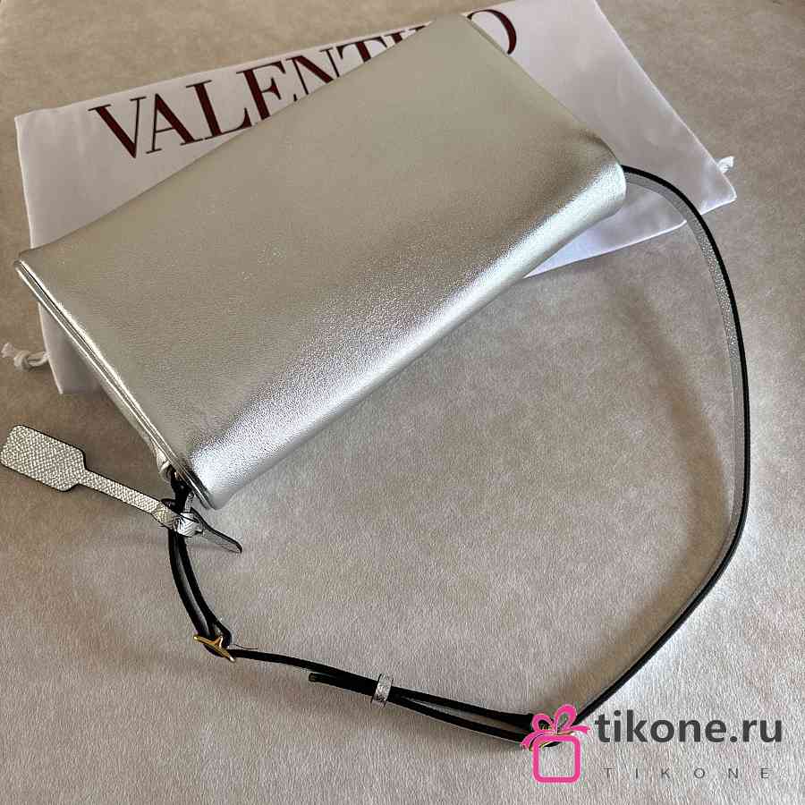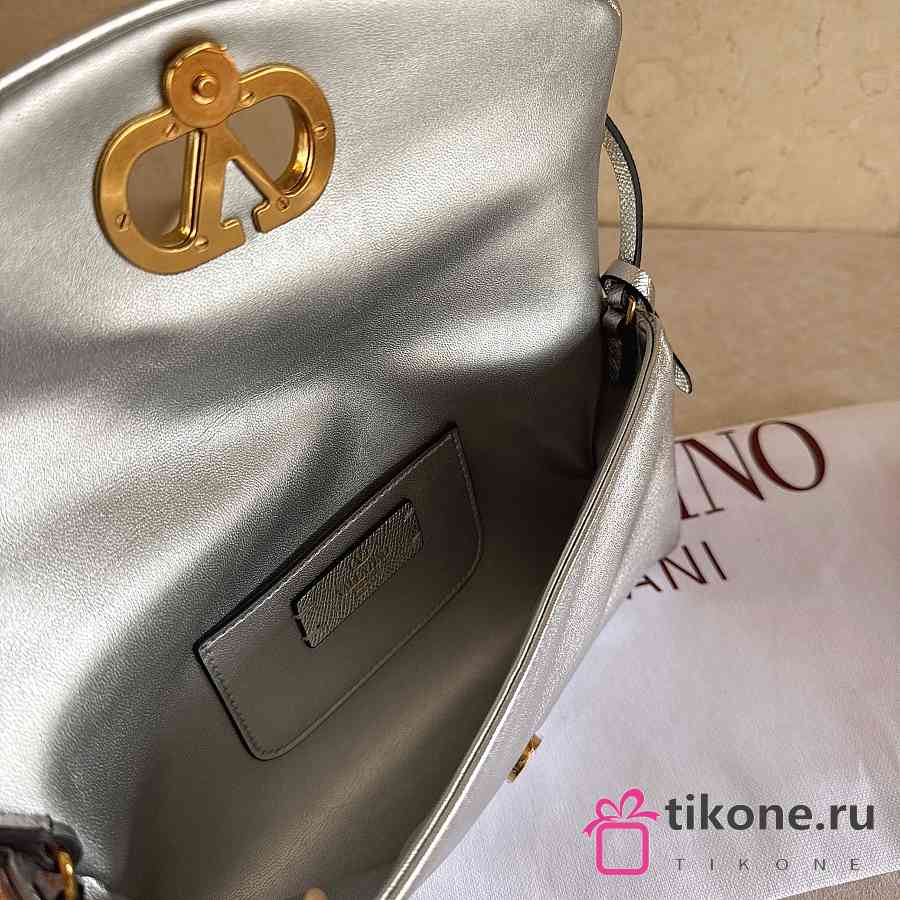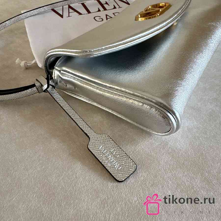 Valentino Garavani DeVain Small Shoulder Bag in Laminated Nappa Leather Silver - 23.5x12x3cm