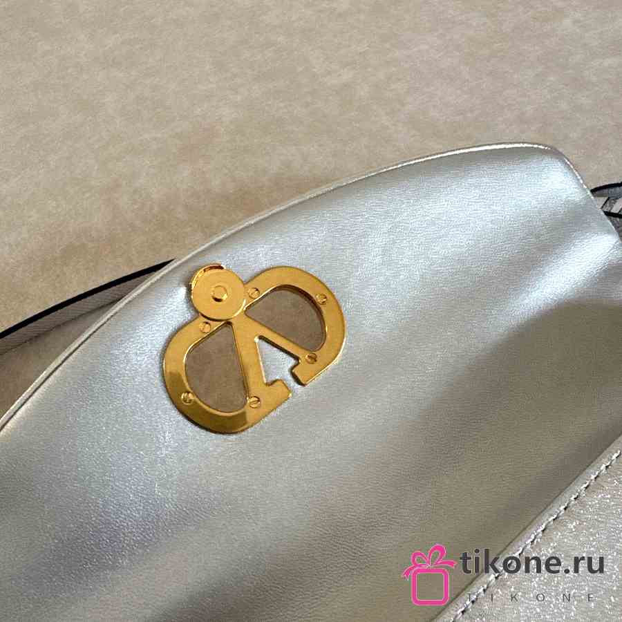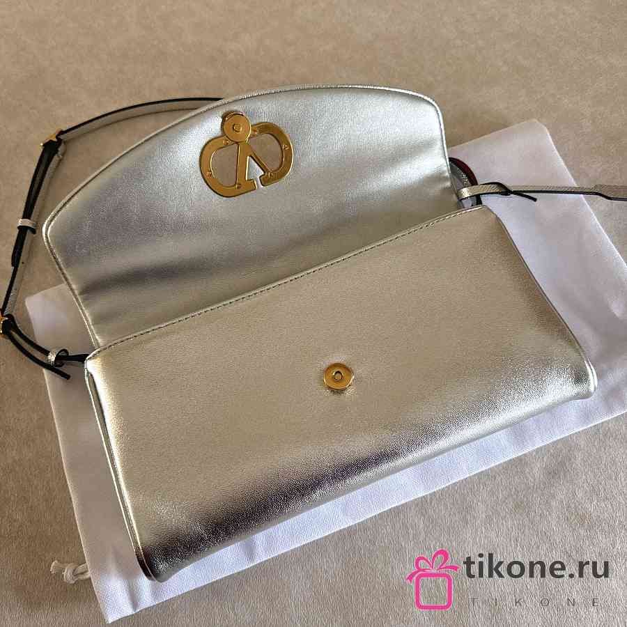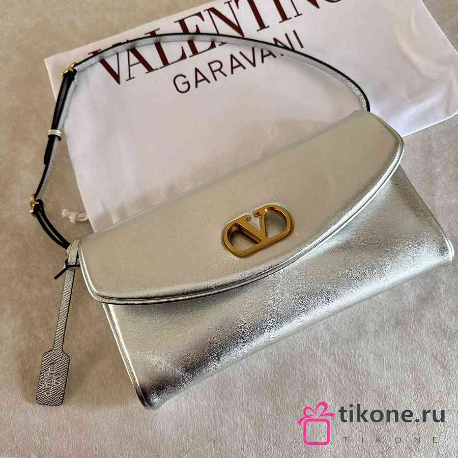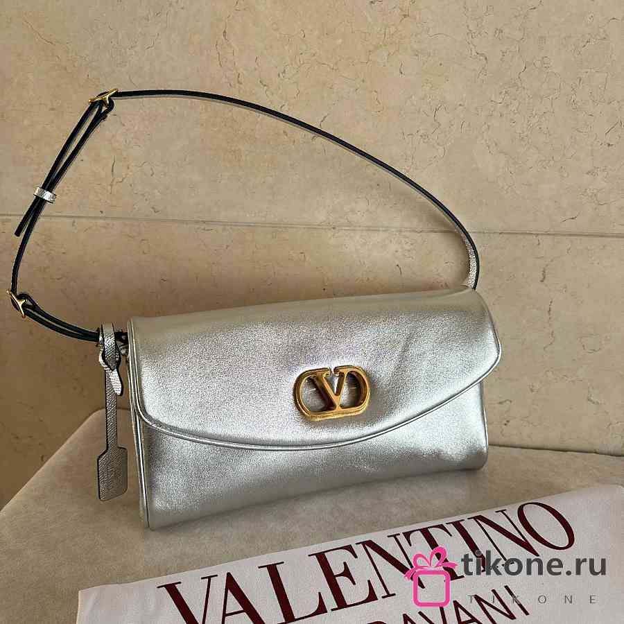 Valentino Garavani DeVain Small Shoulder Bag in Laminated Nappa Leather Silver - 23.5x12x3cm