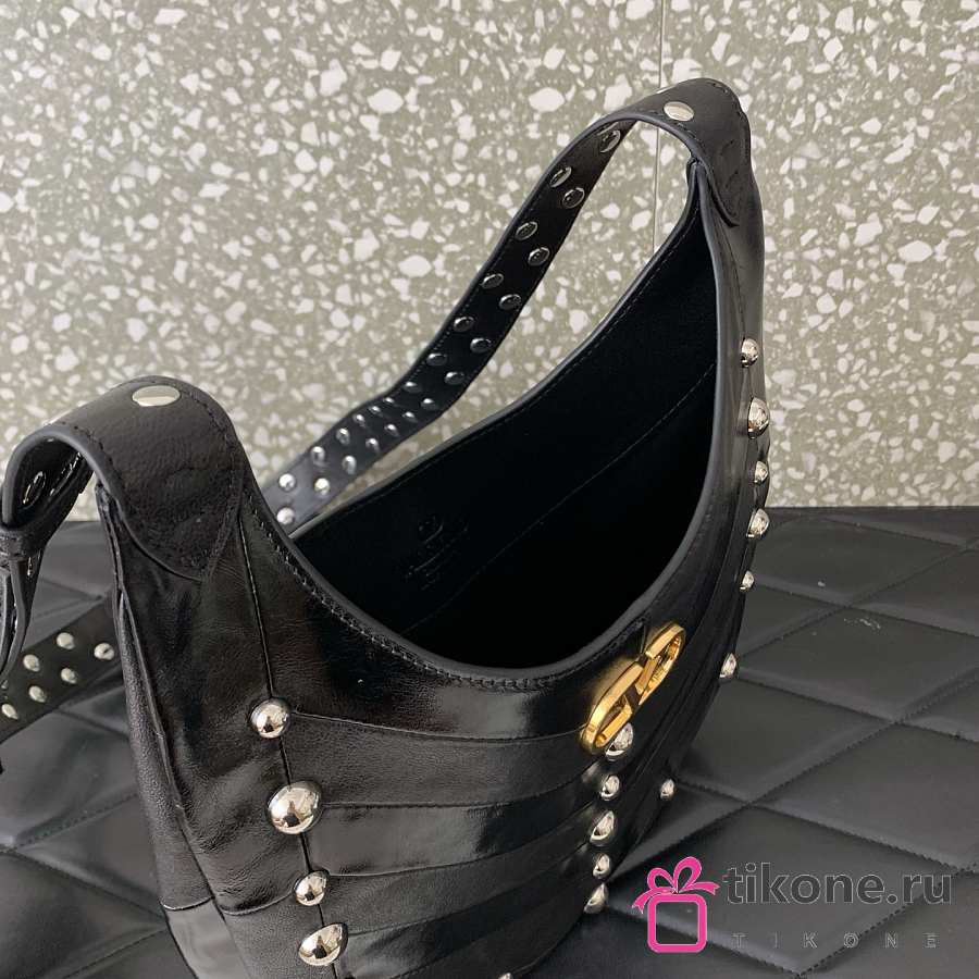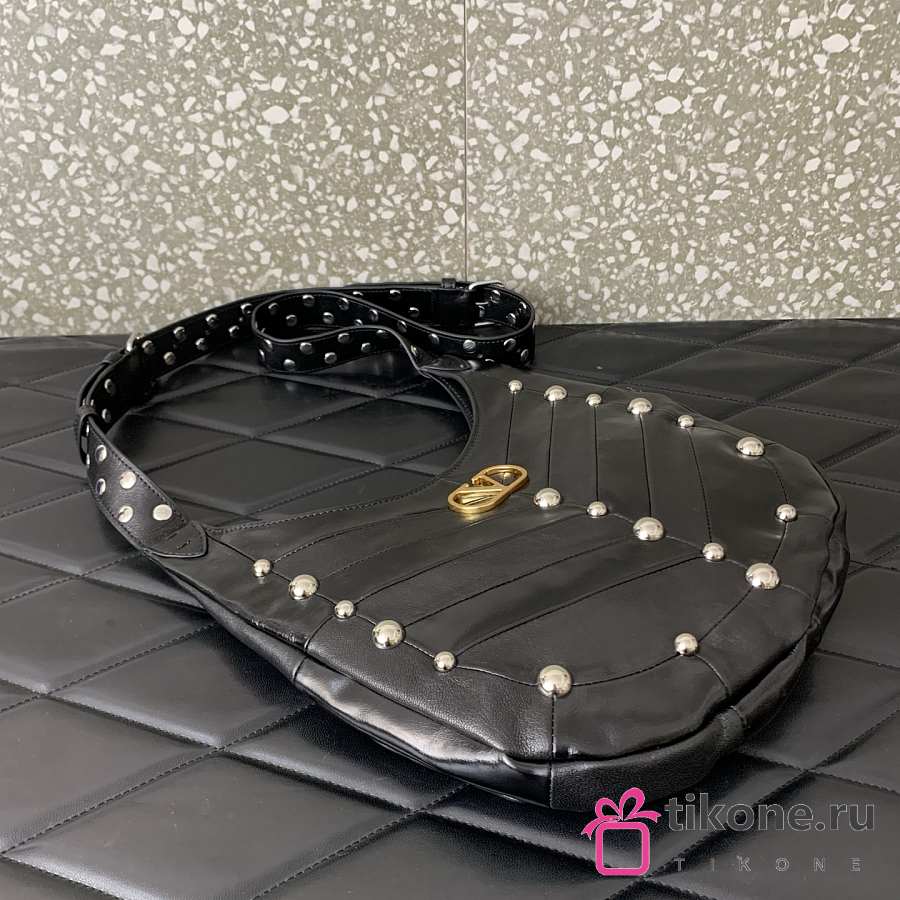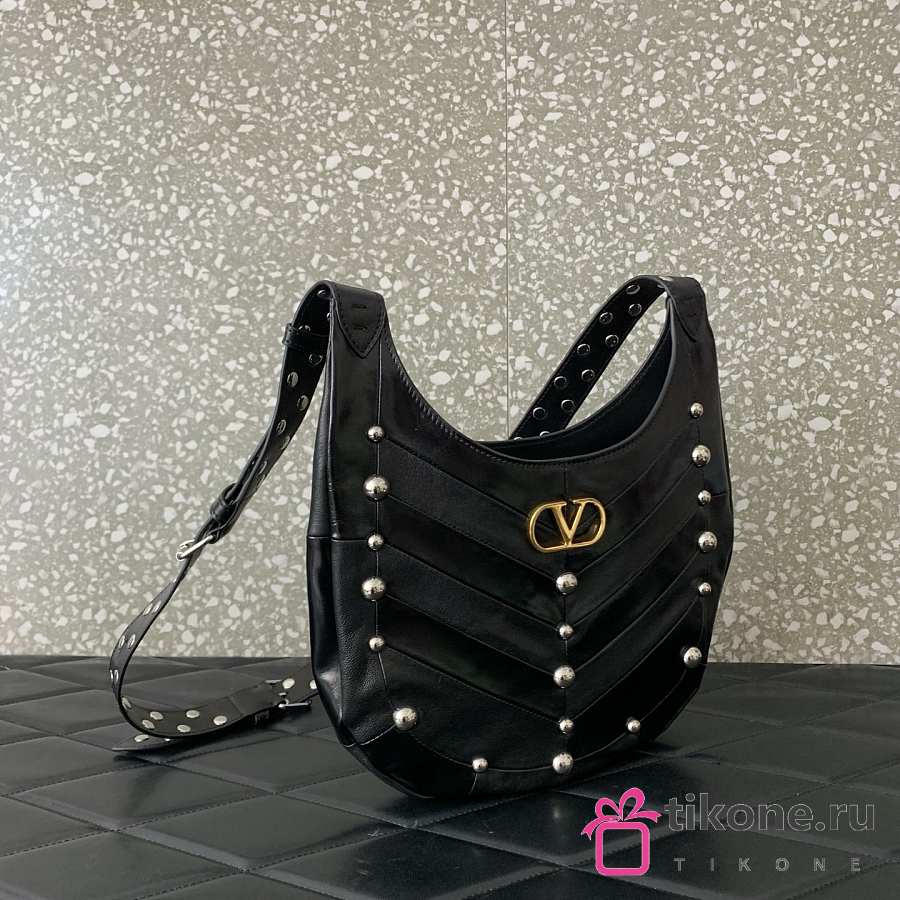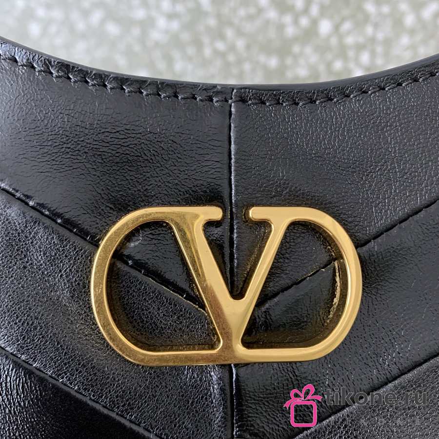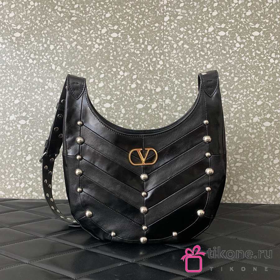 Valentino Garavani Hoboho Small Hobo Bag In Chevron Patterned Nappa Leather Black - 28x21.5x3cm