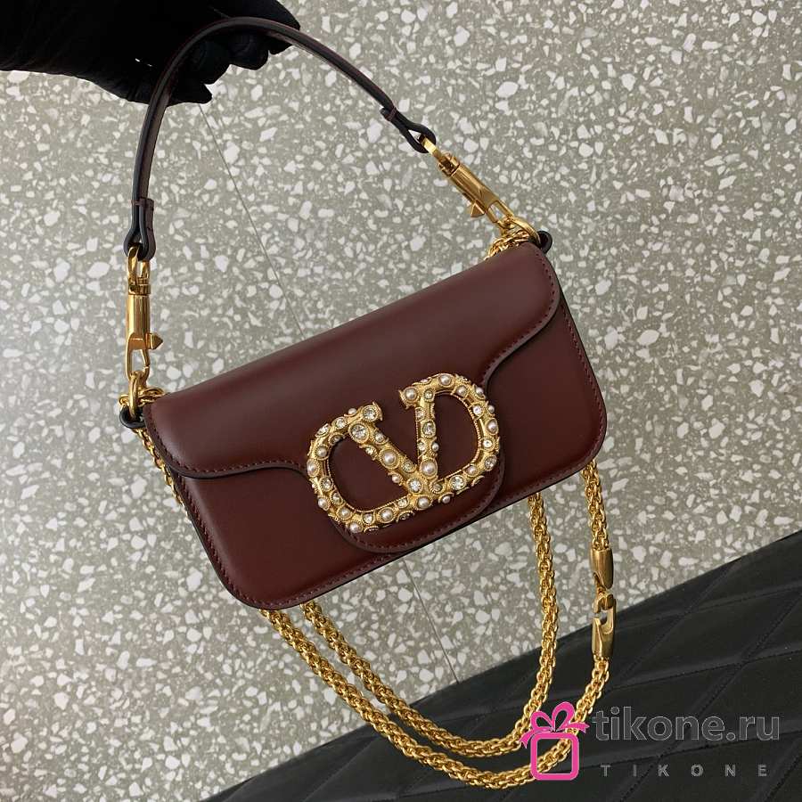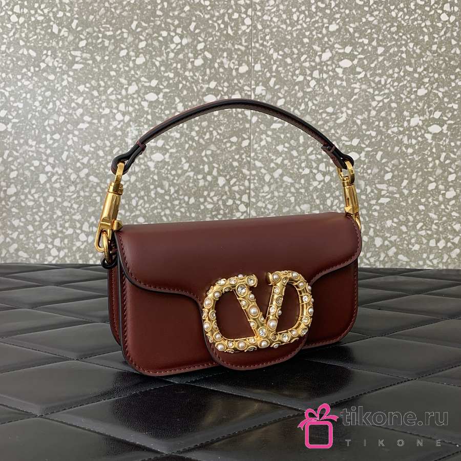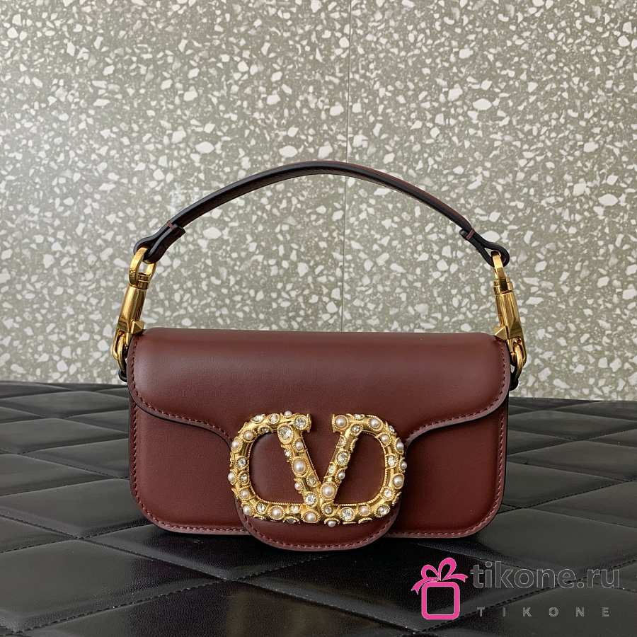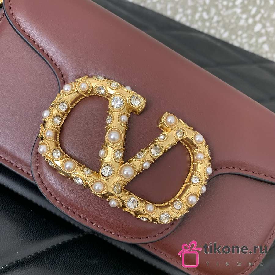 Valentino Garavani Locò Small Shoulder Bag In Calfskin With Jewel Logo Rosewood - 20x11x5cm