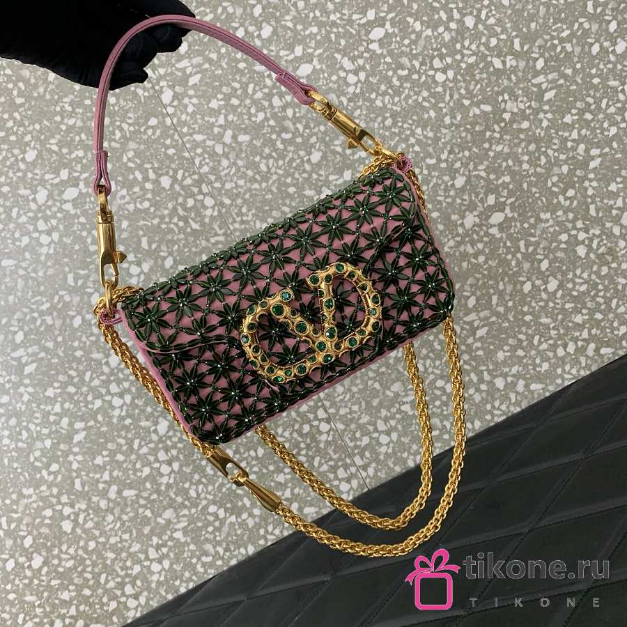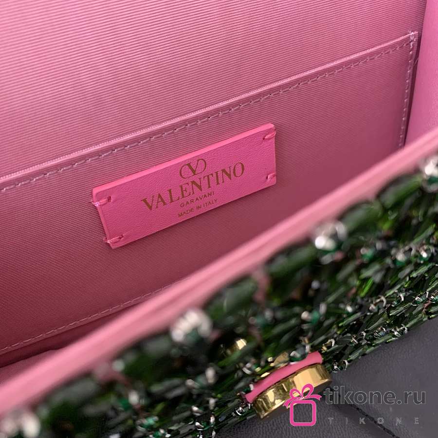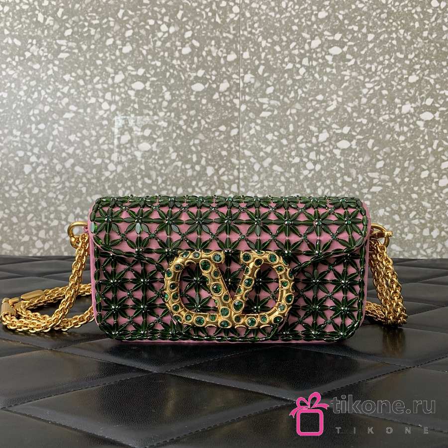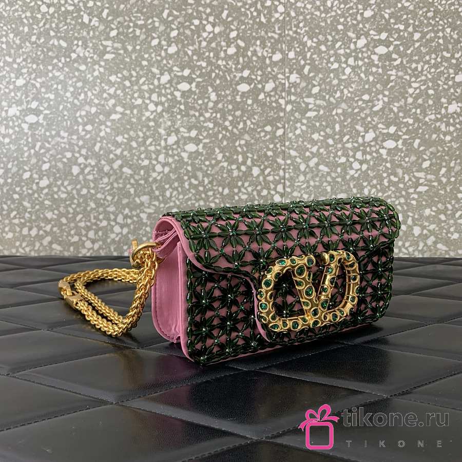 Valentino Garavani Loco Small Shoulder Bag Embroidered With Jewel Logo Emerald/Rhodo - 20x11x5cm
