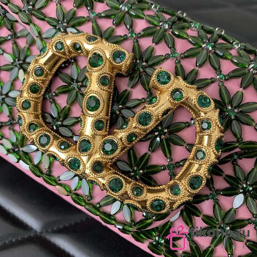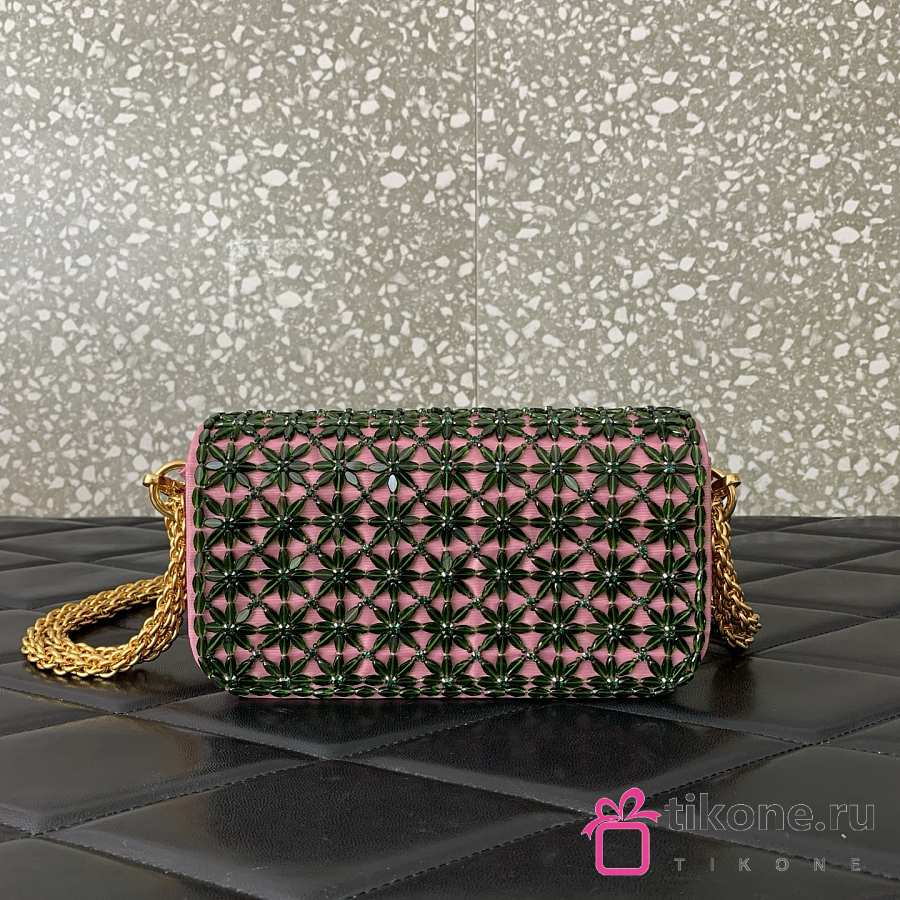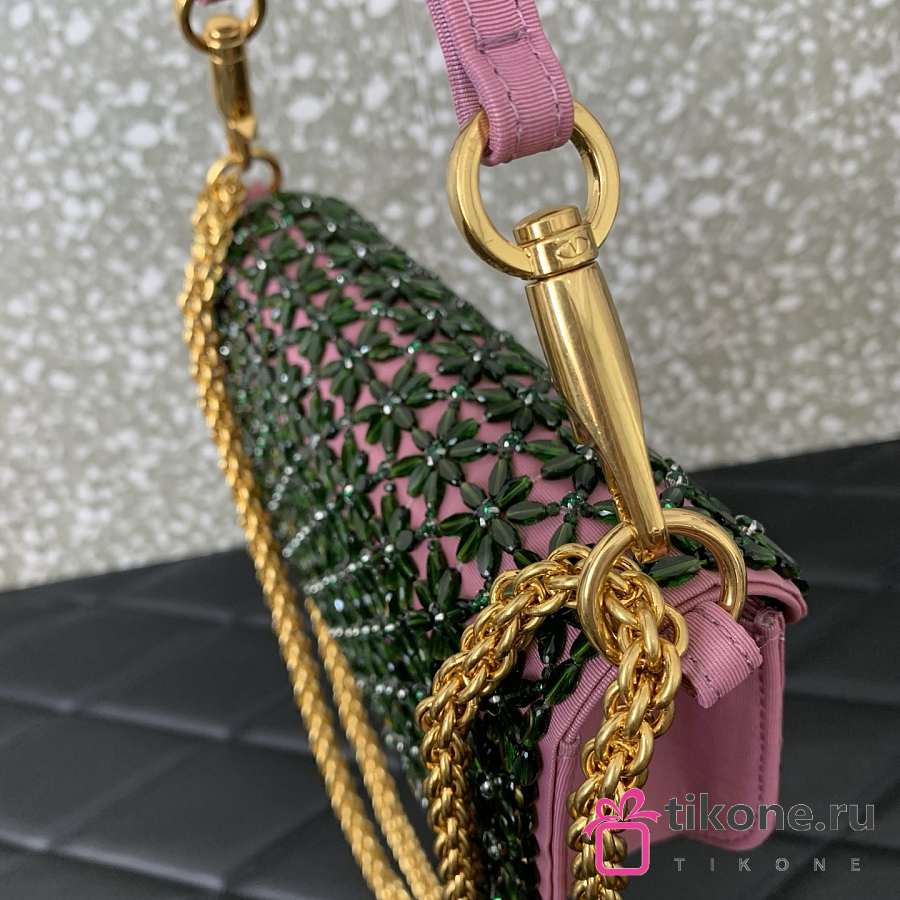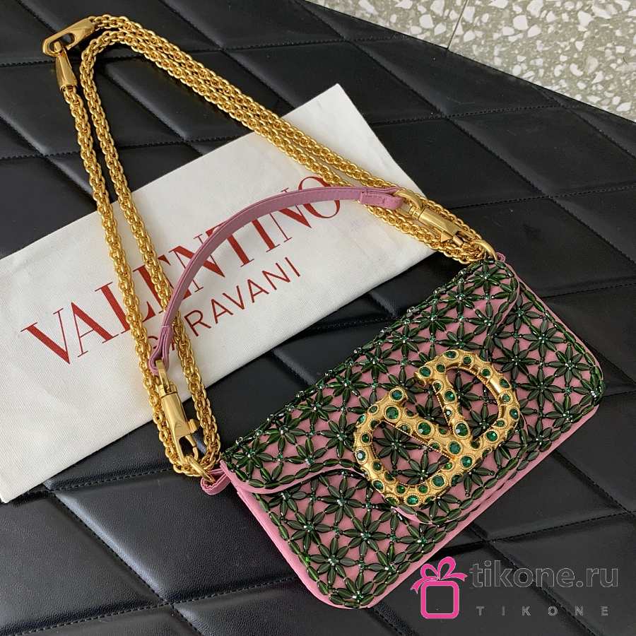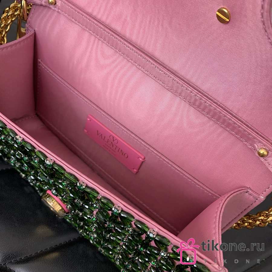 Valentino Garavani Loco Small Shoulder Bag Embroidered With Jewel Logo Emerald/Rhodo - 20x11x5cm