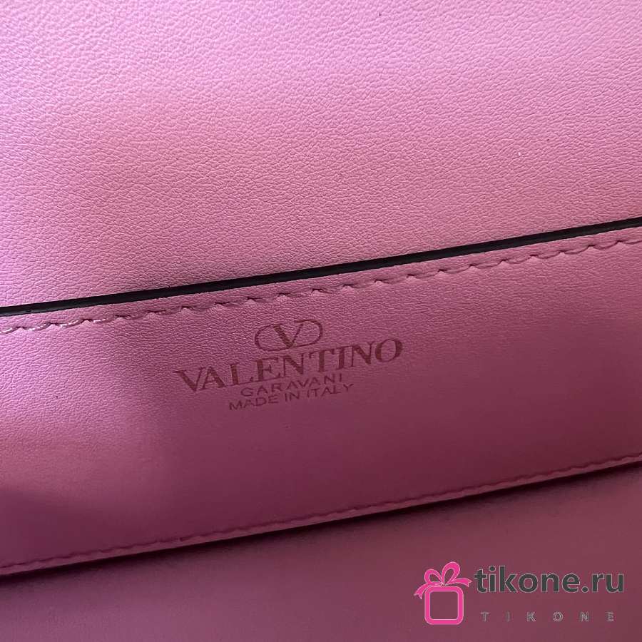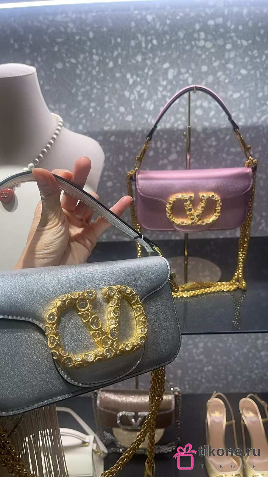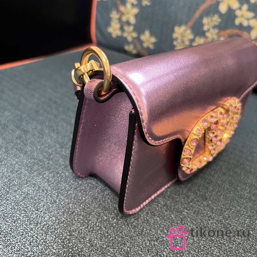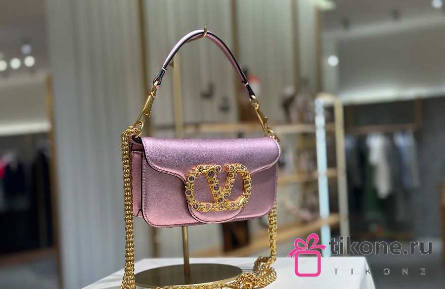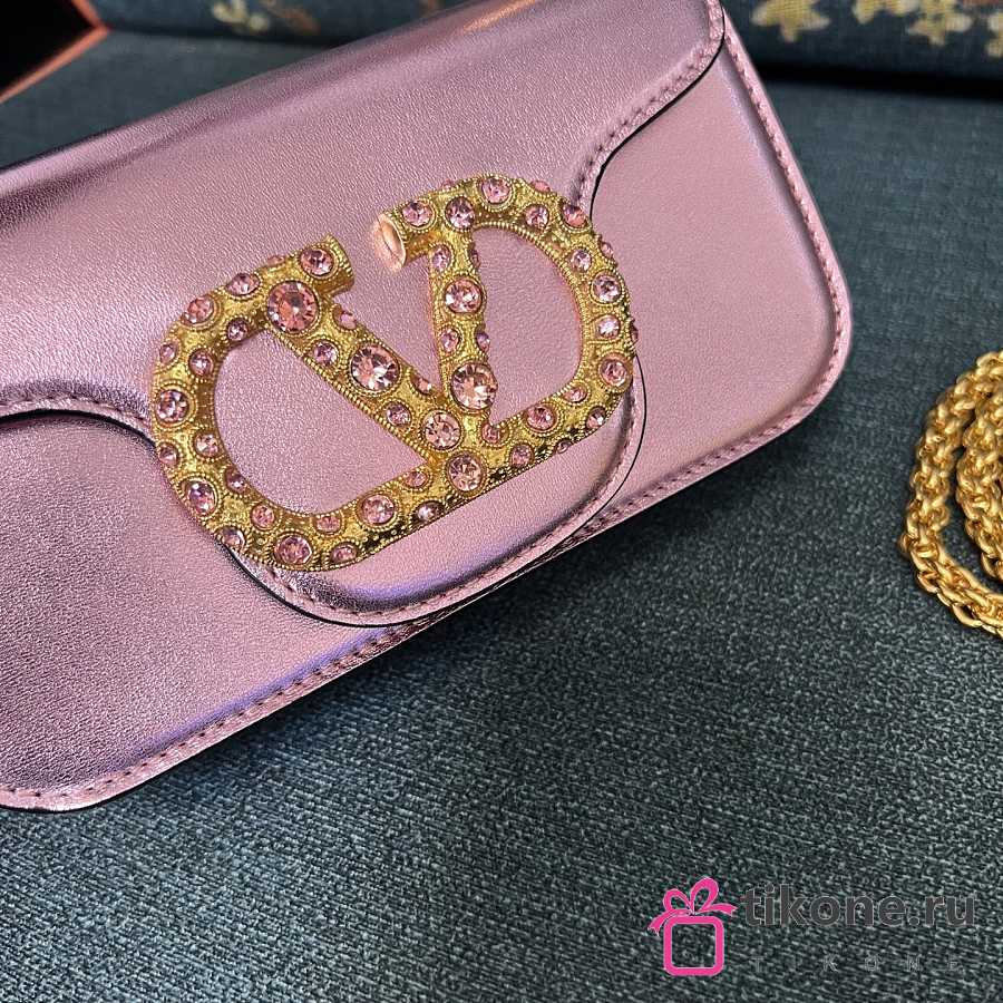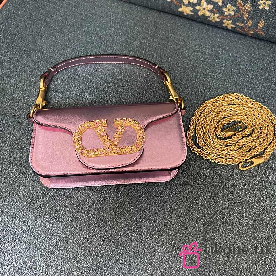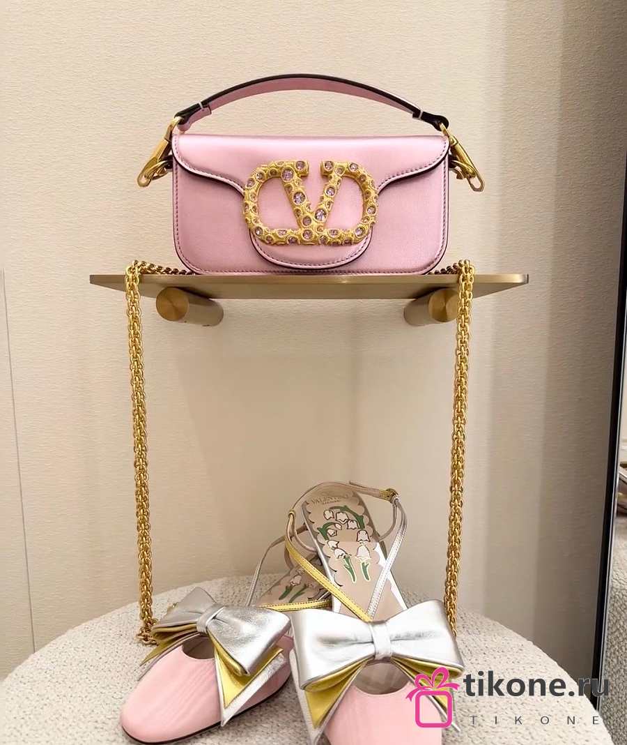 Valentino Garavani Loco Small Shoulder Bag In Laminated Calfskin With Jewel Logo Rose Cannelle - 20x11x5cm