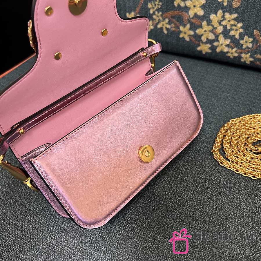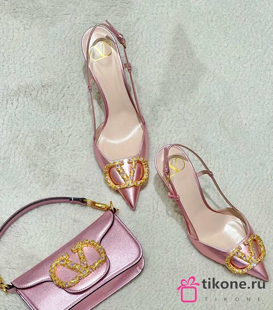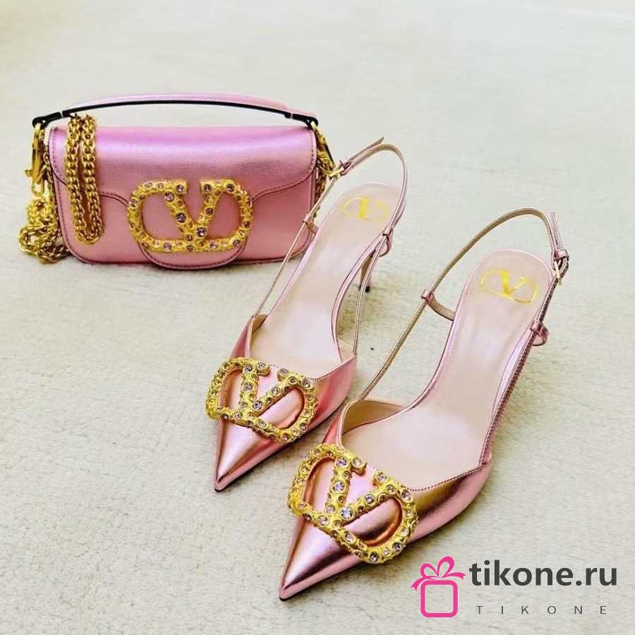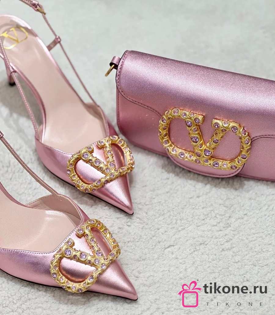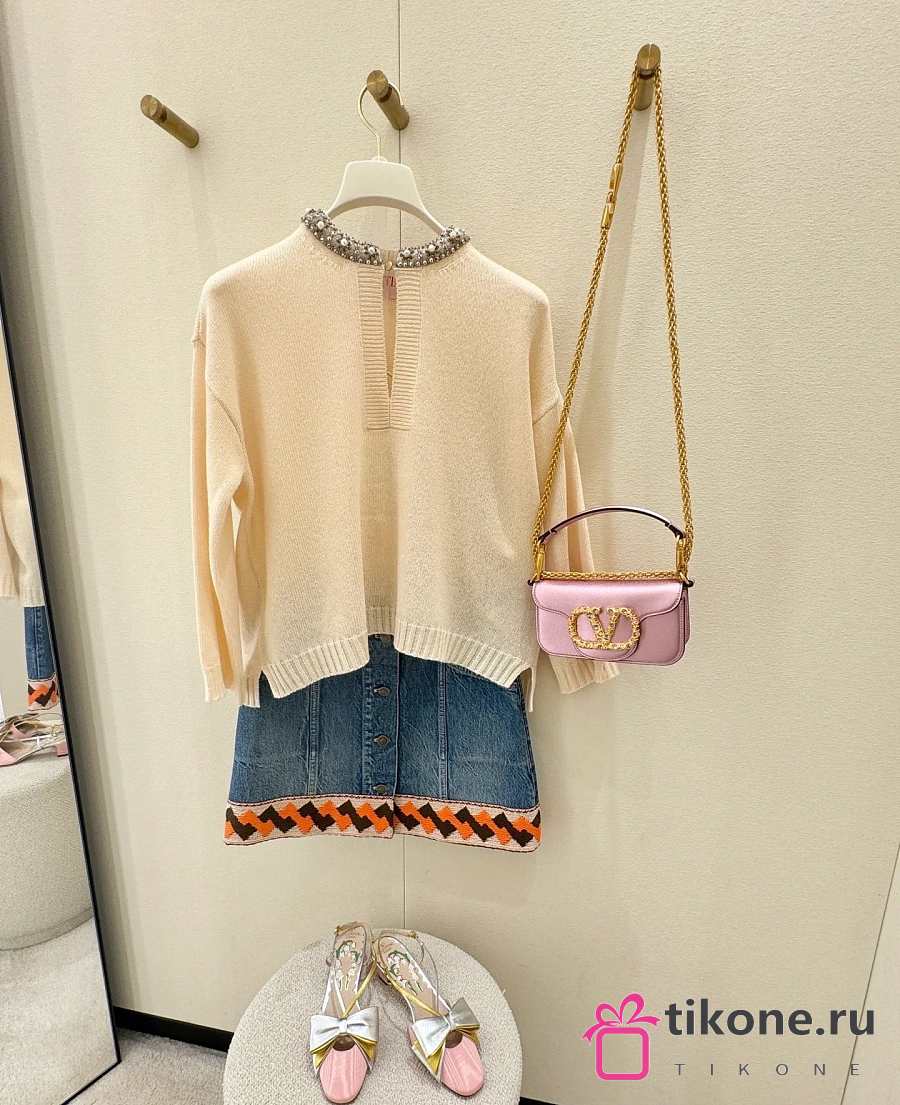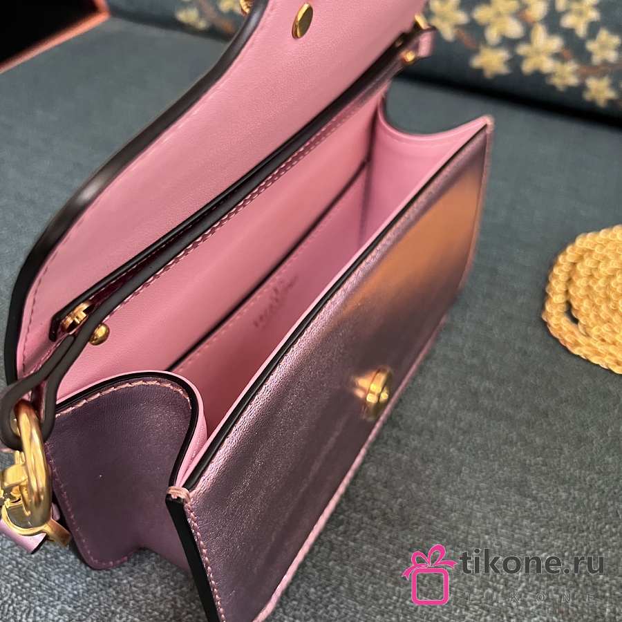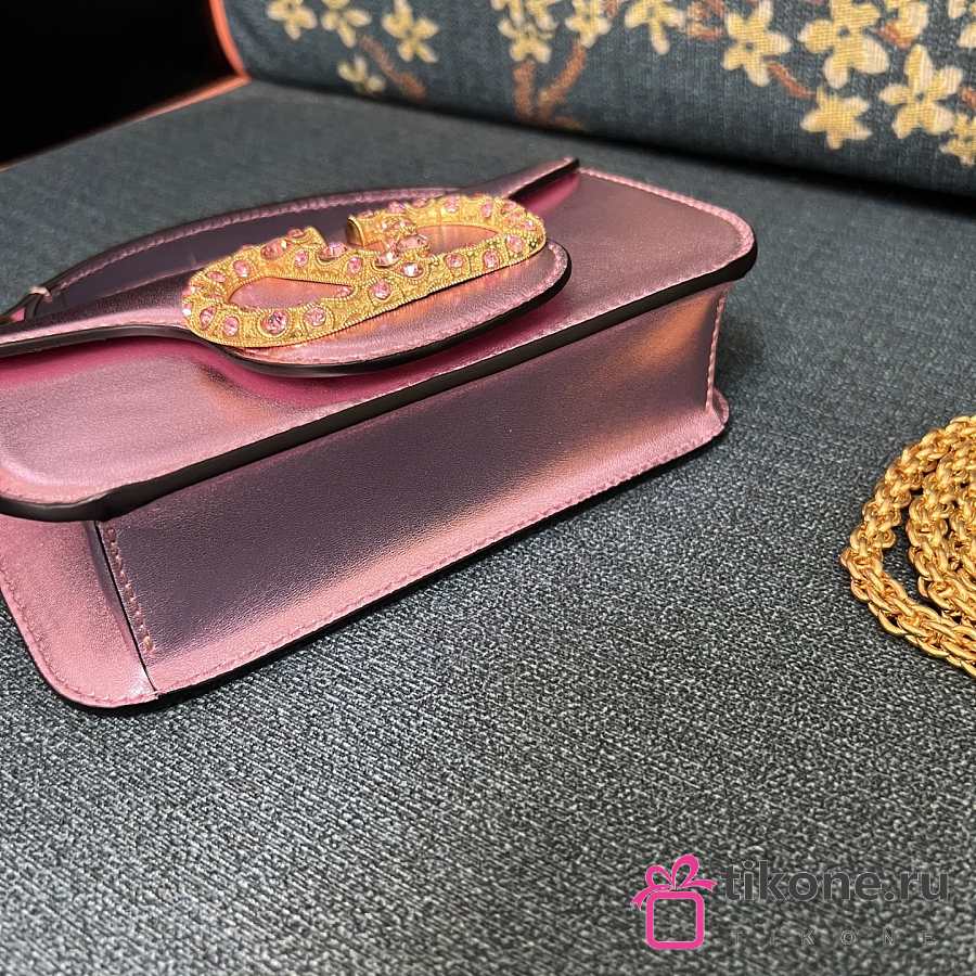 Valentino Garavani Loco Small Shoulder Bag In Laminated Calfskin With Jewel Logo Rose Cannelle - 20x11x5cm