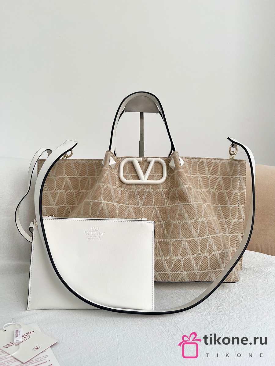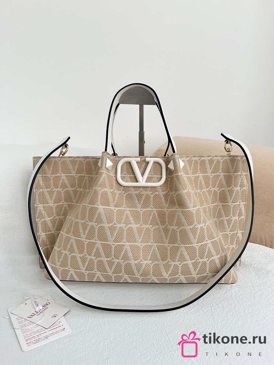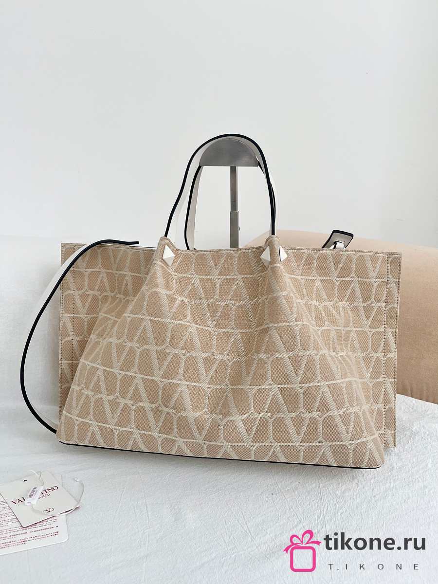 Valentino Garavani Medium Toile Iconographe Raffia Tote - 35x25x17cm