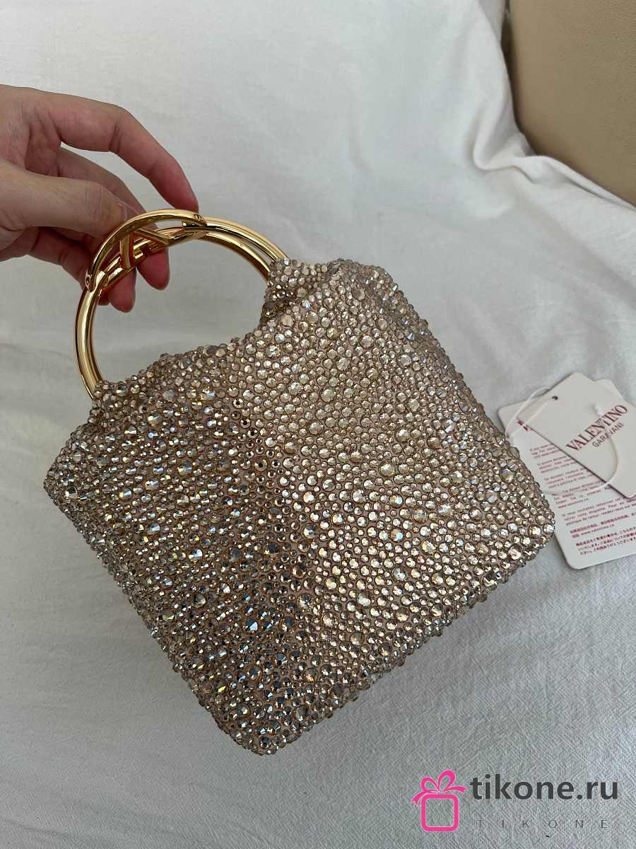 Valentino Garavani Multi Crystal Embellished Carry Secrets Embroidered Bucket - 15x12x10cm