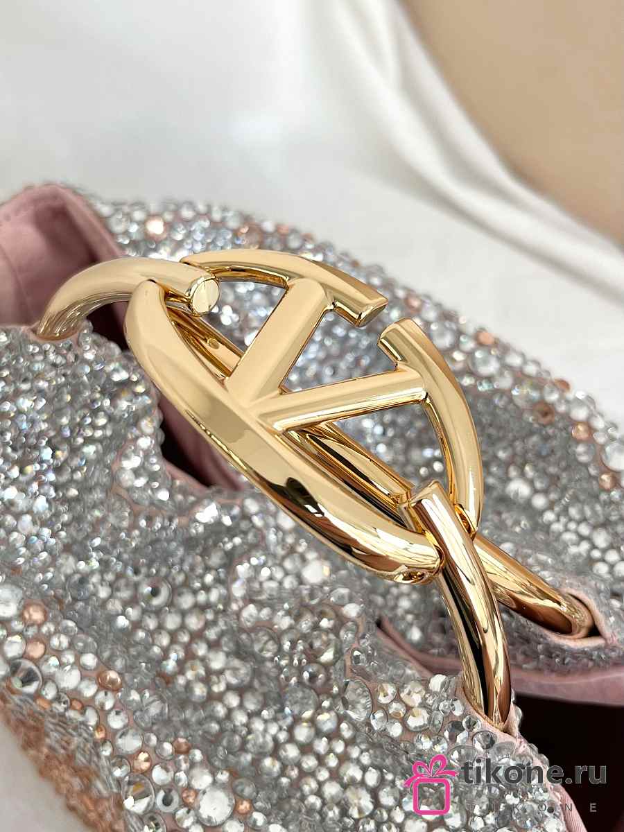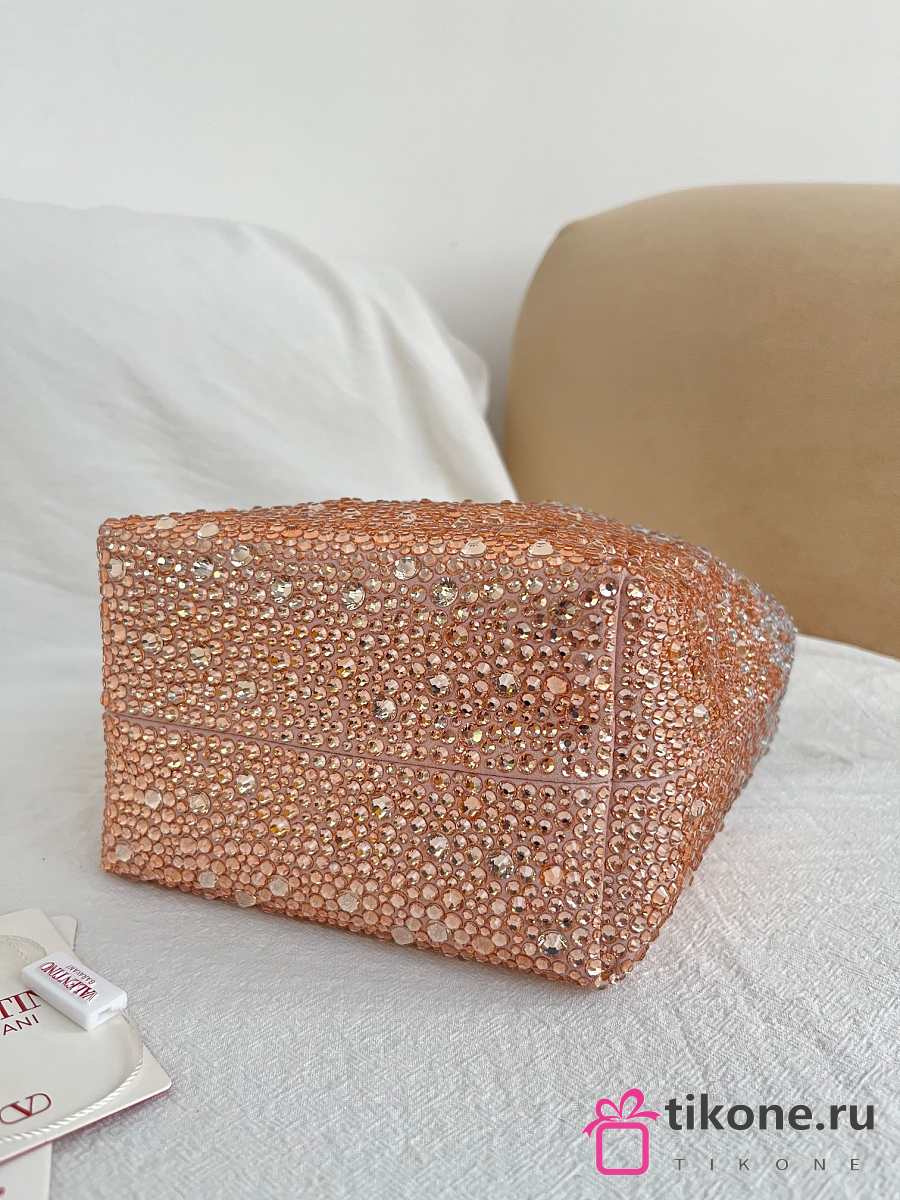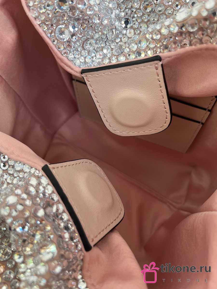 Valentino Garavani Multi Crystal Embellished Carry Secrets Embroidered Bucket Pink - 15x12x10cm