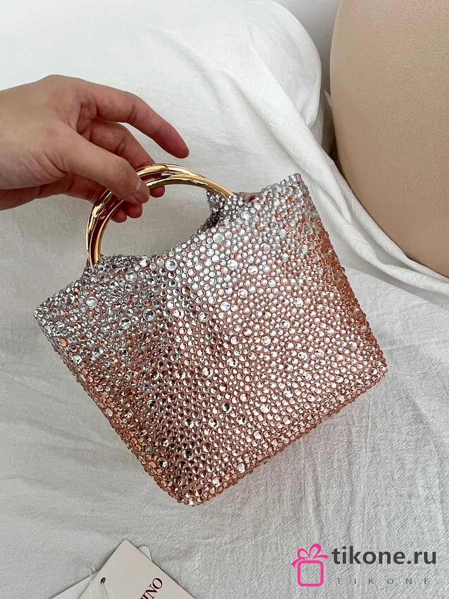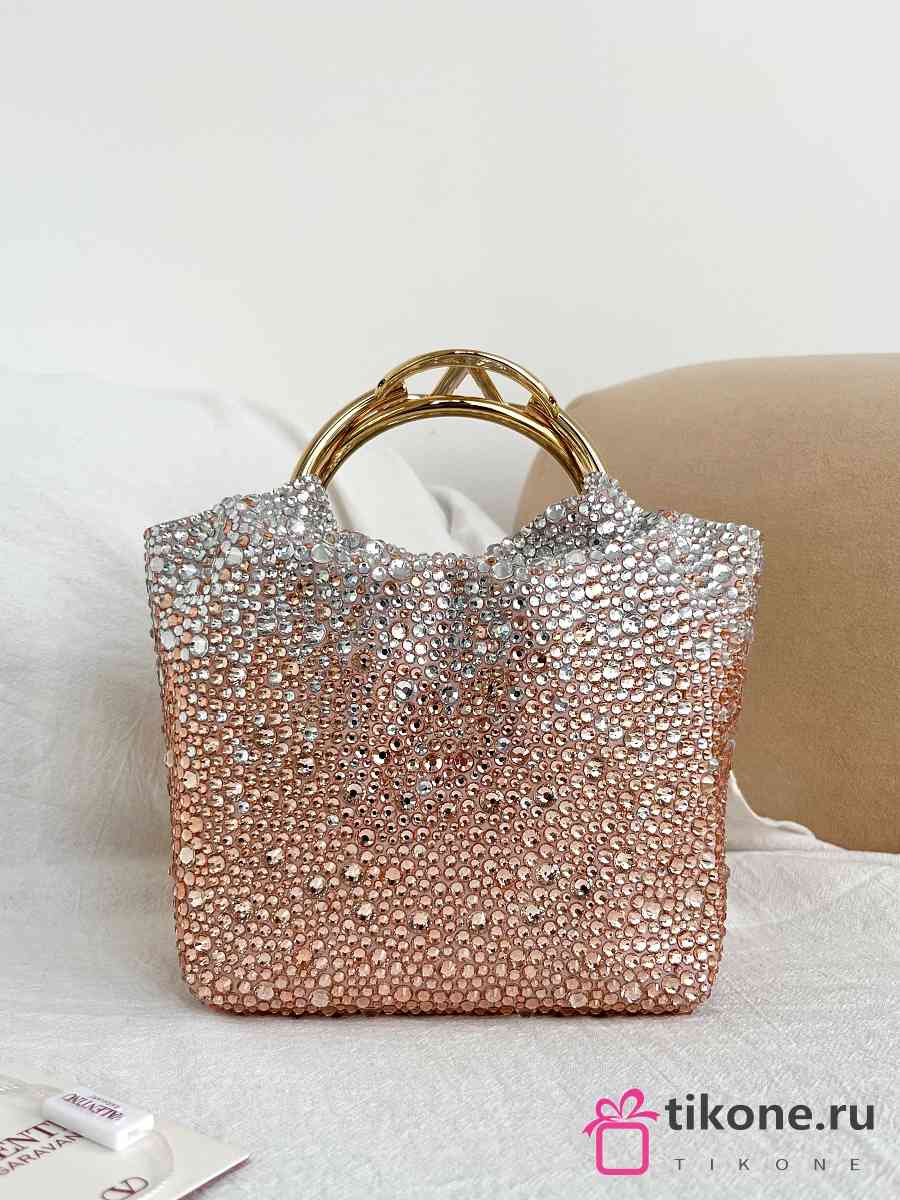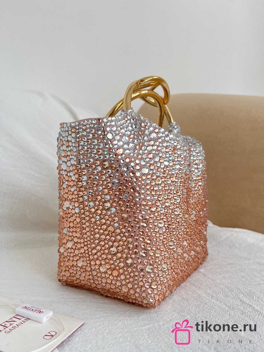 Valentino Garavani Multi Crystal Embellished Carry Secrets Embroidered Bucket Pink - 15x12x10cm