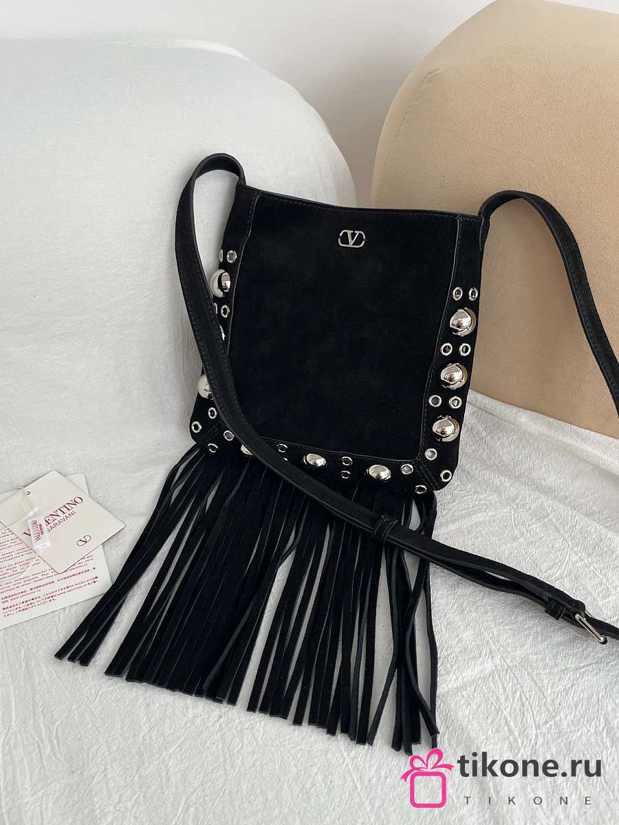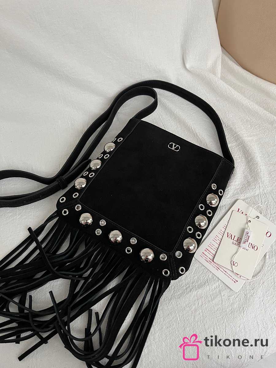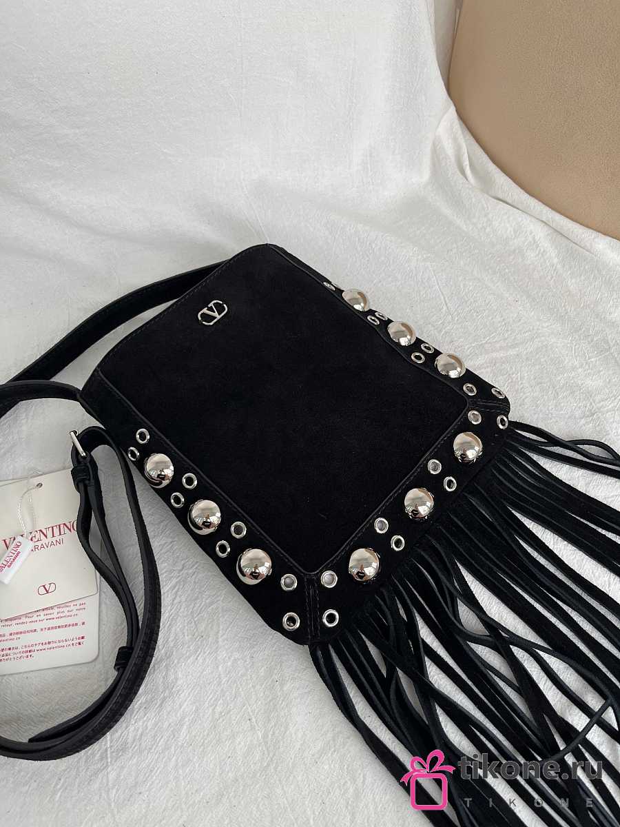Valentino Garavani Nellcôte Small Shoulder Bag In Suede With Fringes Black - 20x20x3cm