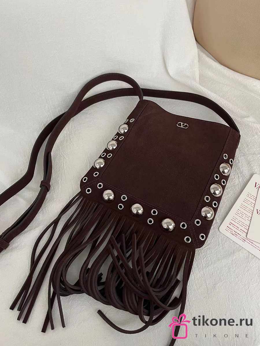 Valentino Garavani Nellcôte Small Shoulder Bag In Suede With Fringes Brown - 20x20x3cm