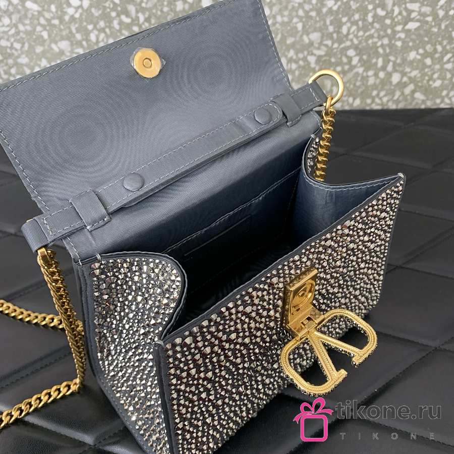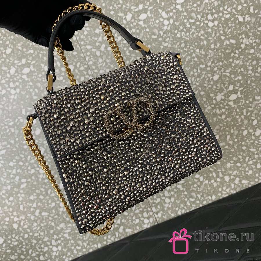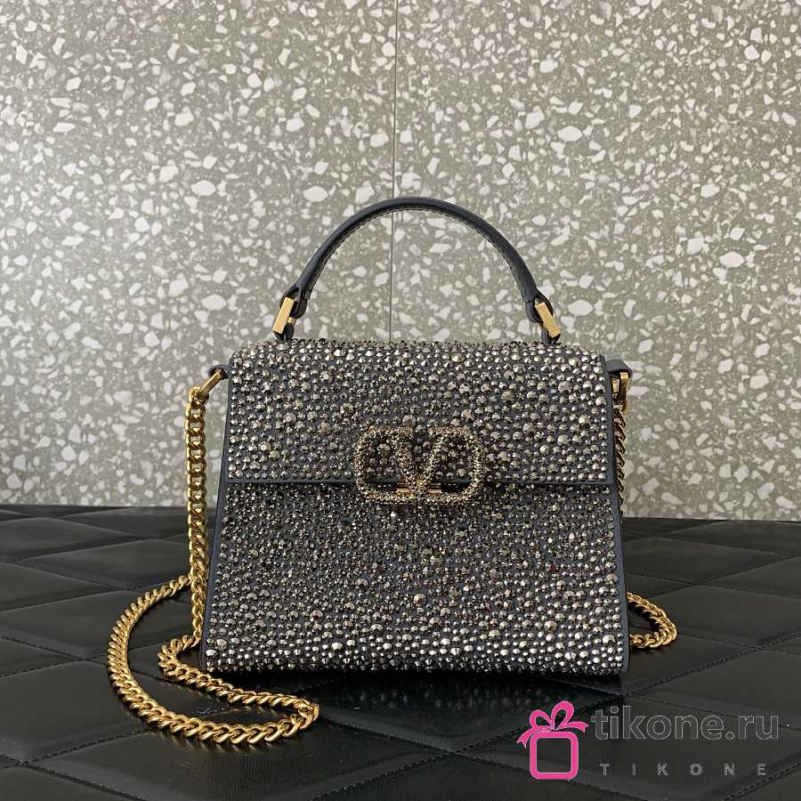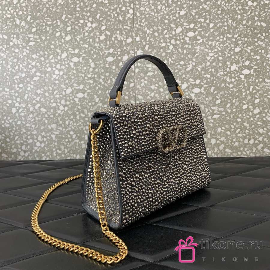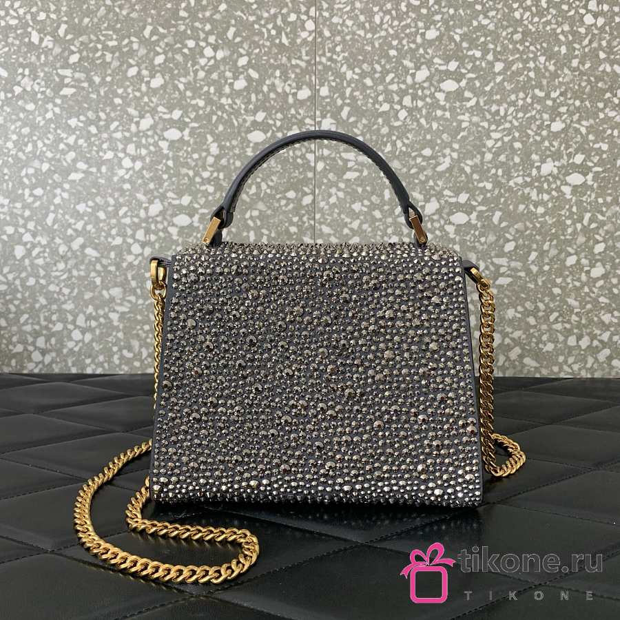 Valentino Garavani Silver Mini Leather Embellished Top Handle - 19x13x9cm