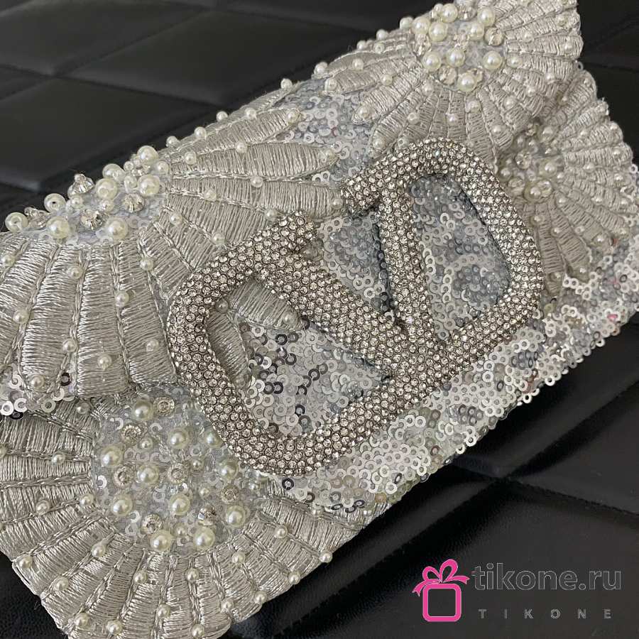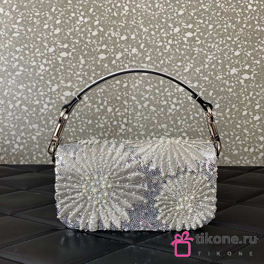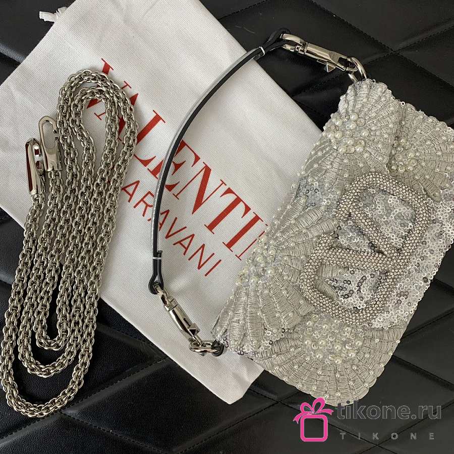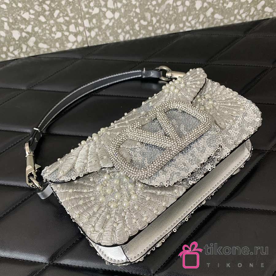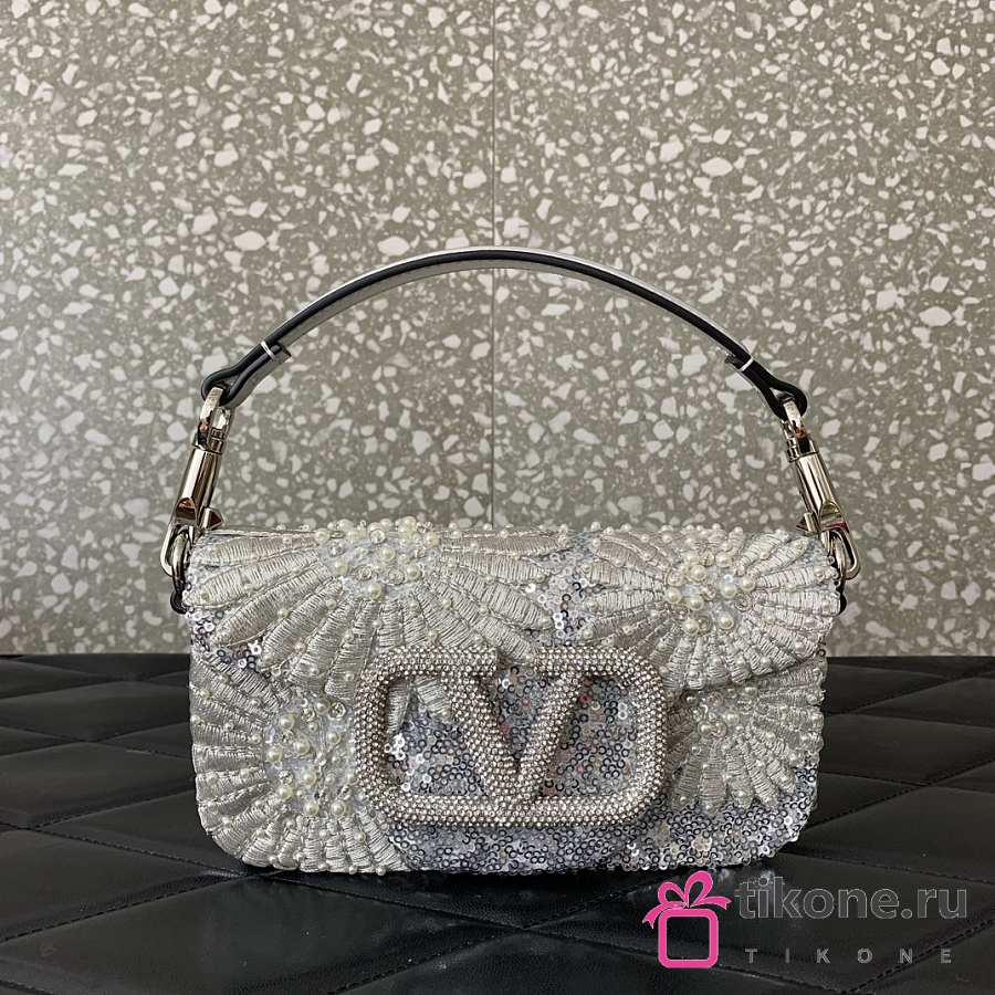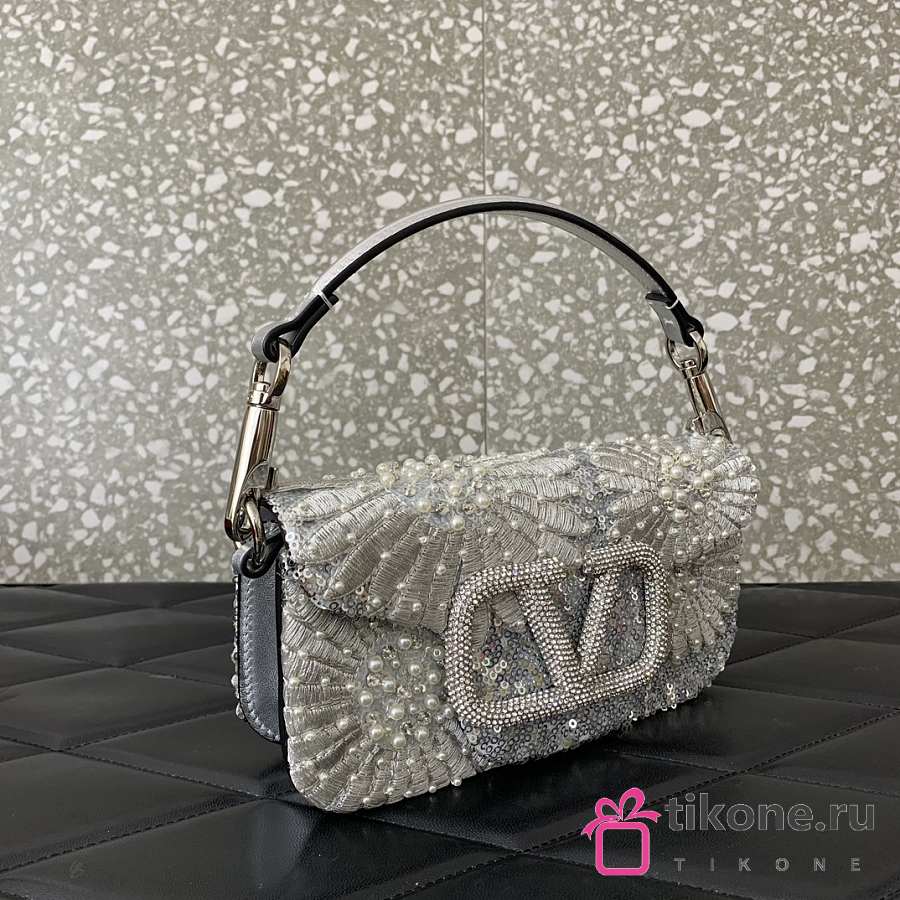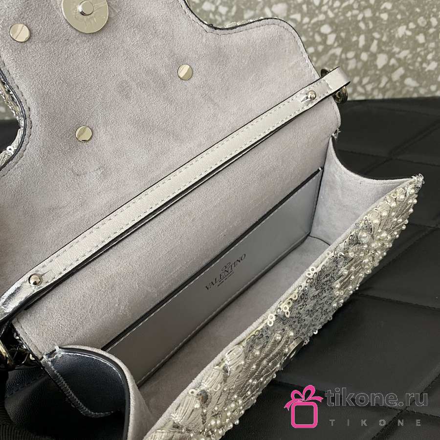 Valentino Garavani Small Lòco Embellished Shoulder Bag Silver - 20x11x5cm