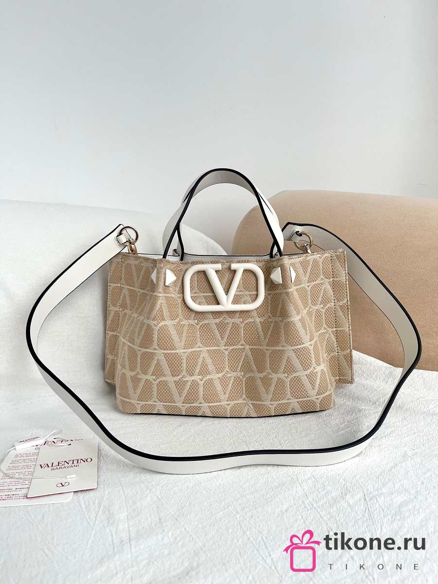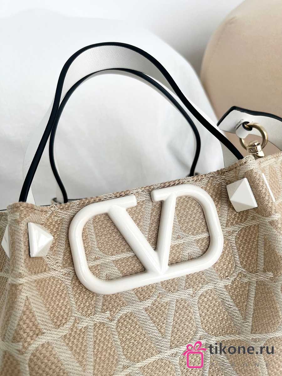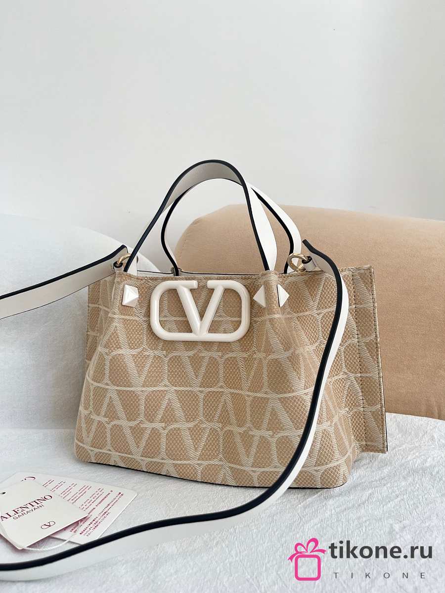Valentino Garavani Small Toile Iconographe Raffia Tote - 25x18x12cm
