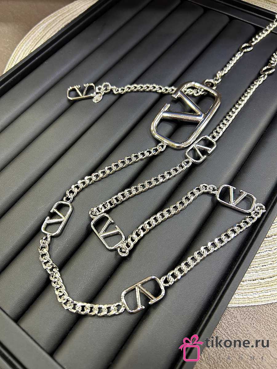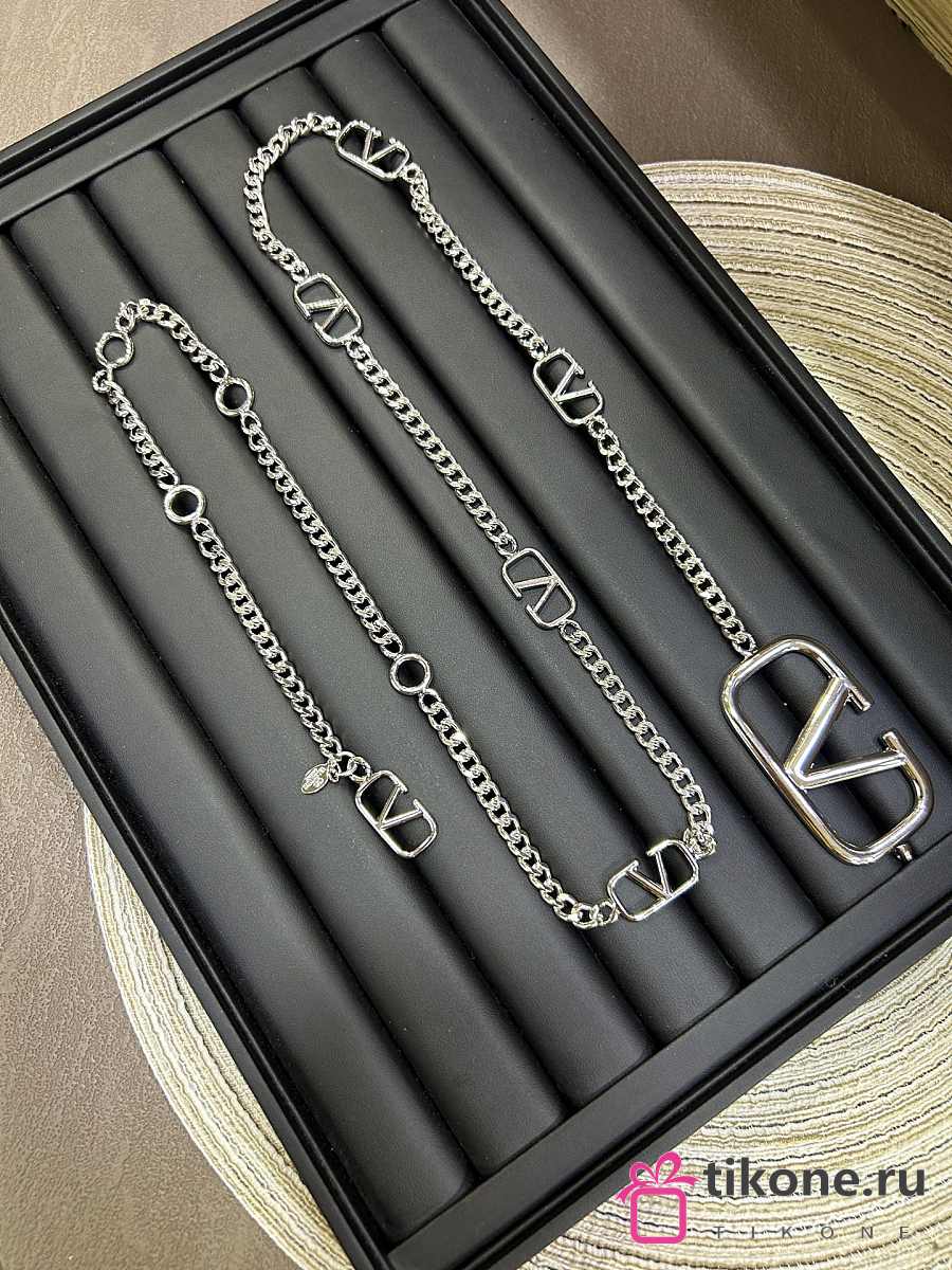 Valentino Garavani VLogo Signature Silver Metal Chain Belt with Mini VLogo