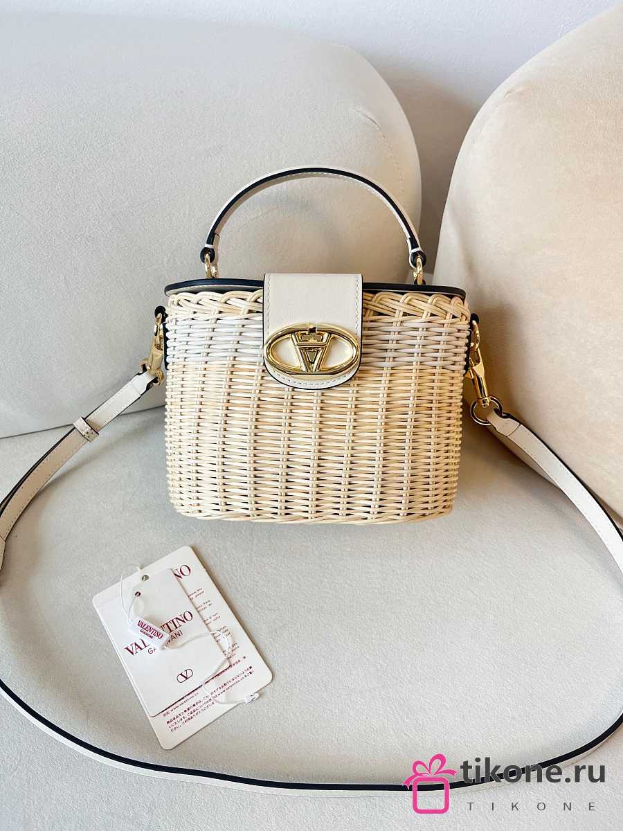 Valentino Garavani VLogo Signature Wicker Vanity Bag Natural - 19x13.5x13cm
