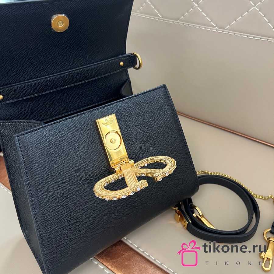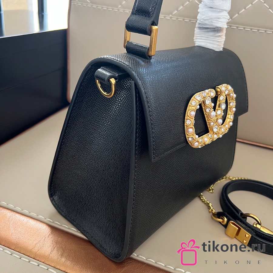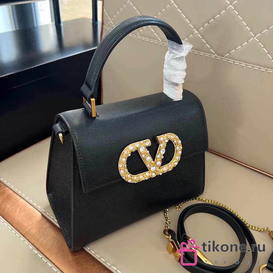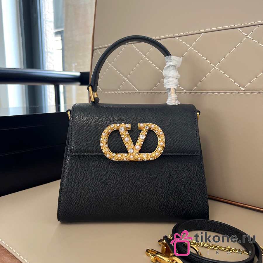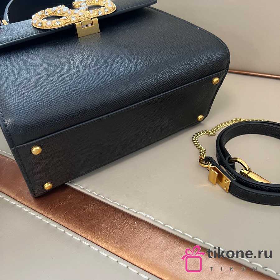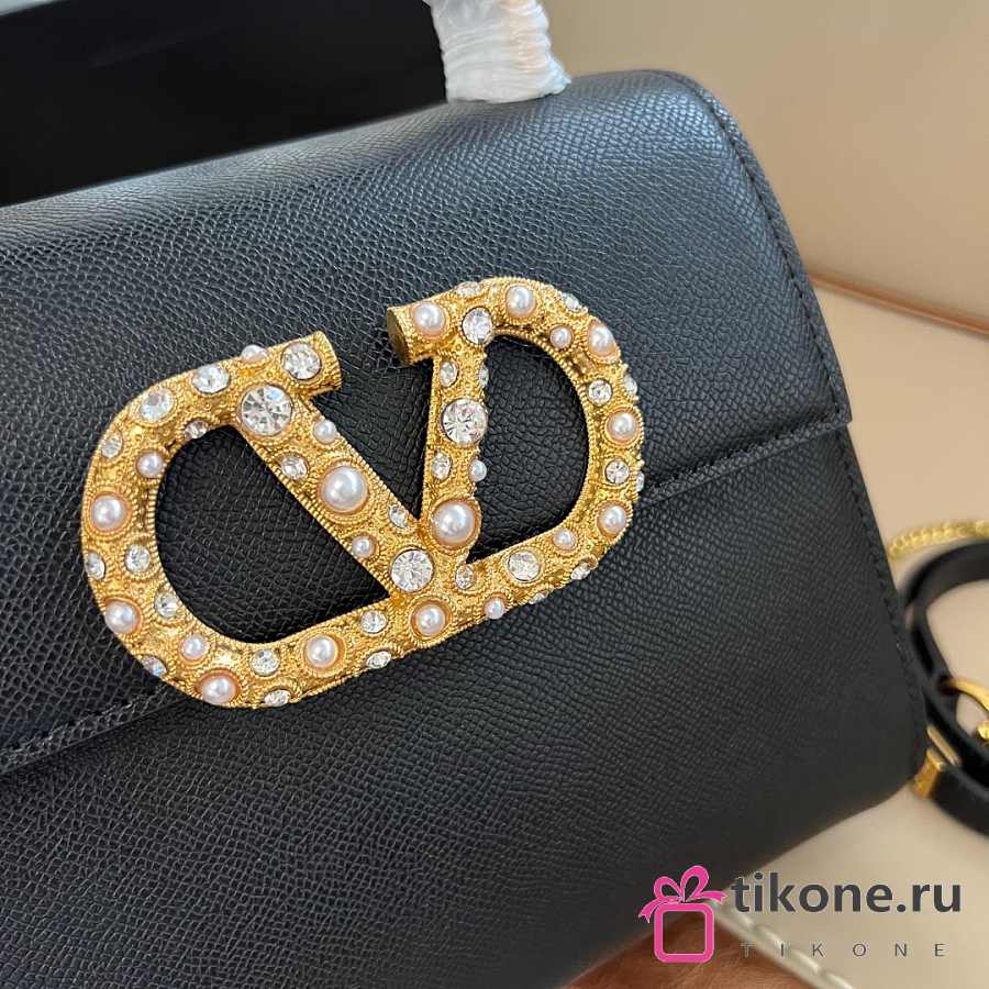 Valentino Garavani Vsling Small Handbag In Grainy Calfskin With Jewel Logo Black - 22x17x9cm
