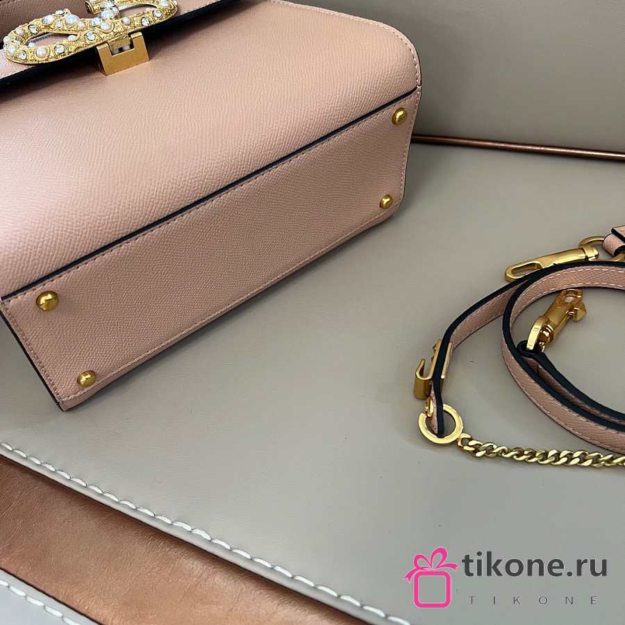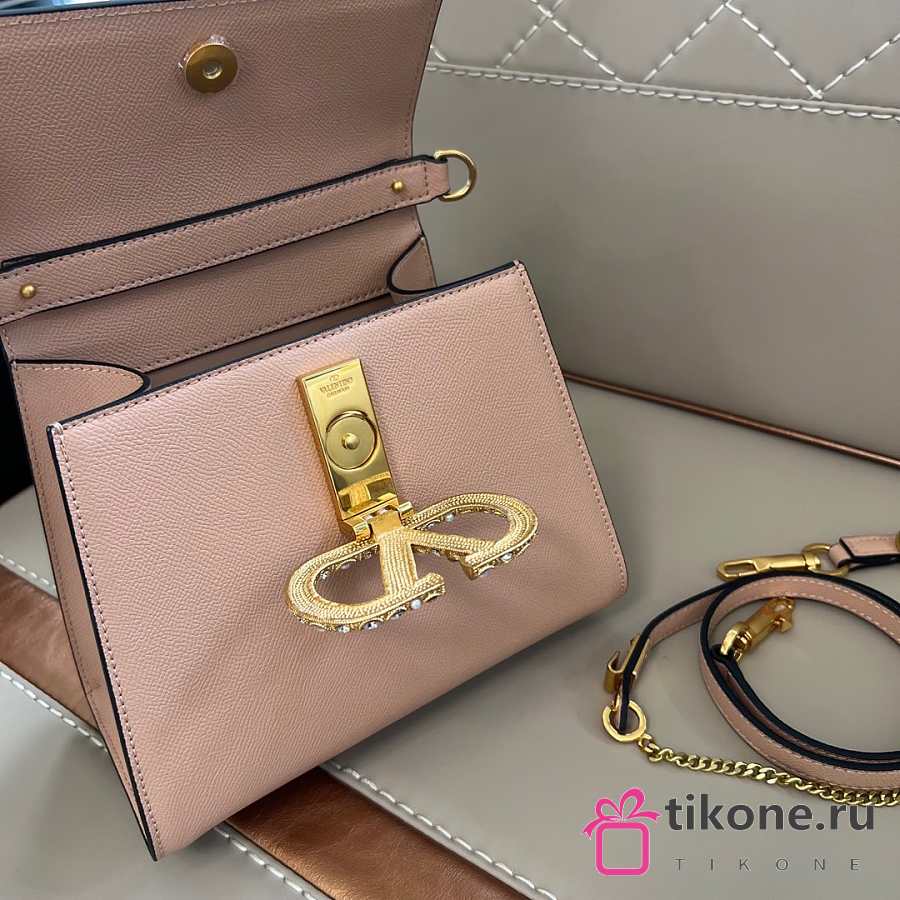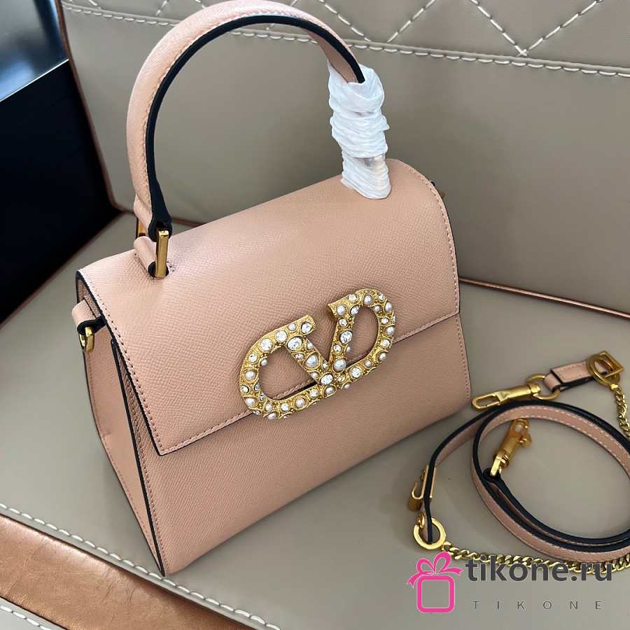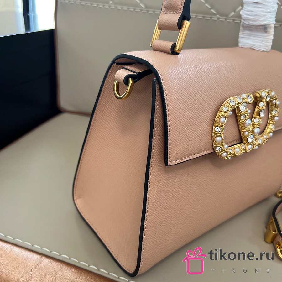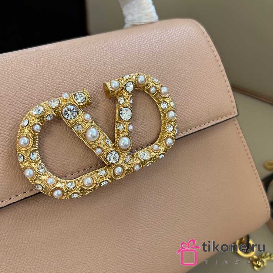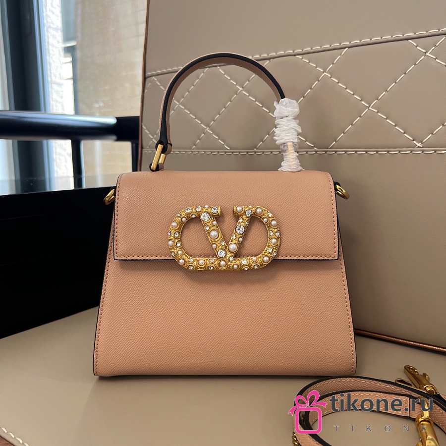 Valentino Garavani Vsling Small Handbag In Grainy Calfskin With Jewel Logo Rose Cannelle - 22x17x9cm