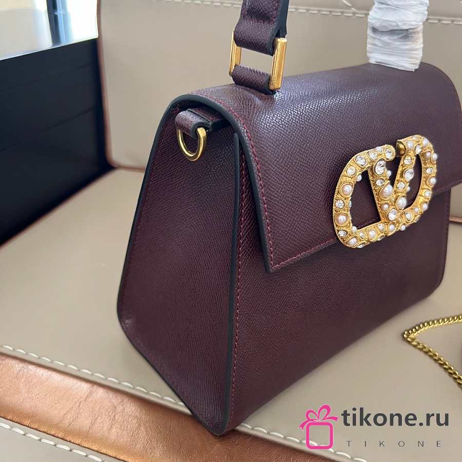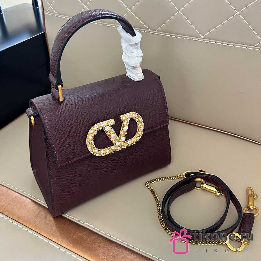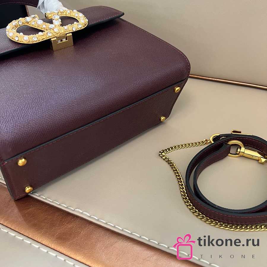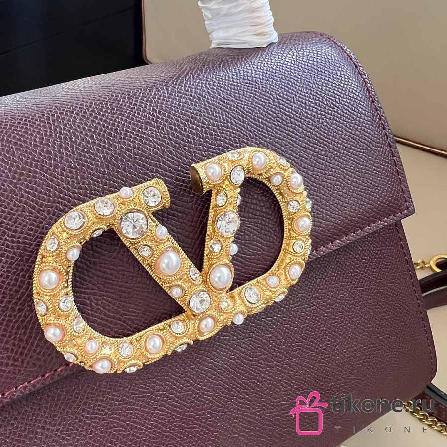 Valentino Garavani Vsling Small Handbag In Grainy Calfskin With Jewel Logo Rosewood - 22x17x9cm