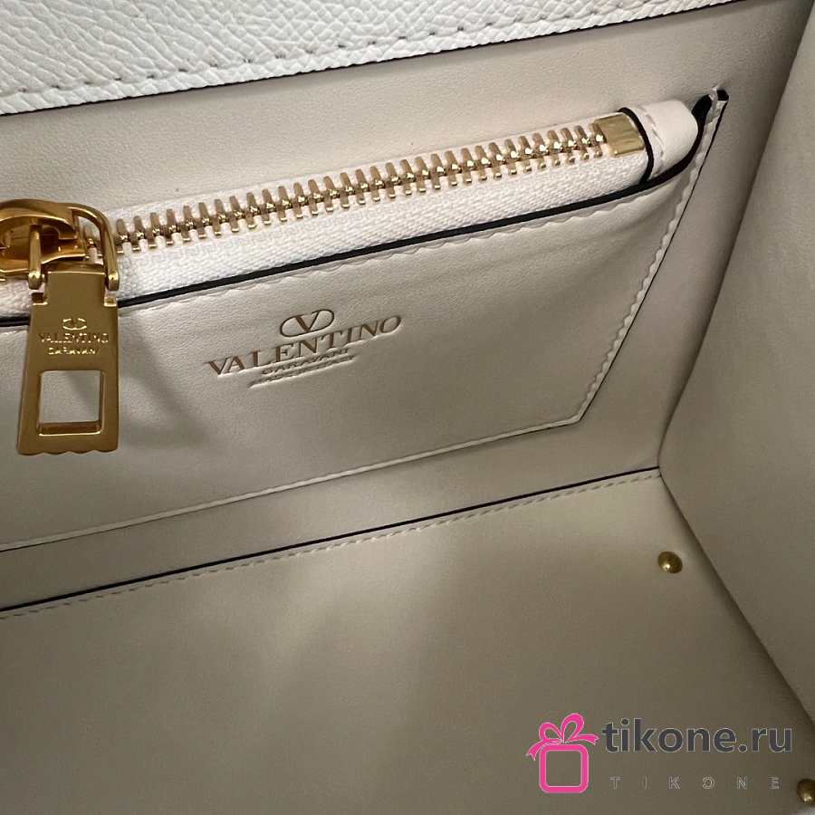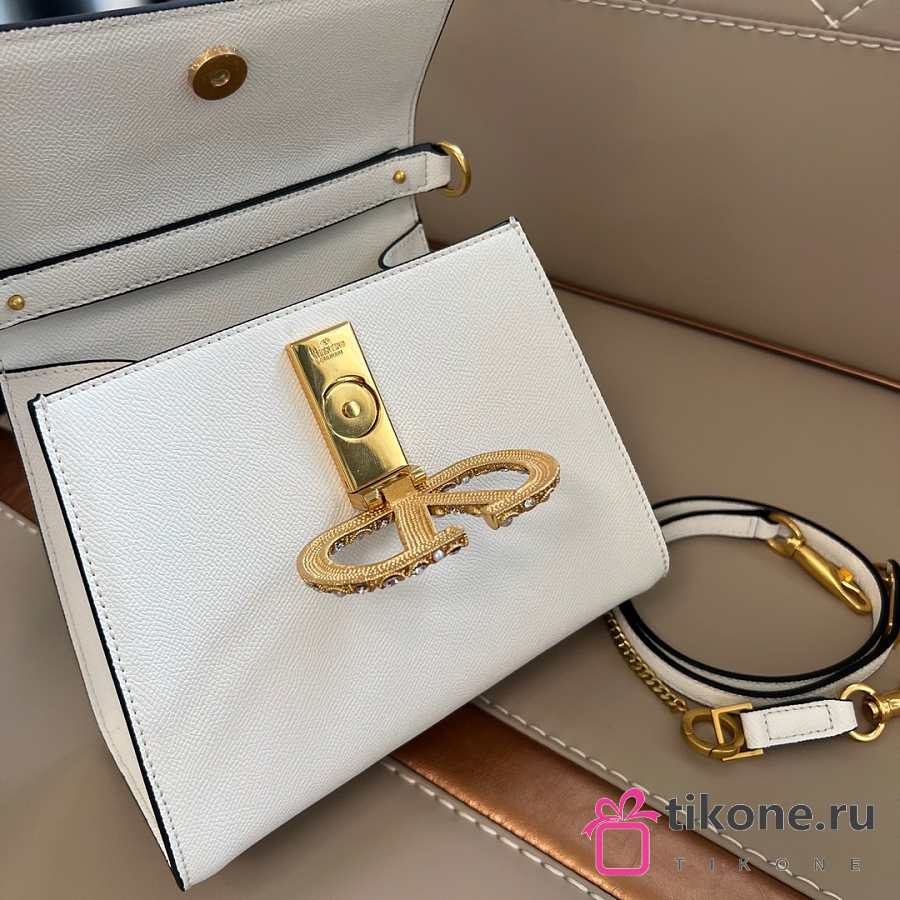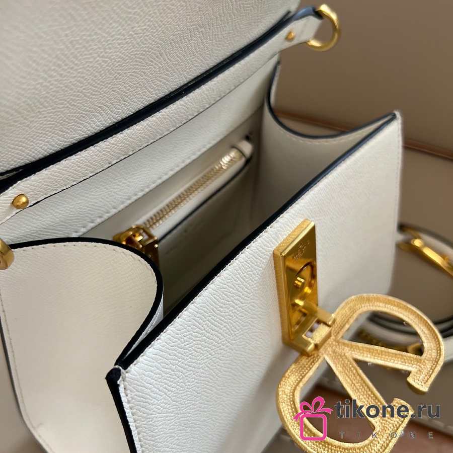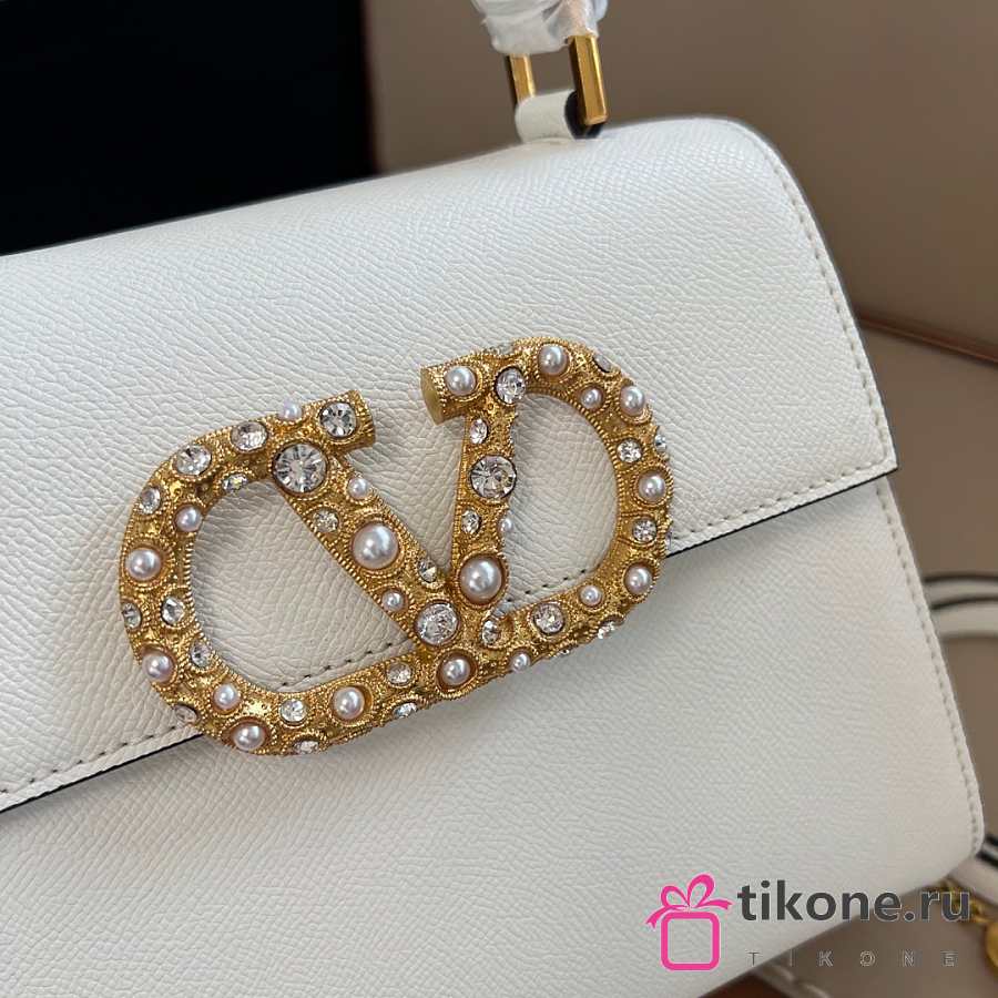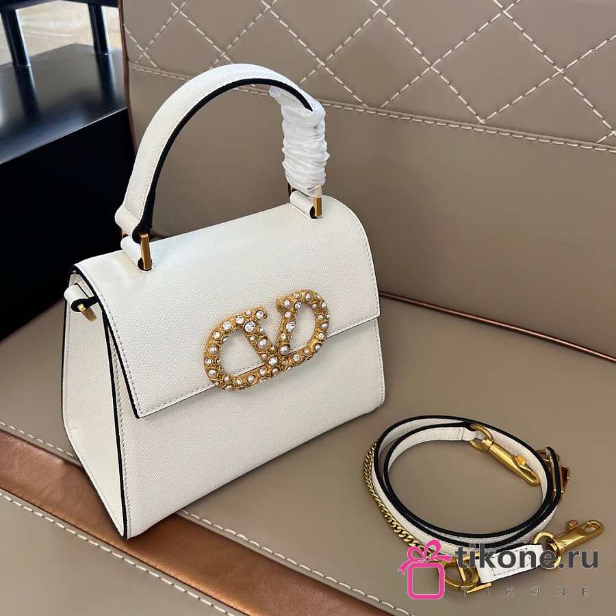 Valentino Garavani Vsling Small Handbag In Grainy Calfskin With Jewel Logo White - 22x17x9cm