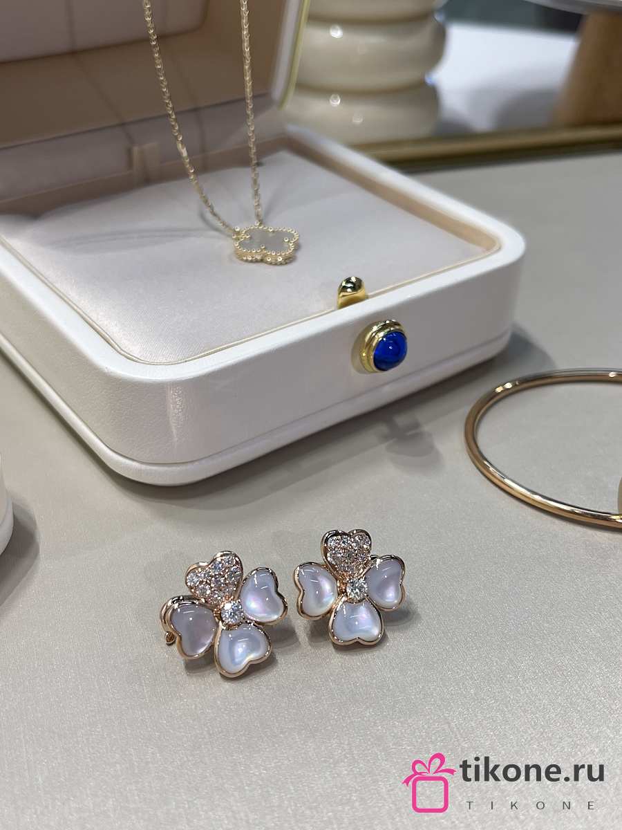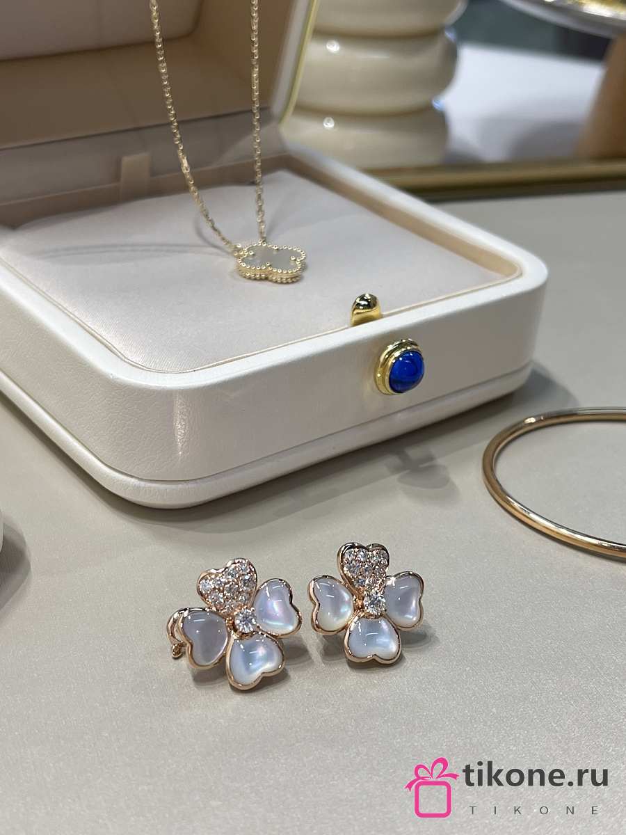 VCA Cosmos Earrings 18k Rose Gold Mother-Of-Pearl And Diamond Flower Stud Earrings