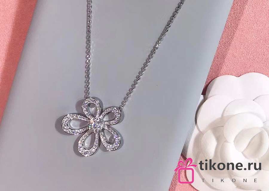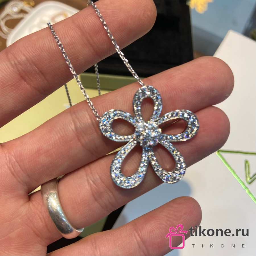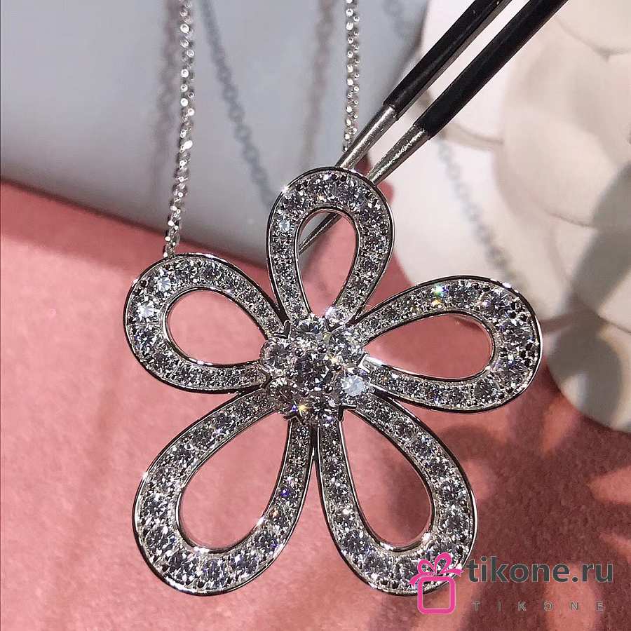 VCA Flowerlace Pendant 18k White Gold Diamond VCARP05200