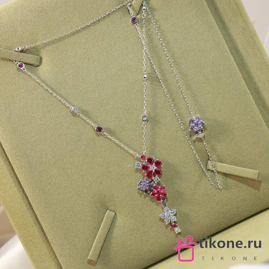 VCA Folie Des Pres Pendant 18K White Gold Diamond Sapphire VCARP05L00