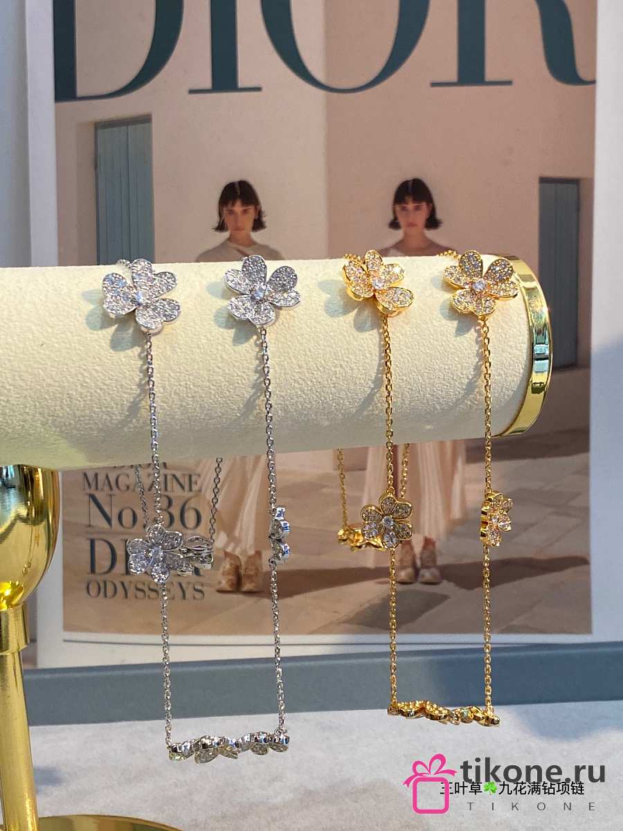 VCA Frivole Necklace 9 Flowers 18k Yellow Gold Diamond VCARN25400
