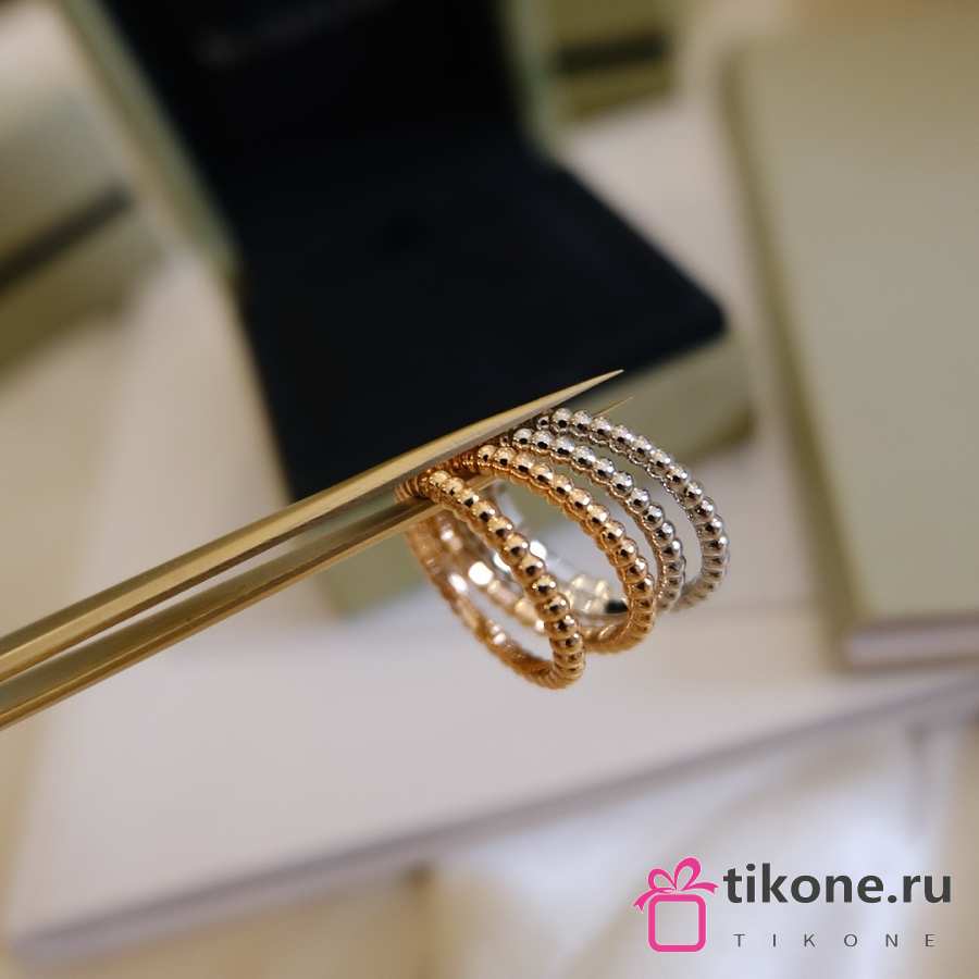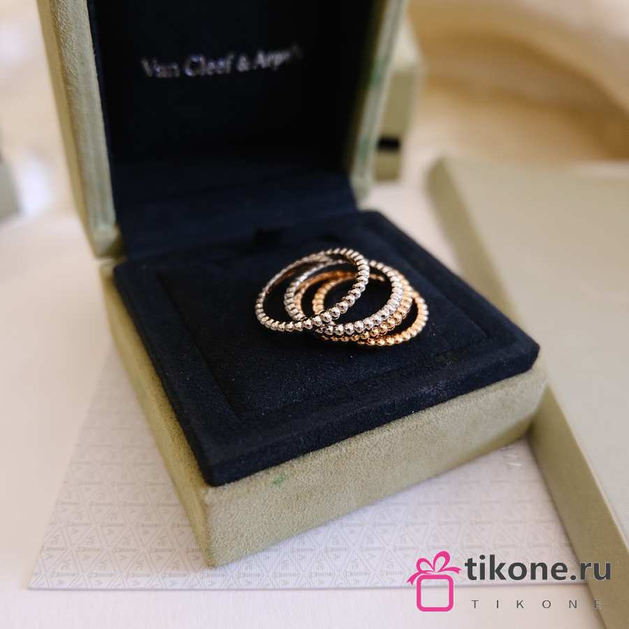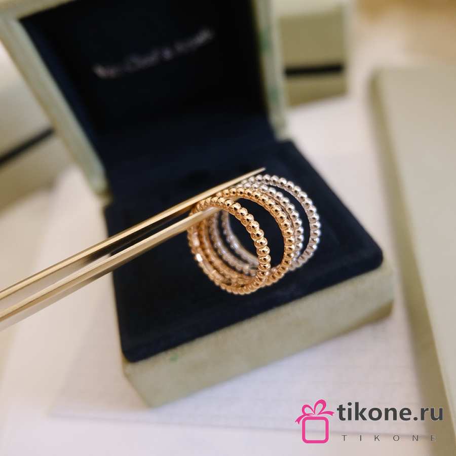 VCA Perlee Diamonds Ring 3 Rows 18k Yellow Gold