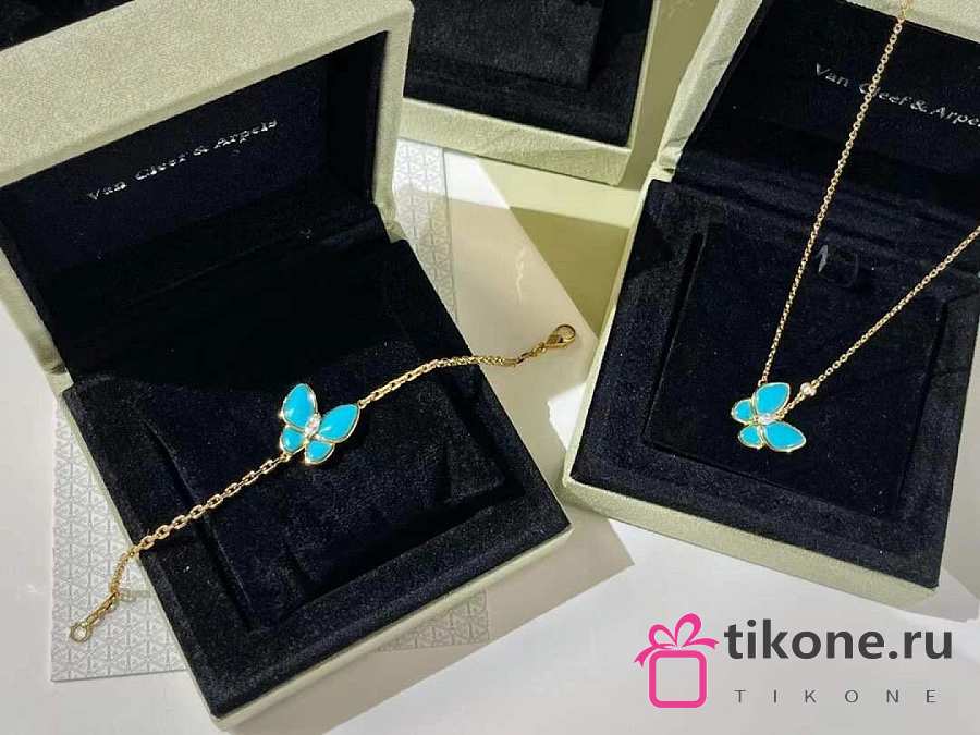 VCA Two Butterfly Pendant 18K Yellow Gold Diamond Turquoise VCARP7UP00