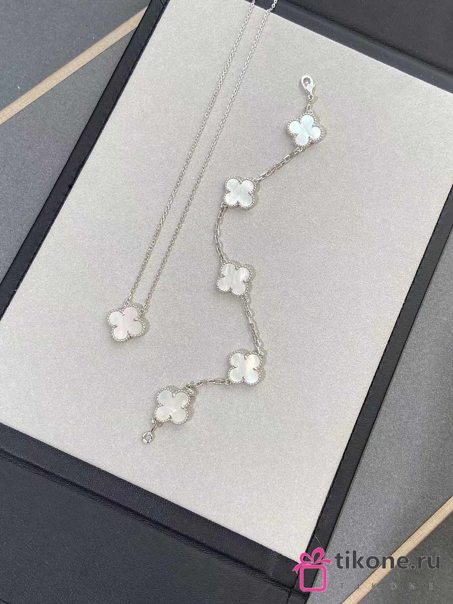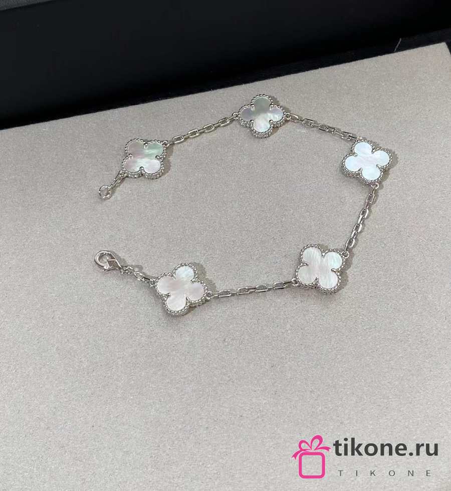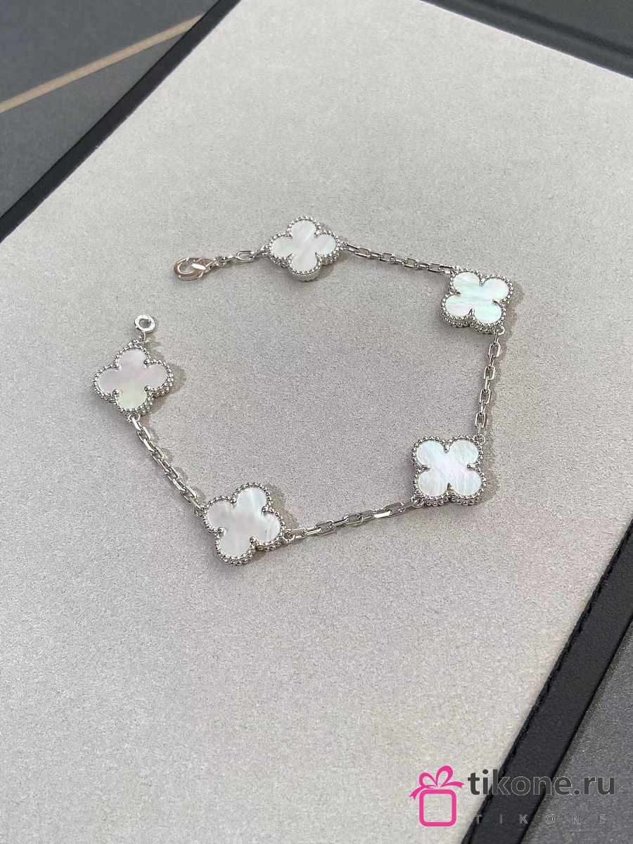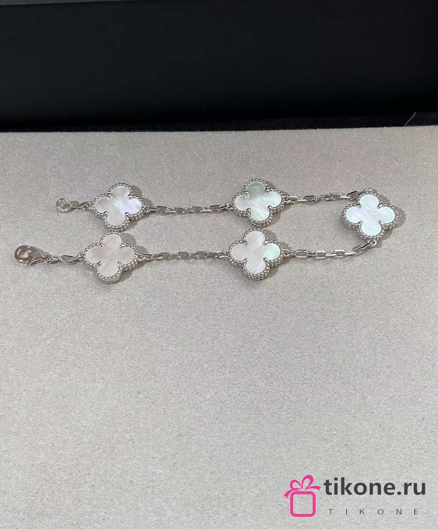 VCA Vintage Alhambra Bracelet 5 Motifs 18k White Gold Mother-Of-Pearl White VCARF48400