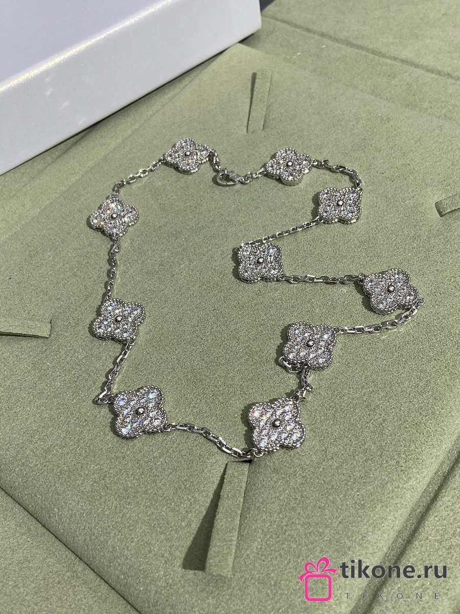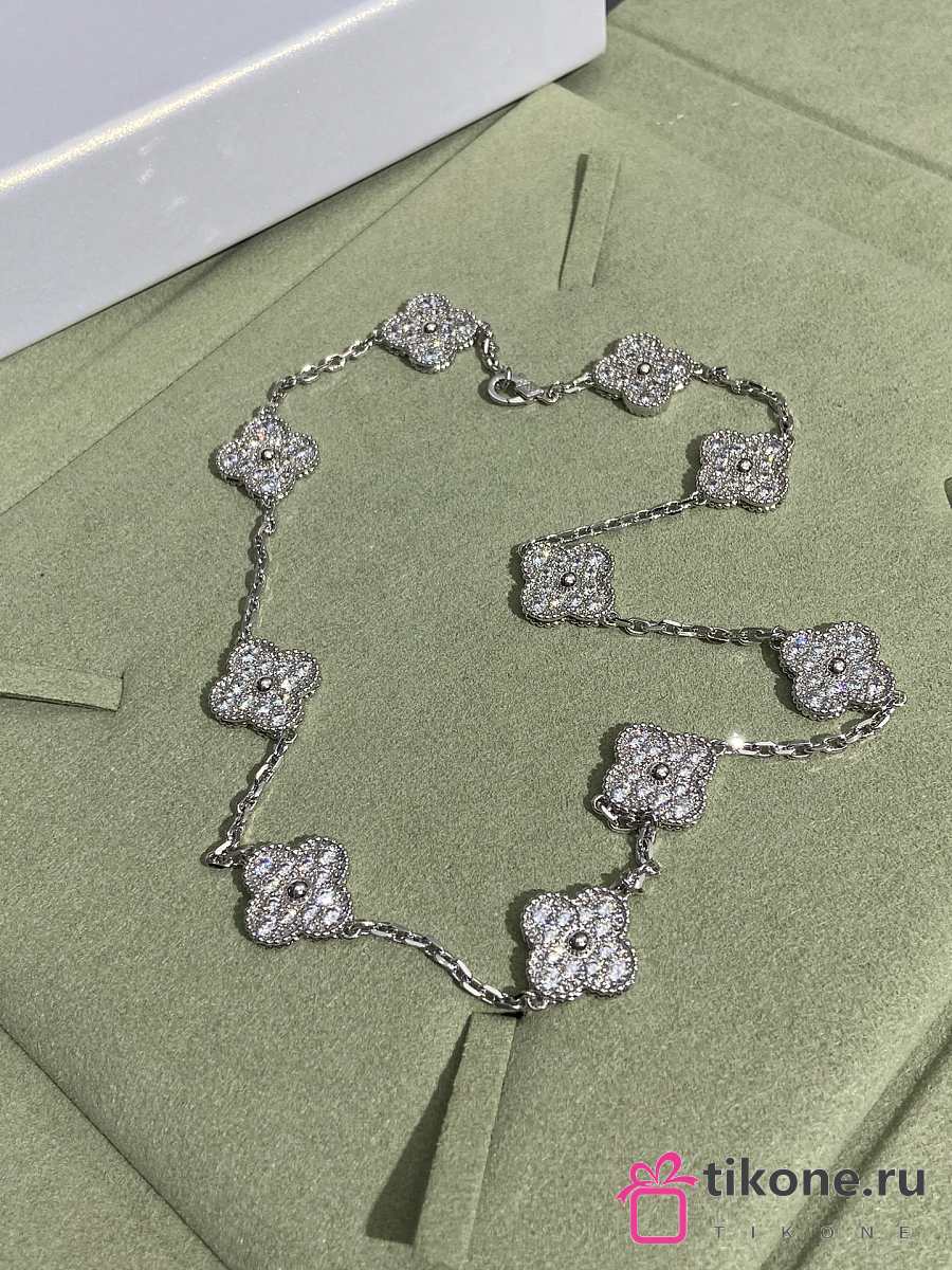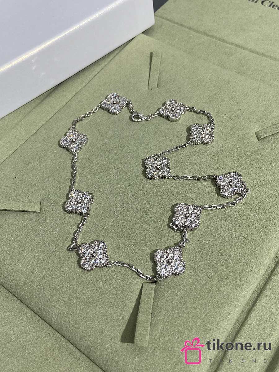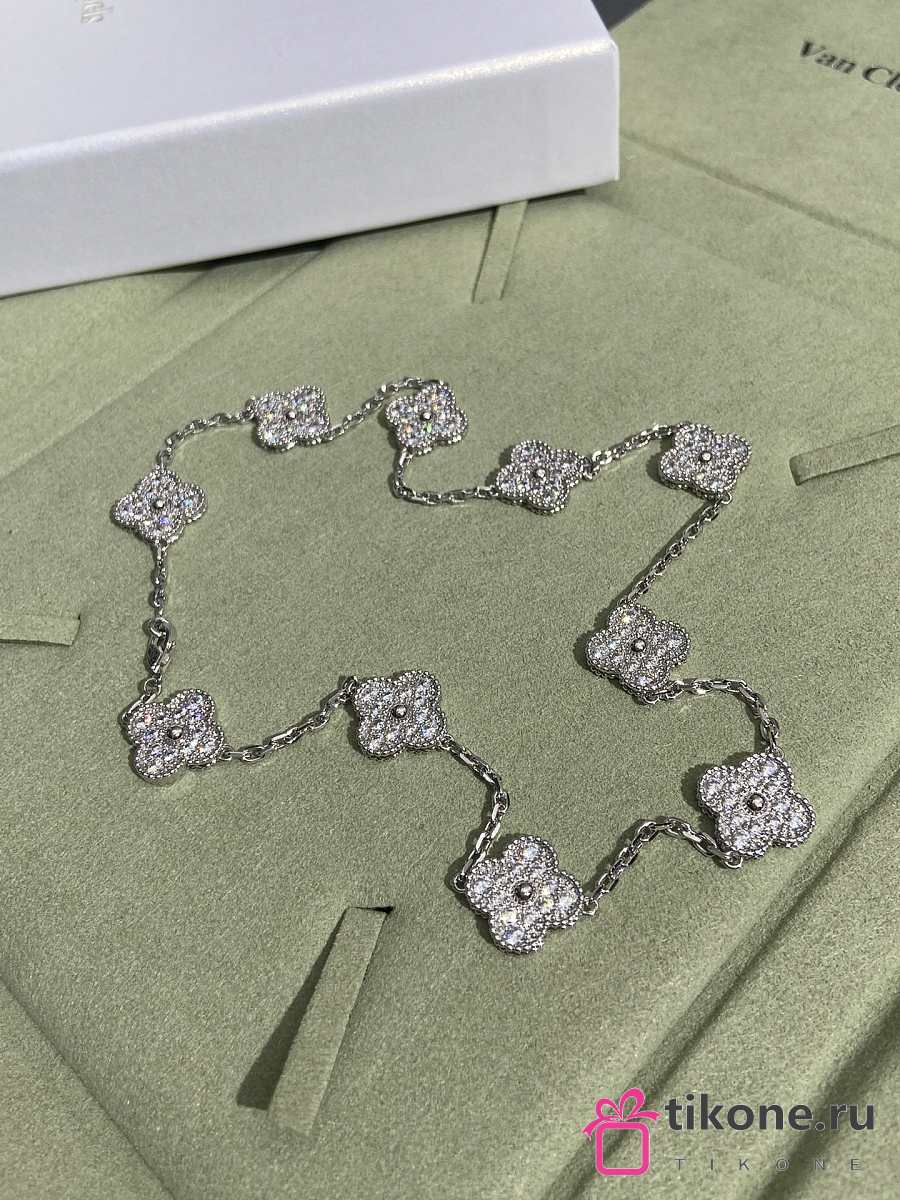 VCA Vintage Alhambra Necklace 10 Motifs 18K White Gold Diamond VCARA42400