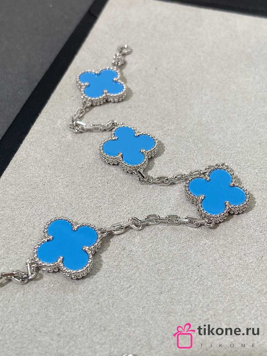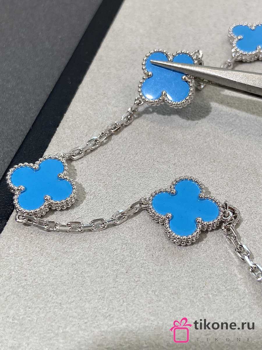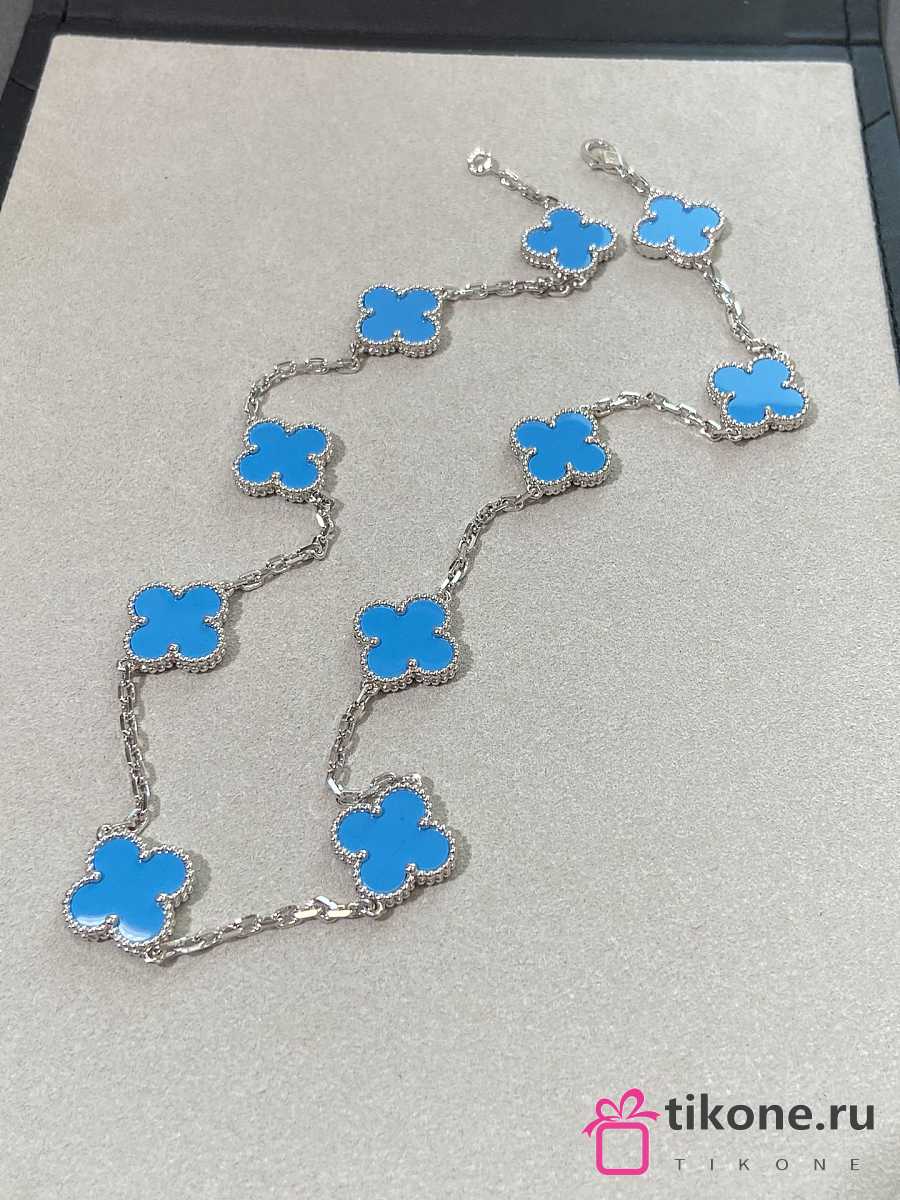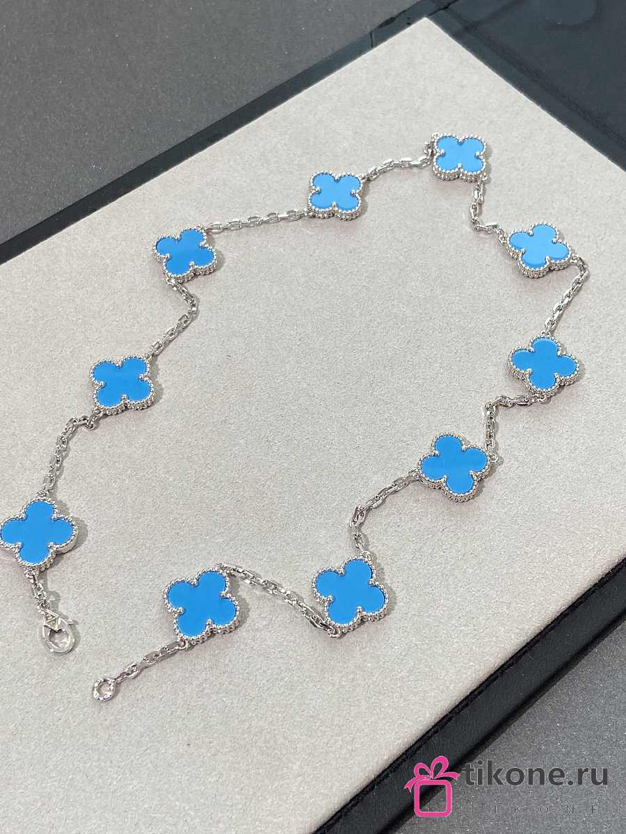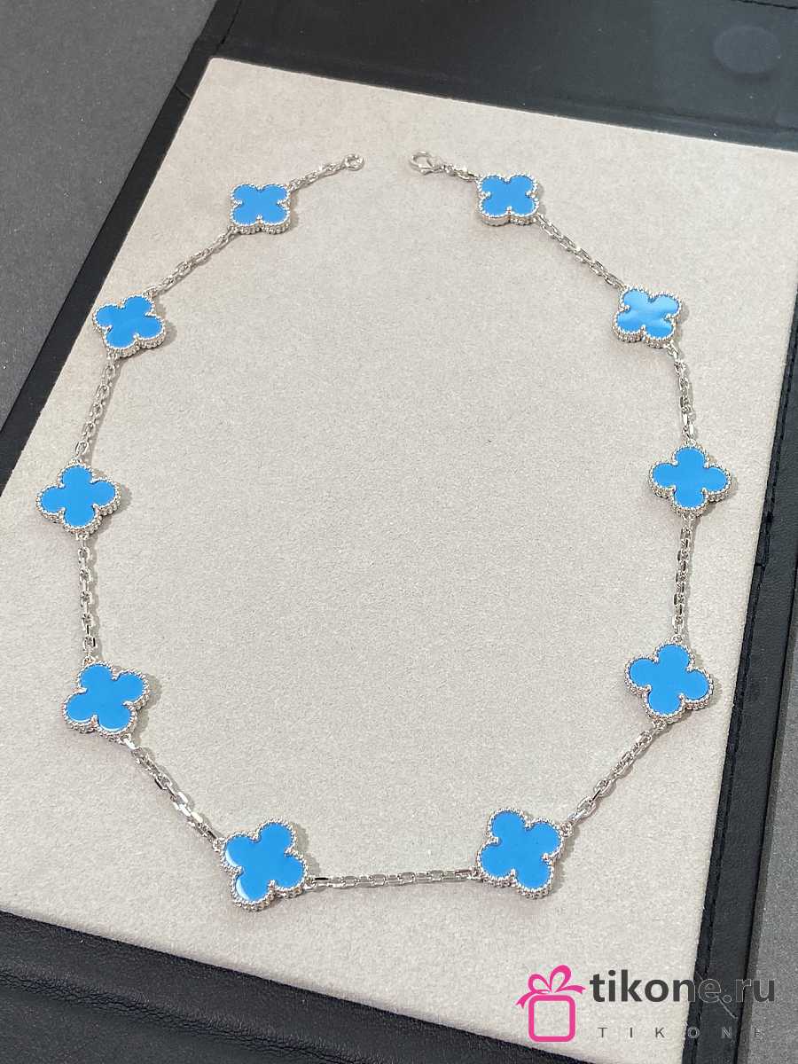 VCA Vintage Alhambra Necklace 10 Motifs 18k White Gold Turquoise