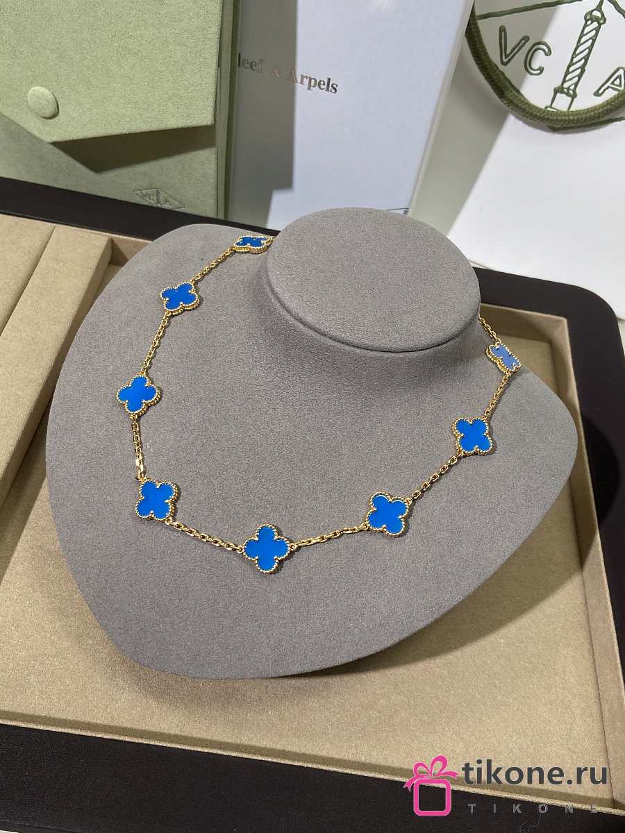 VCA Vintage Alhambra Necklace 10 Motifs 18k Yellow Gold Agate VCARP34800