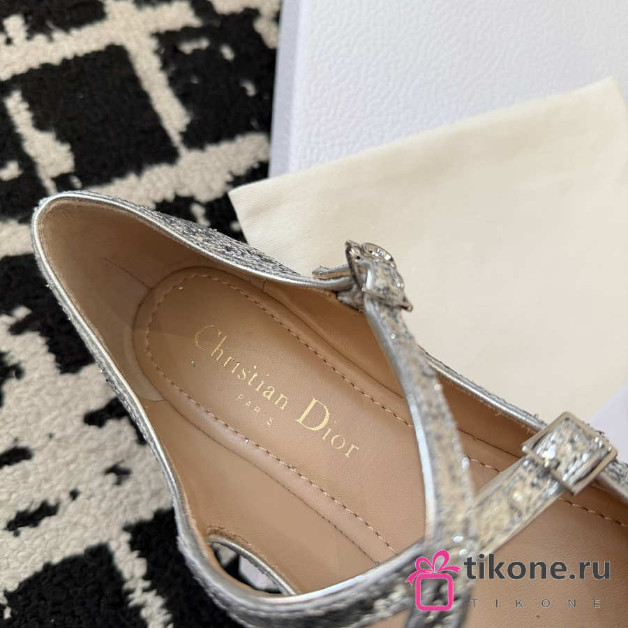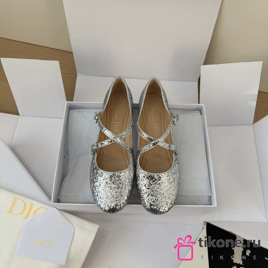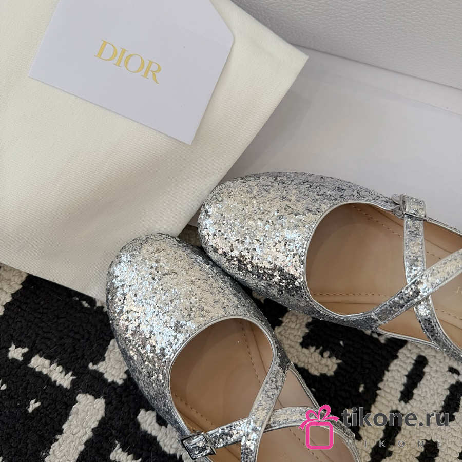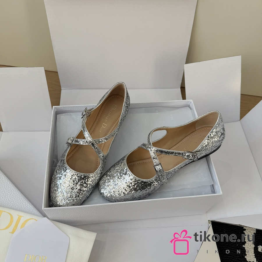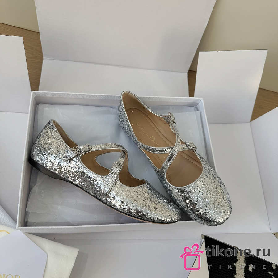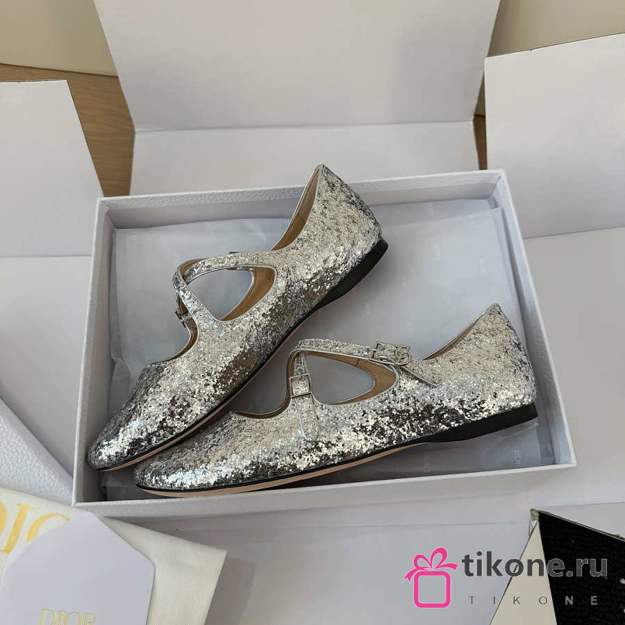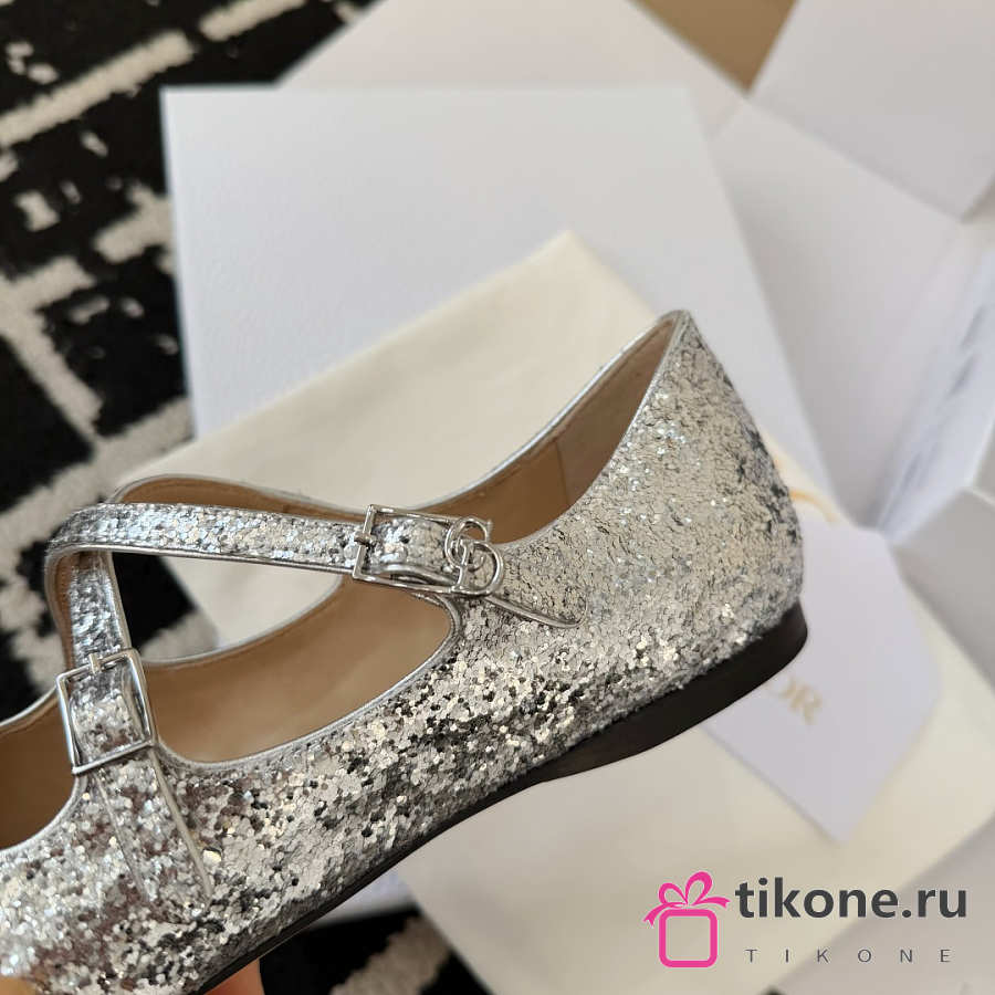 Very Dior Ballet Flat Silver-Tone Laminated Lambskin and Glitter
