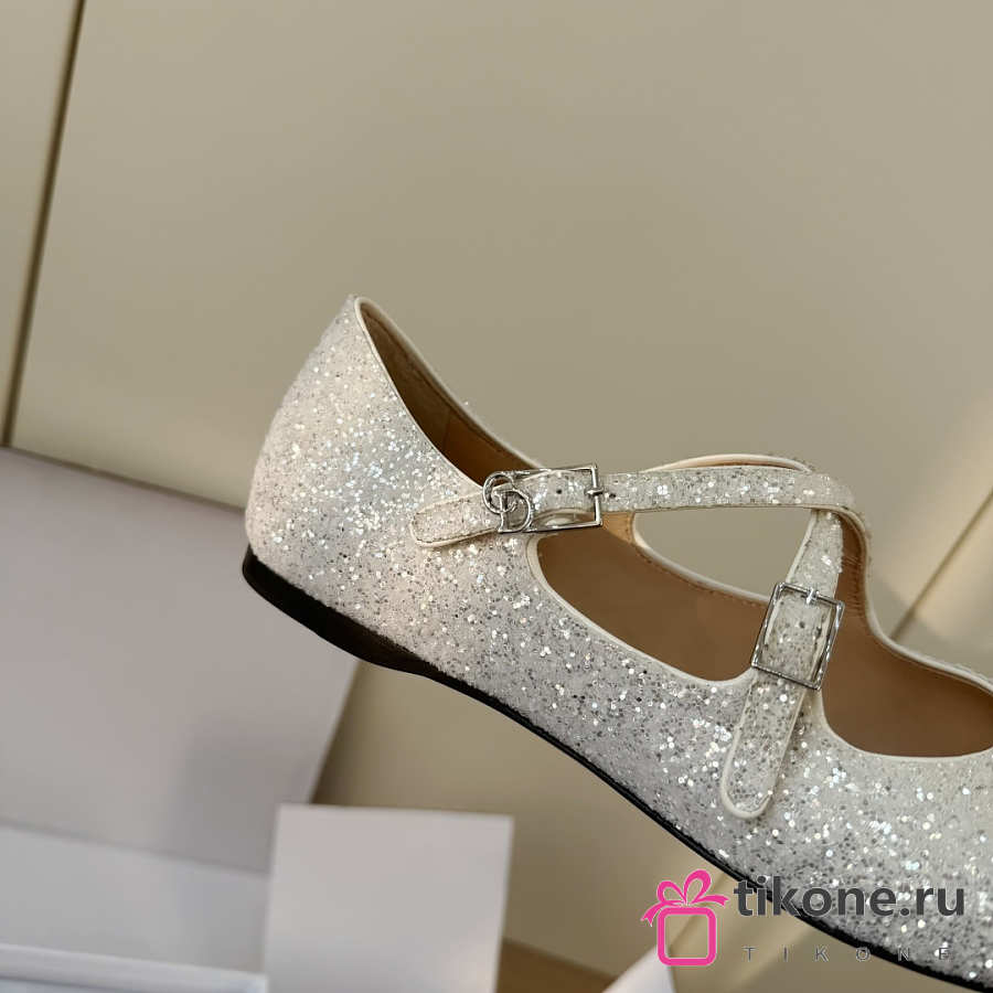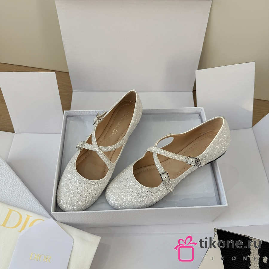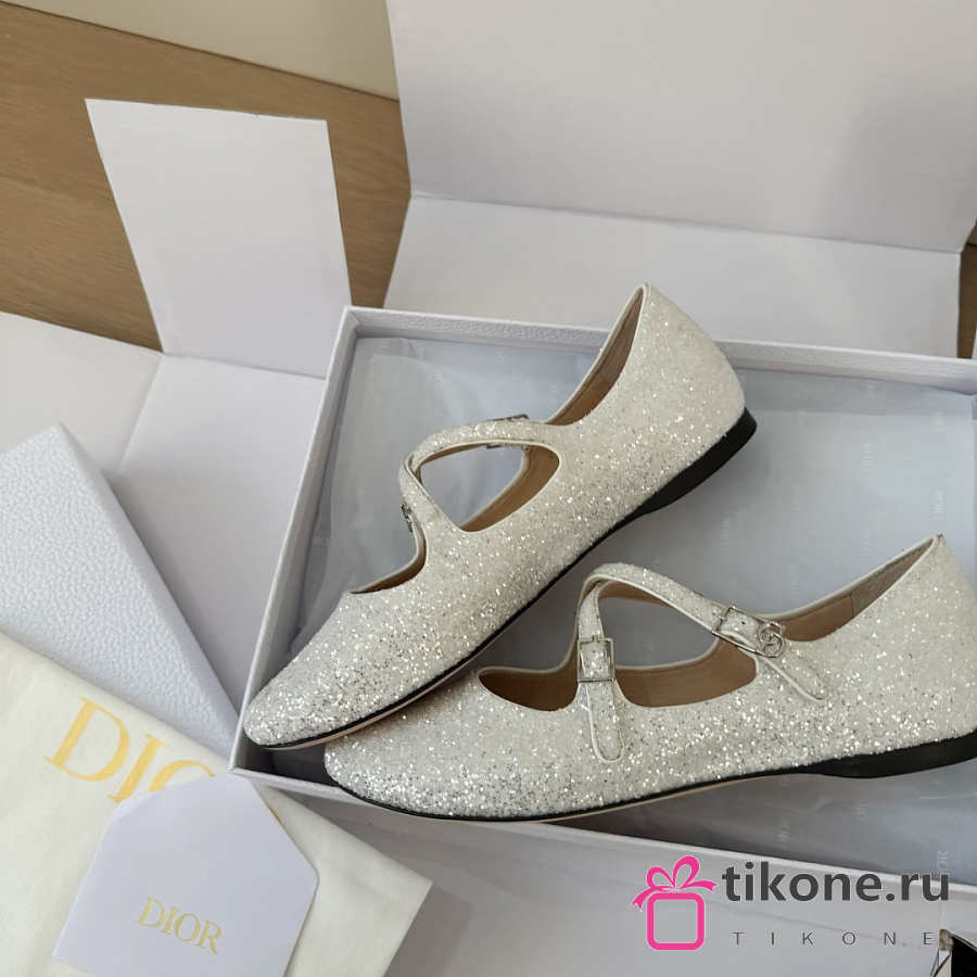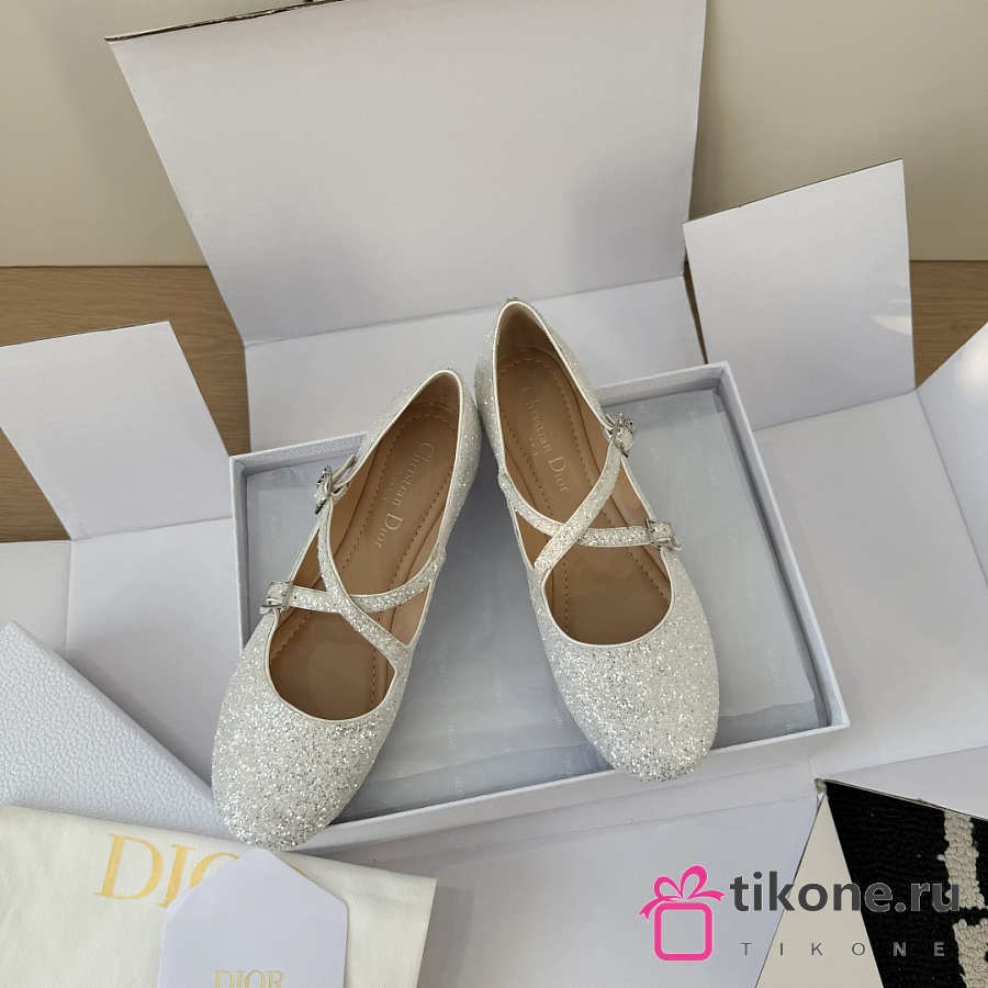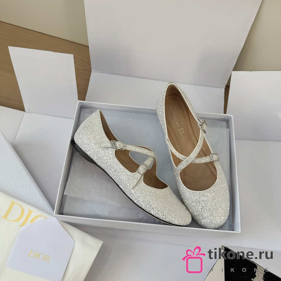 Very Dior Ballet Flat White-Tone Laminated Lambskin and Glitter