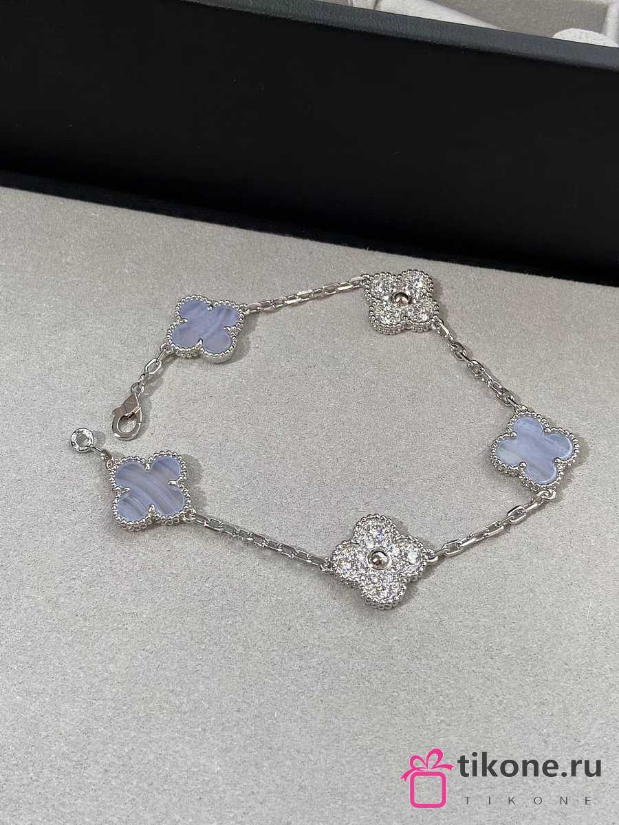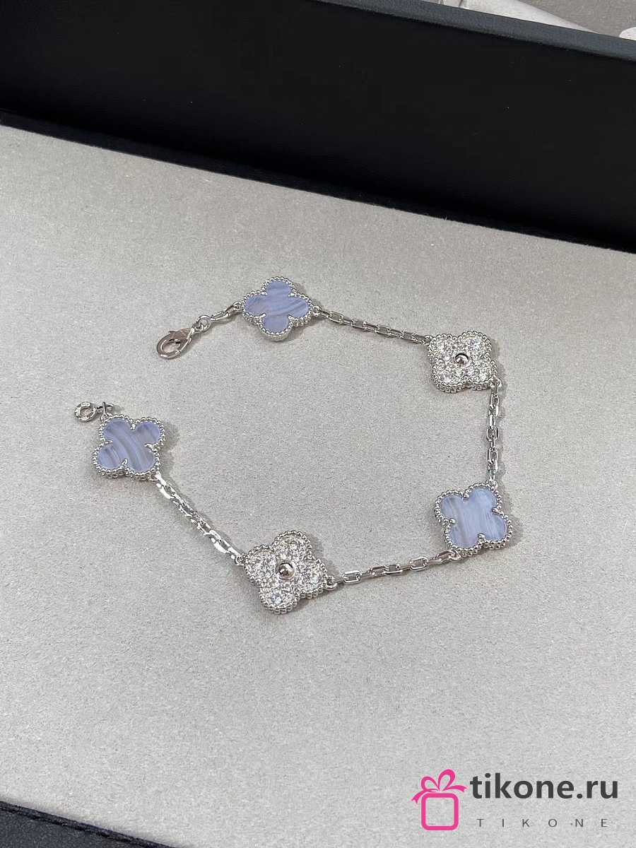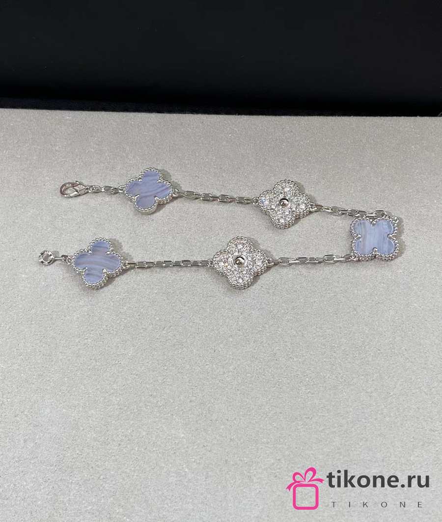 Vintage Alhambra Bracelet 5 Motifs 18K White Gold Diamond Chalcedony
