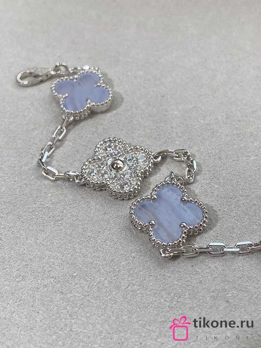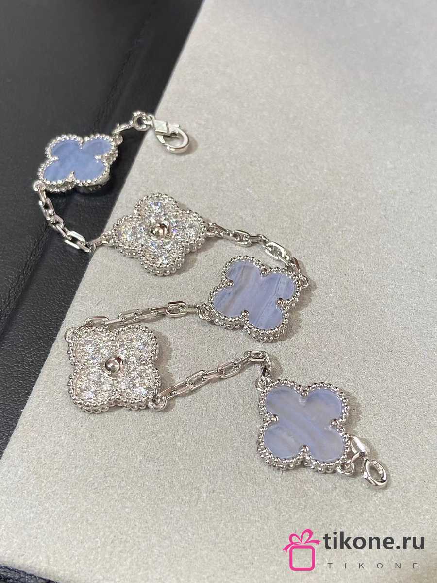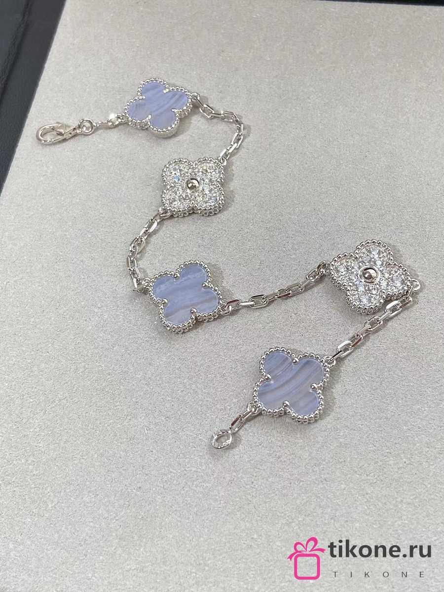 Vintage Alhambra Bracelet 5 Motifs 18K White Gold Diamond Chalcedony