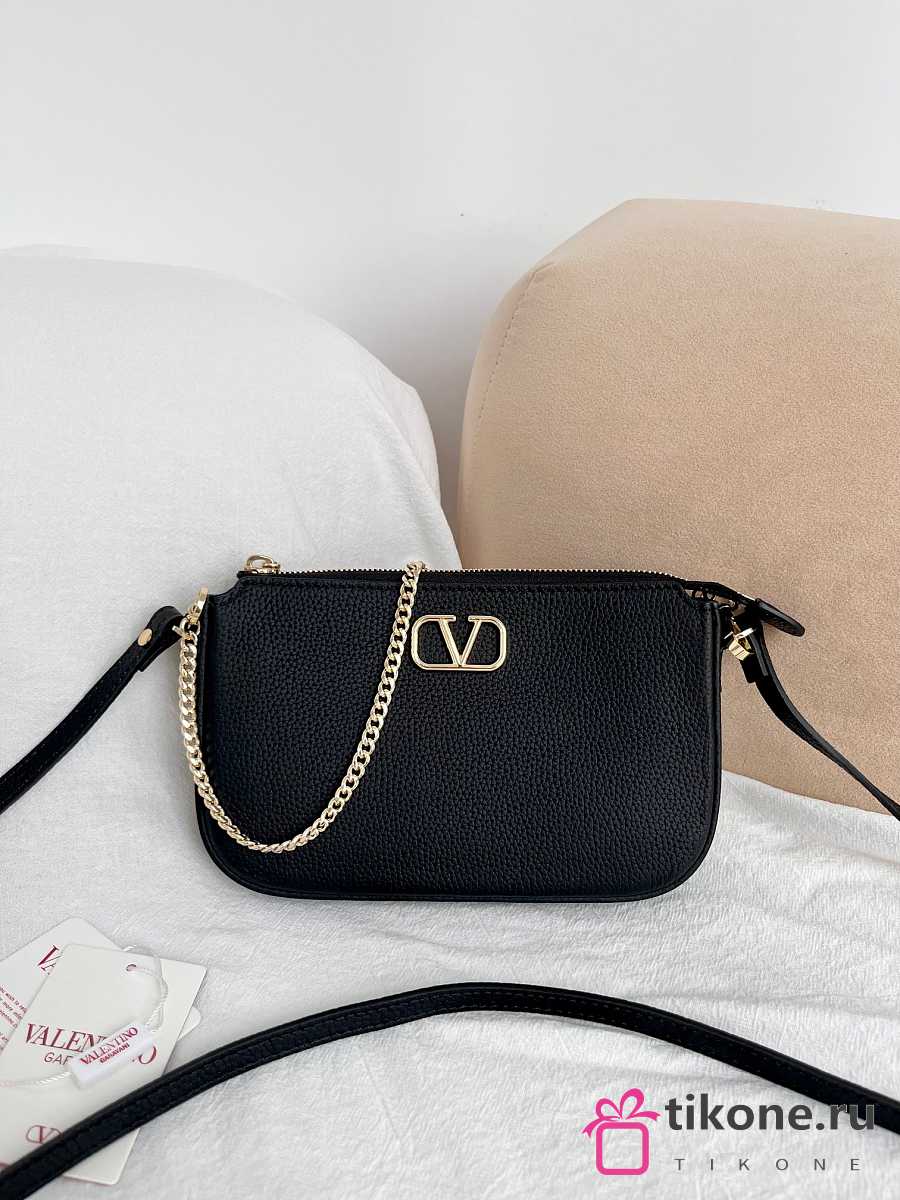 VLTN Mini Vlogo Signature Calfskin Crossbody Bag In Grainy Calfskin Black - 21.5x13x3cm