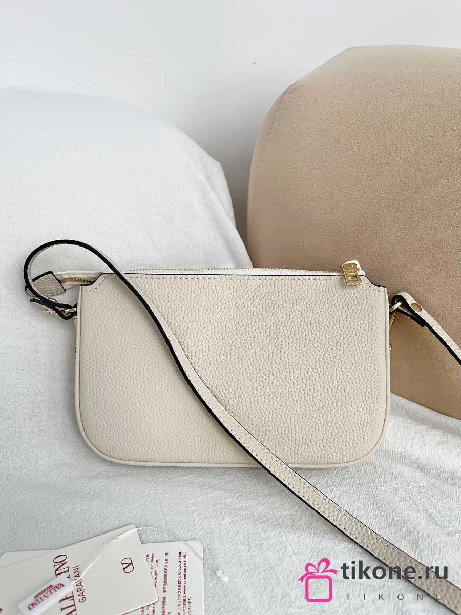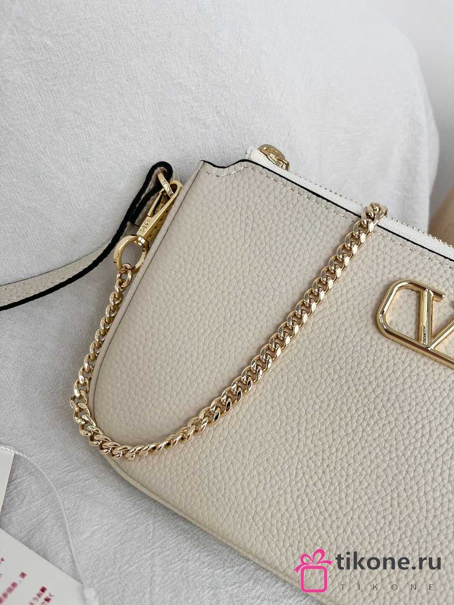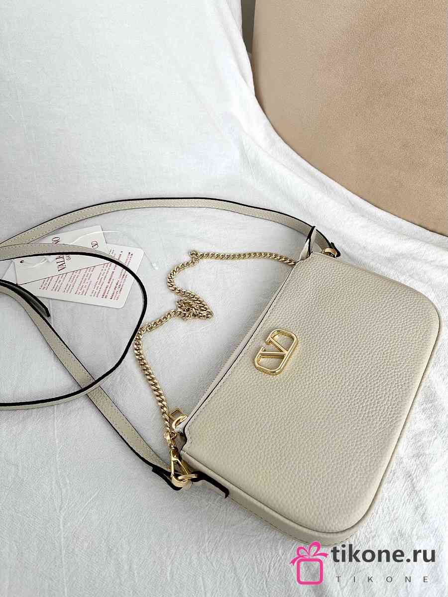 VLTN Mini Vlogo Signature Crossbody Bag In Grainy Calfskin Cream - 21.5x13x3cm