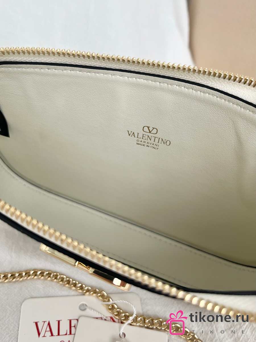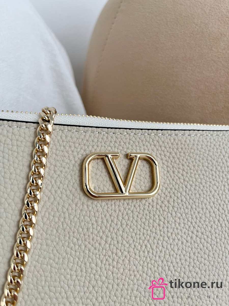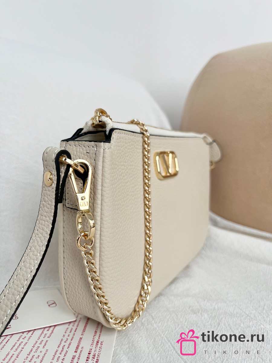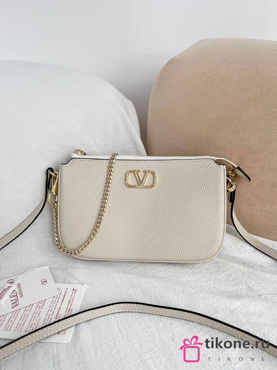 VLTN Mini Vlogo Signature Crossbody Bag In Grainy Calfskin Cream - 21.5x13x3cm