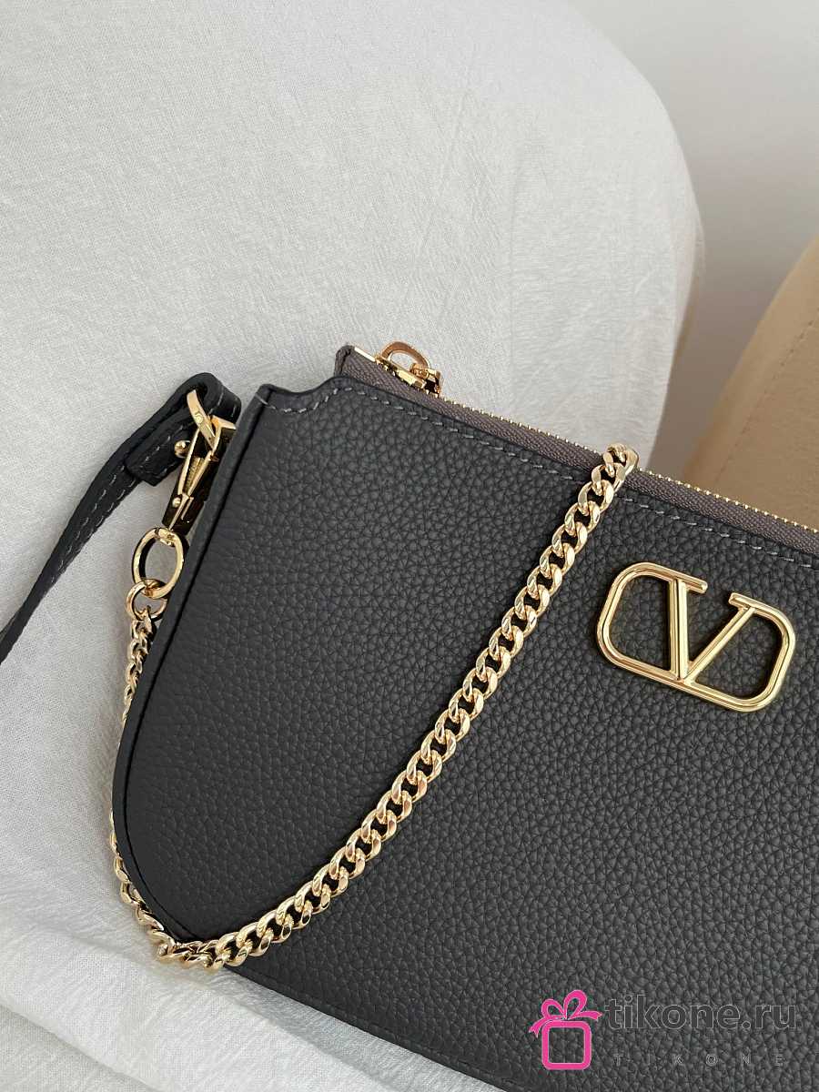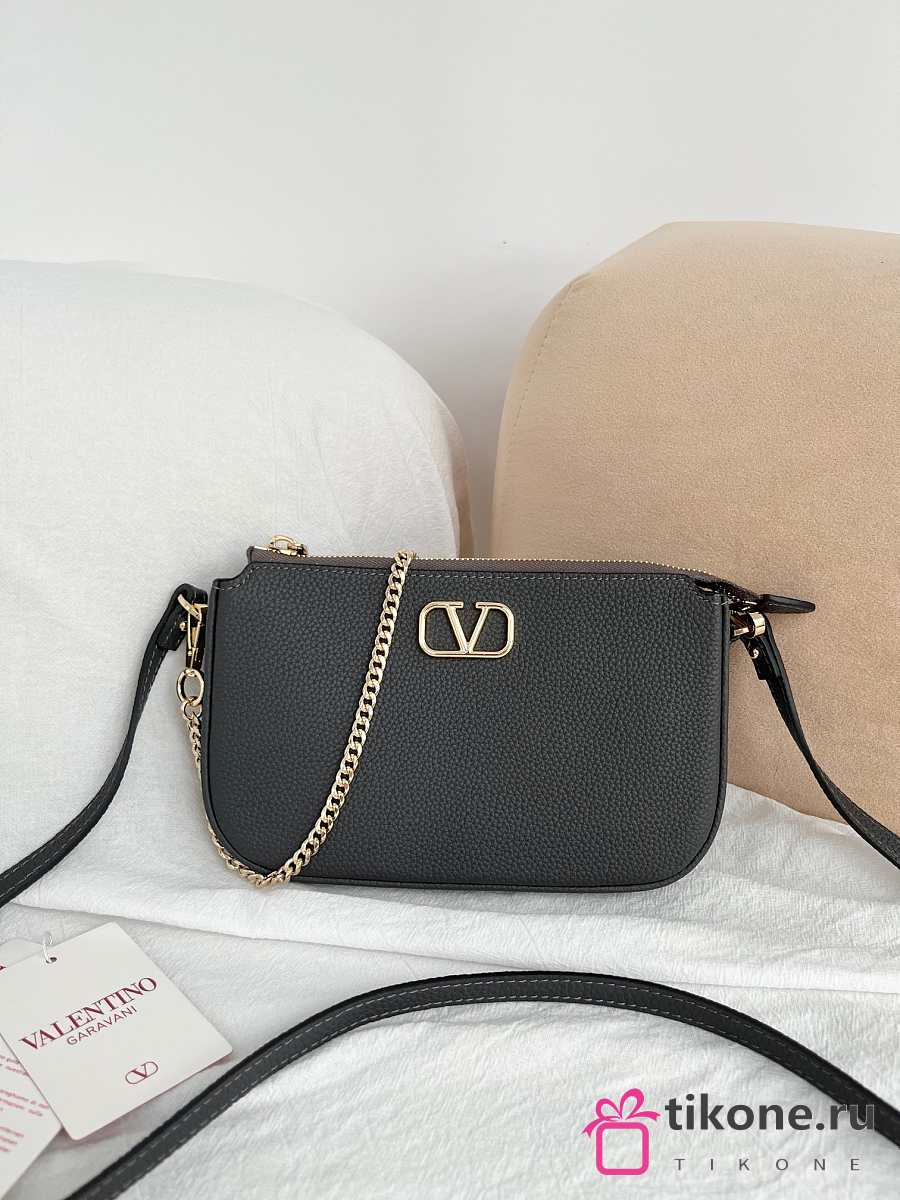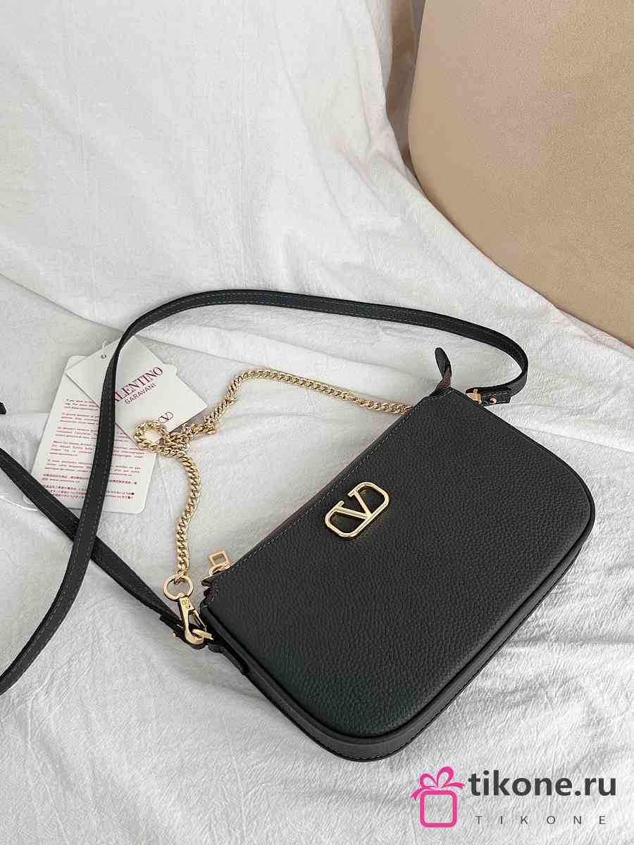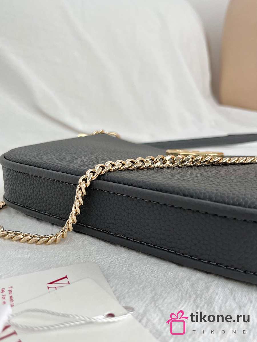 Valentino Garavani Nellcote Grained Calfskin Shoulder Bag Black - 23x16x6cm