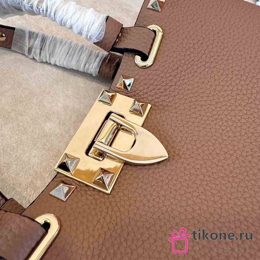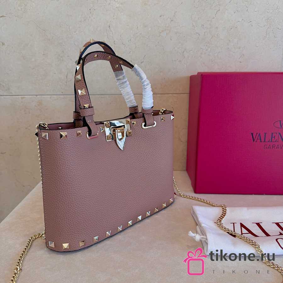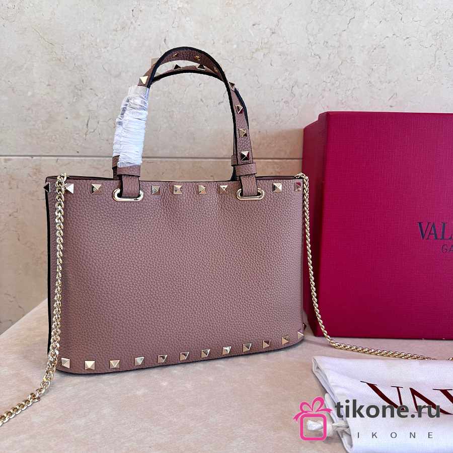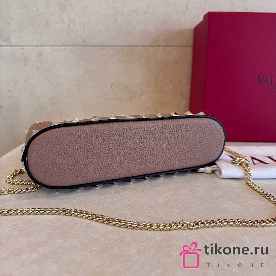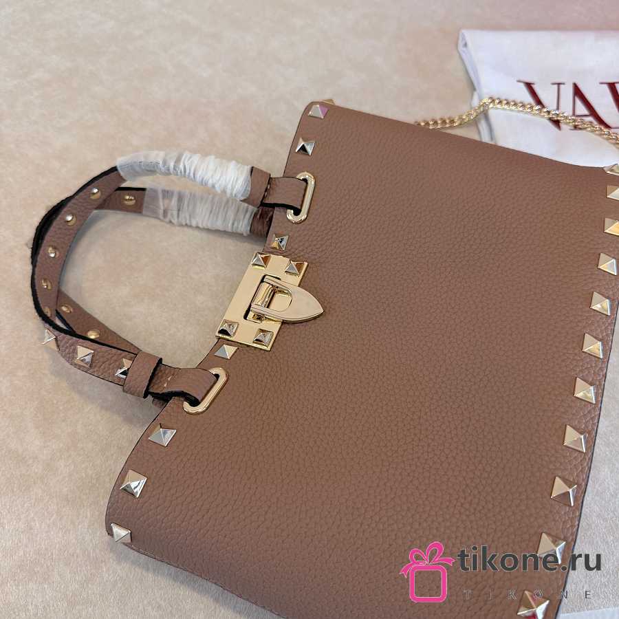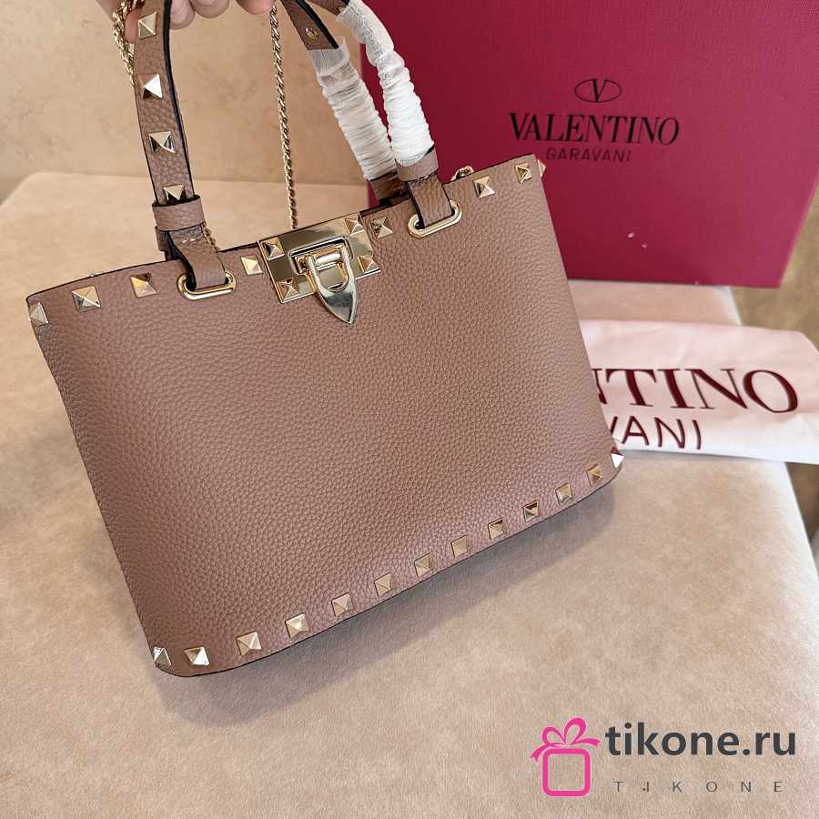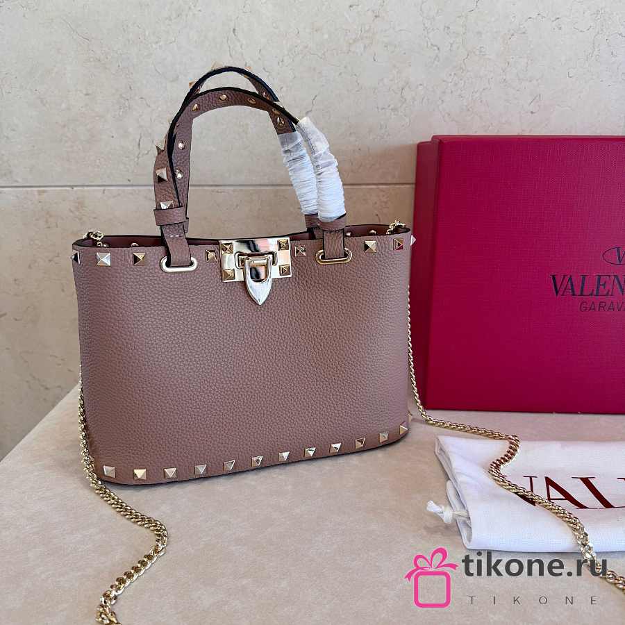 VLTN Rockstud Mini Shopping Bag In Grainy Calfskin Nude - 18.5x12.5x5.5cm