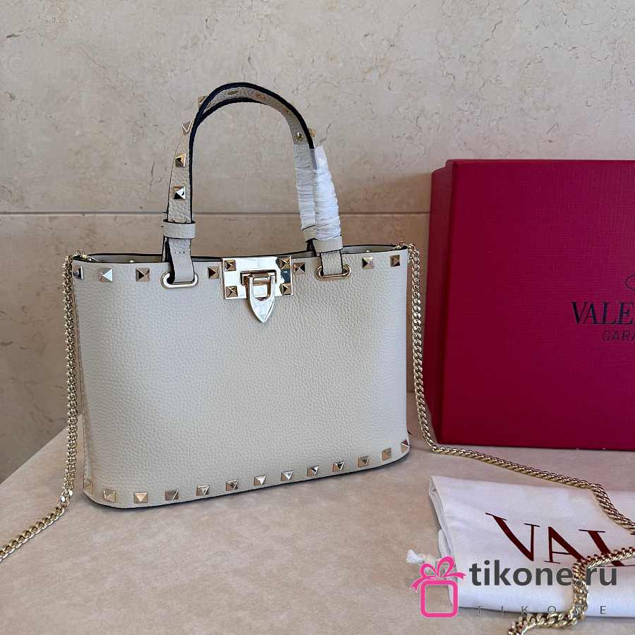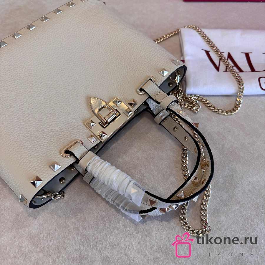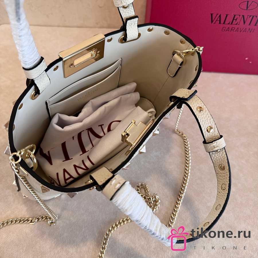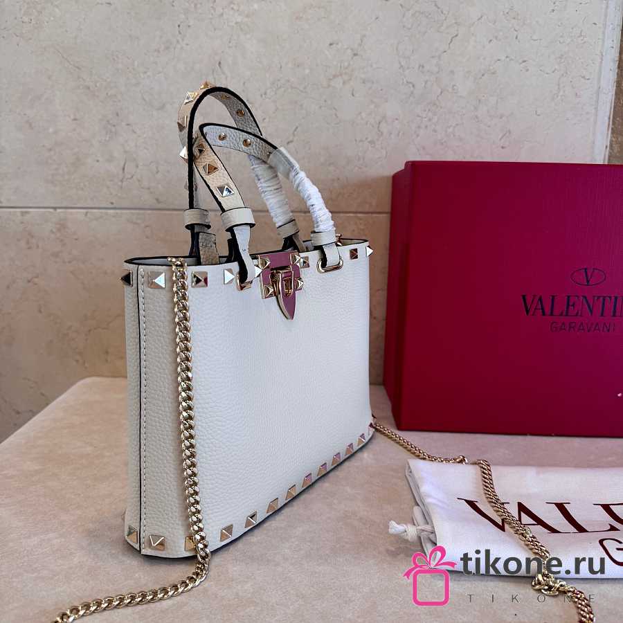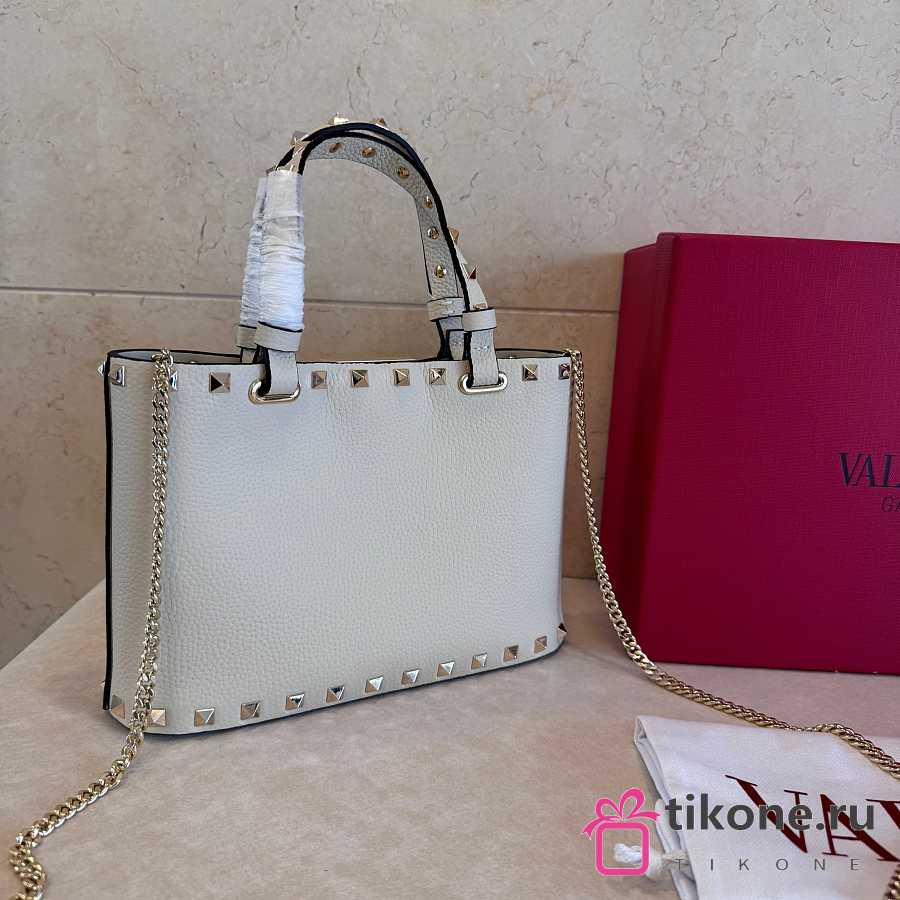 VLTN Rockstud Mini Shopping Bag In Grainy Calfskin White - 18.5x12.5x5.5cm