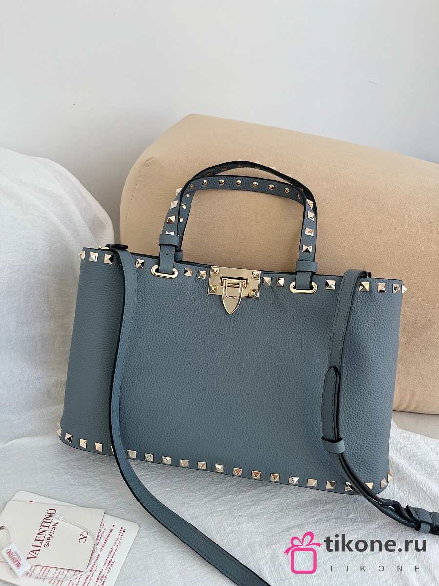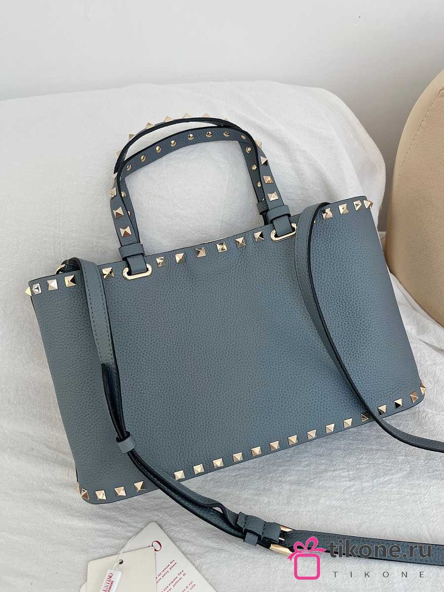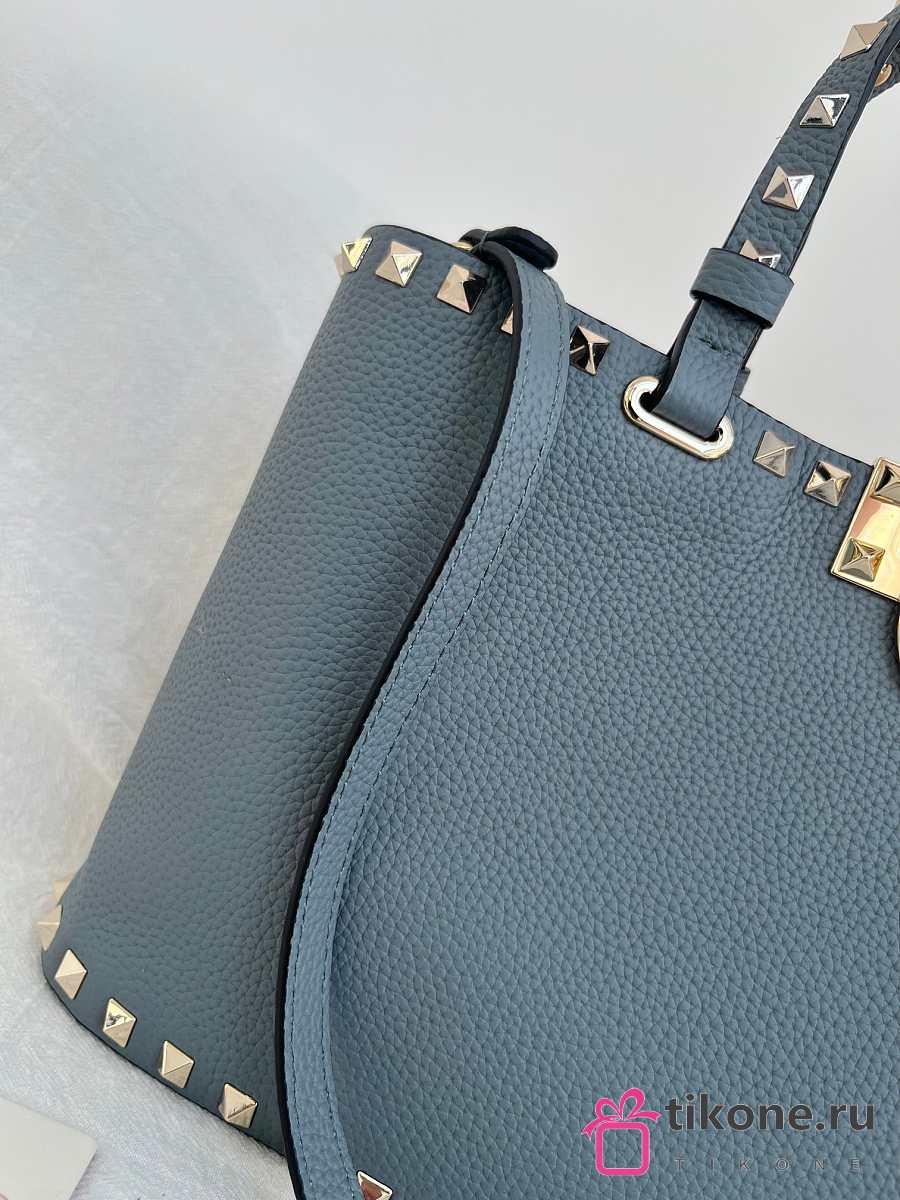 VLTN Rockstud Small Shopping Bag In Grainy Calfskin Blue - 32x29x7cm
