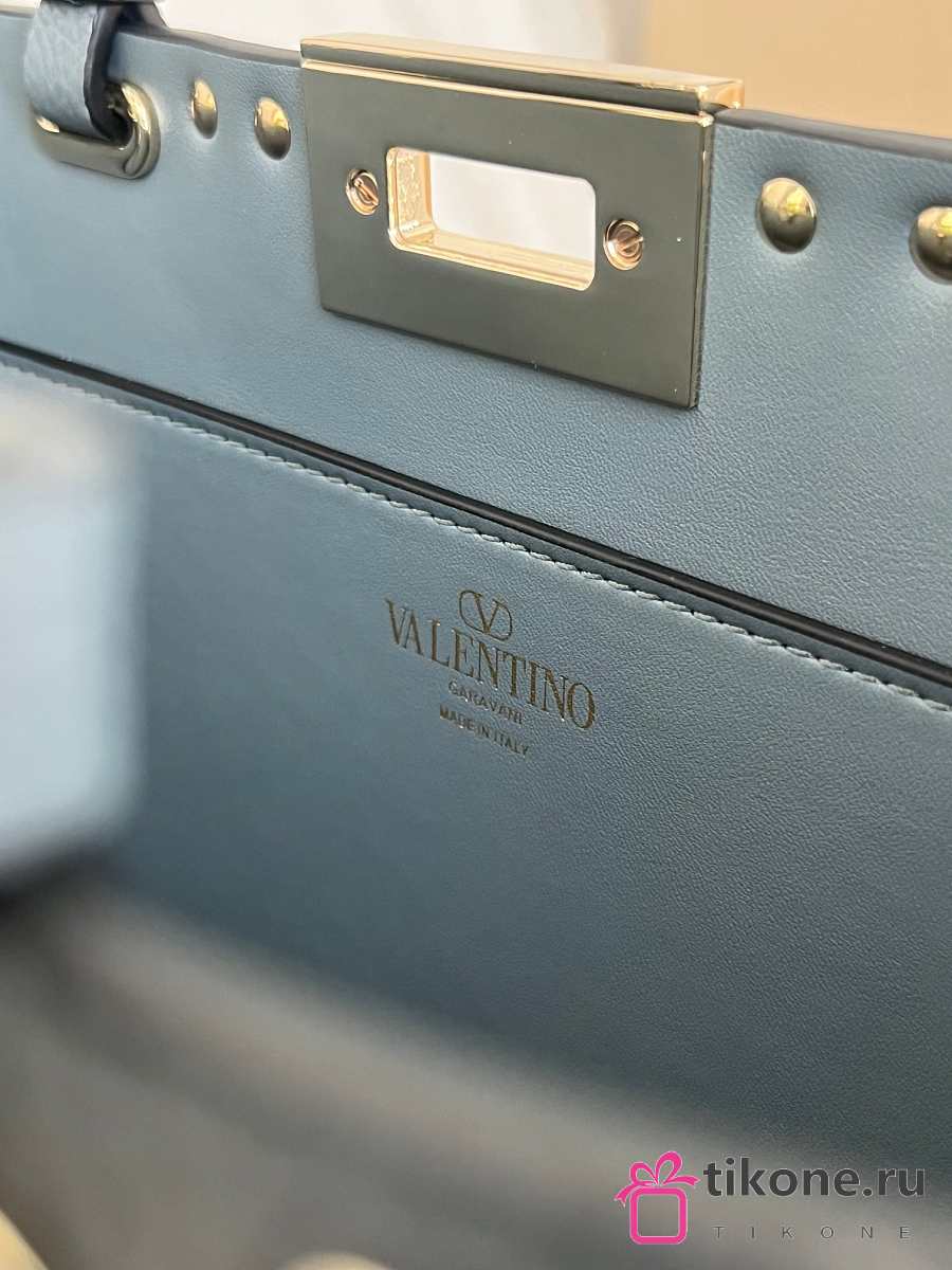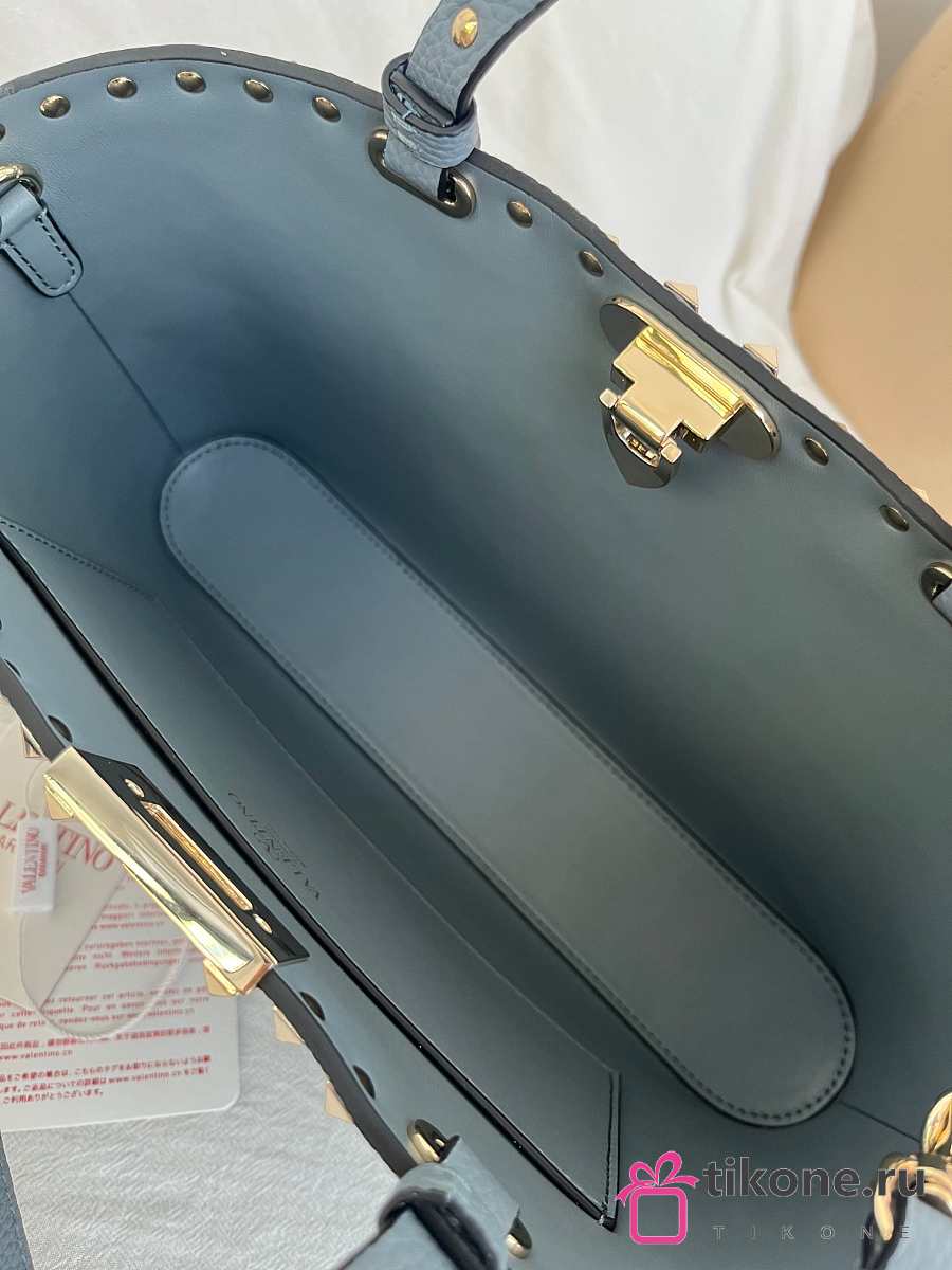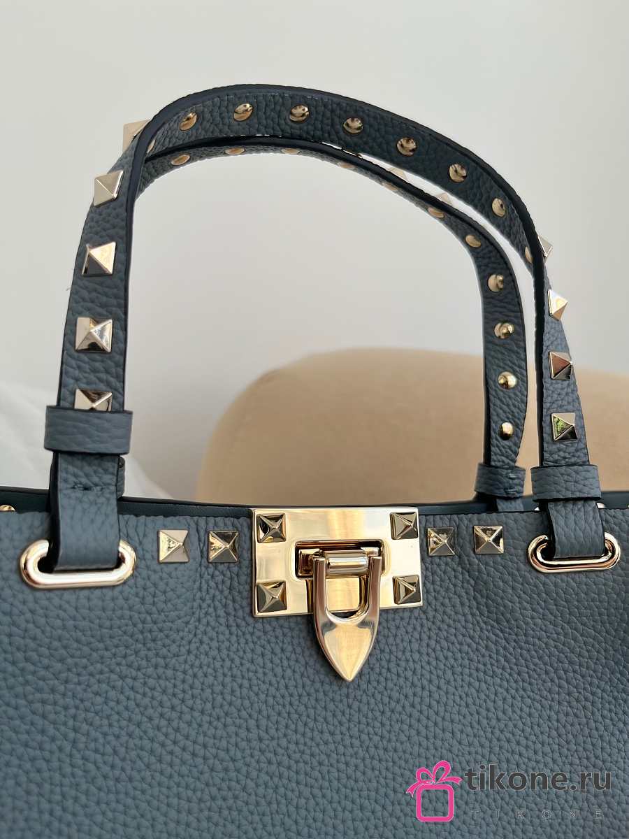 VLTN Rockstud Small Shopping Bag In Grainy Calfskin Blue - 32x29x7cm