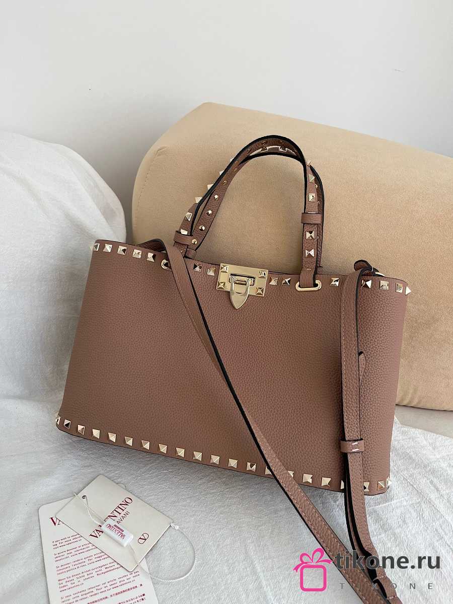 VLTN Rockstud Small Shopping Bag In Grainy Calfskin Poudre - 32x29x7cm
