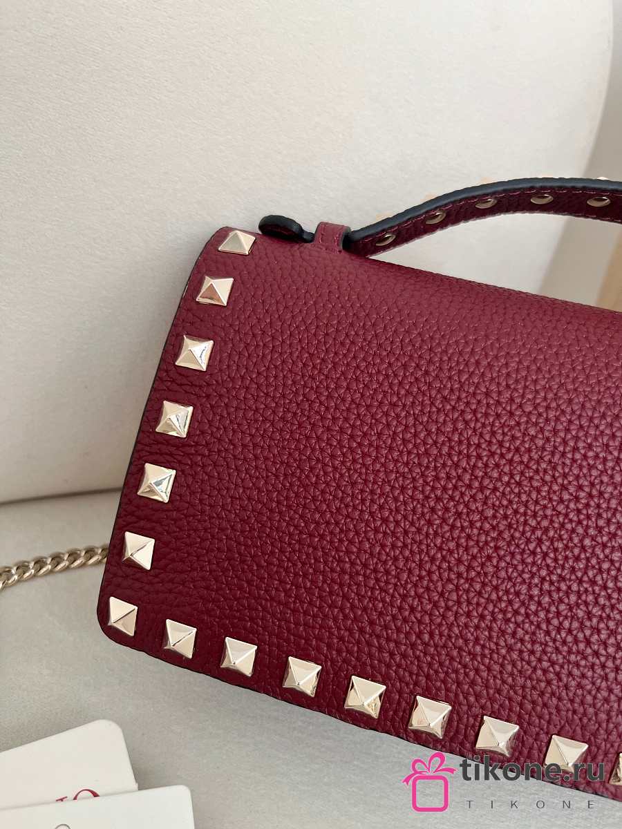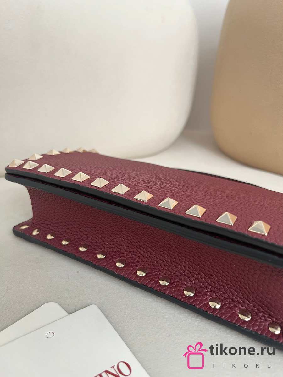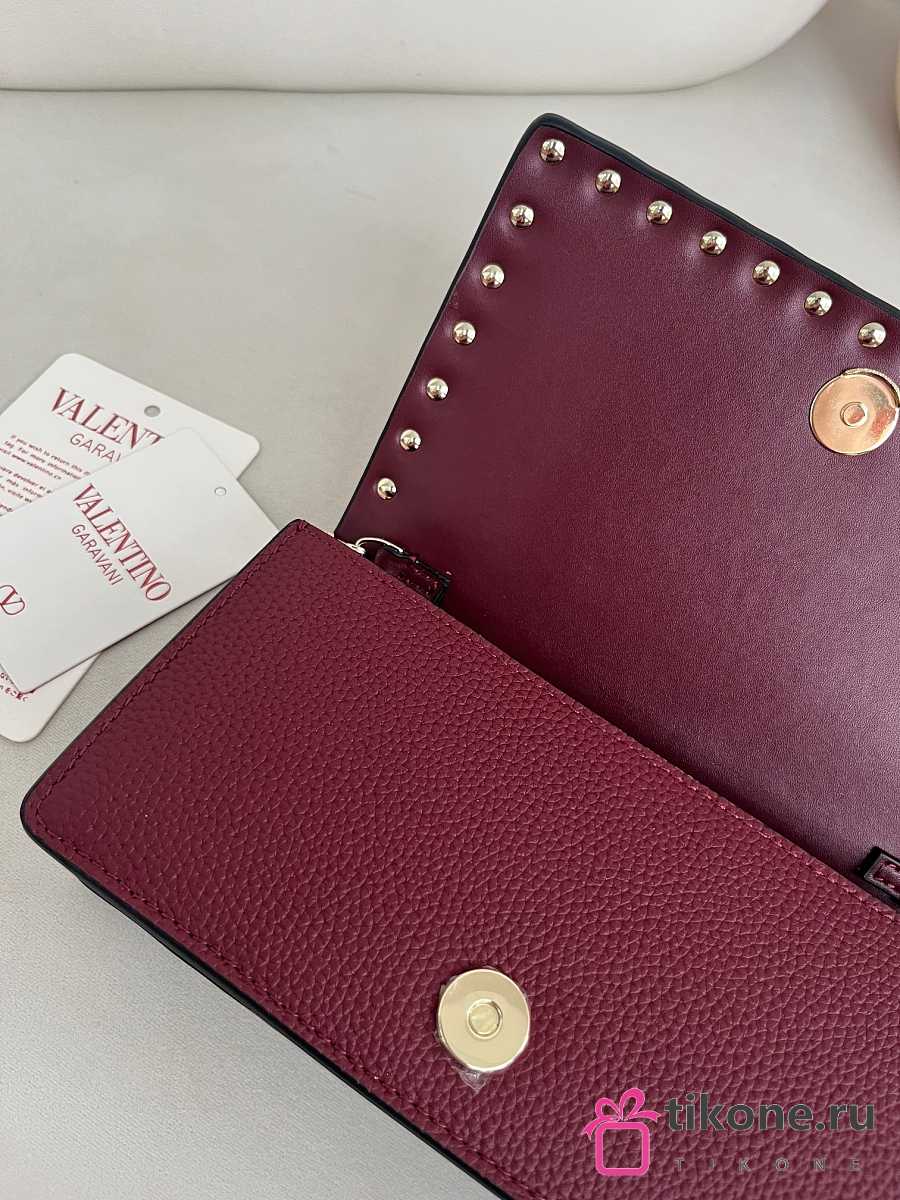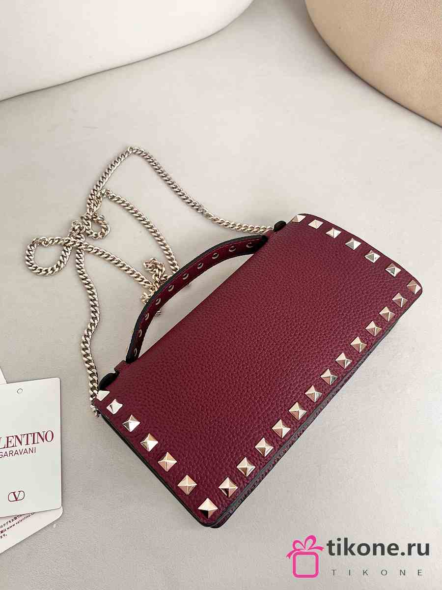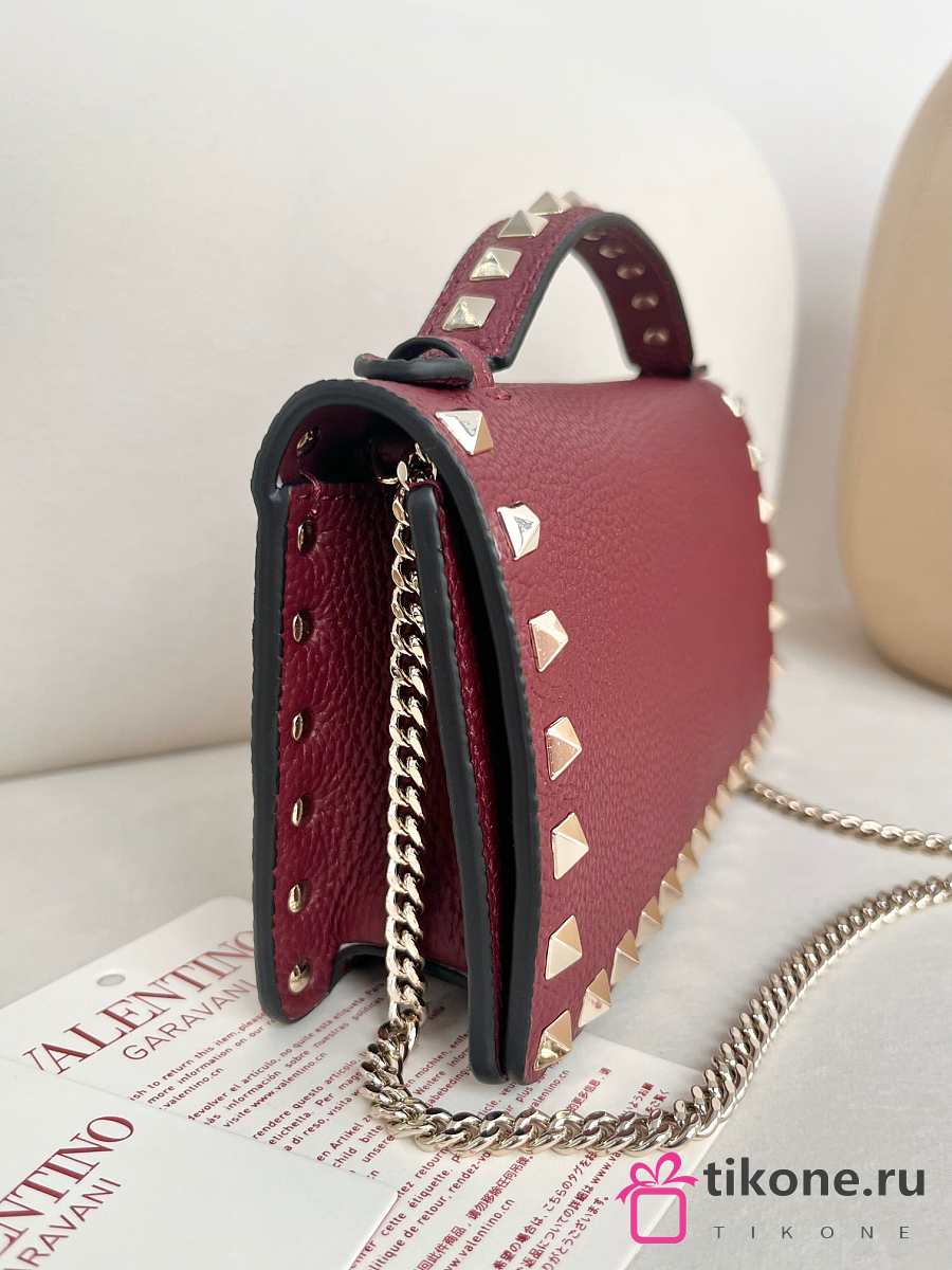VLTN Rockstud Wallet With Chain In Grainy Calfskin Red - 21x10.5x4cm